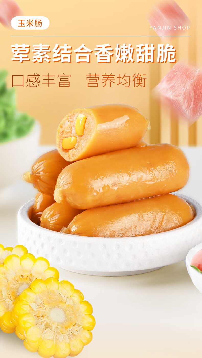 盐津铺子玉米肠450g约18根 火腿肠 即食香肠 休闲儿童露营出游零食小吃