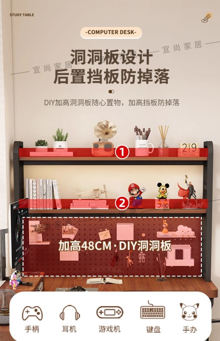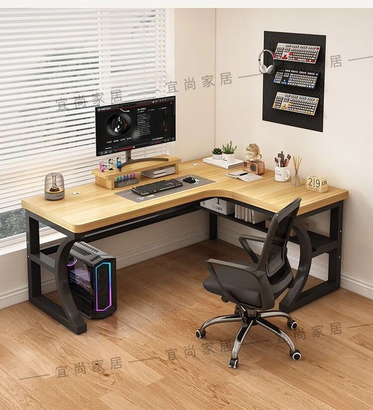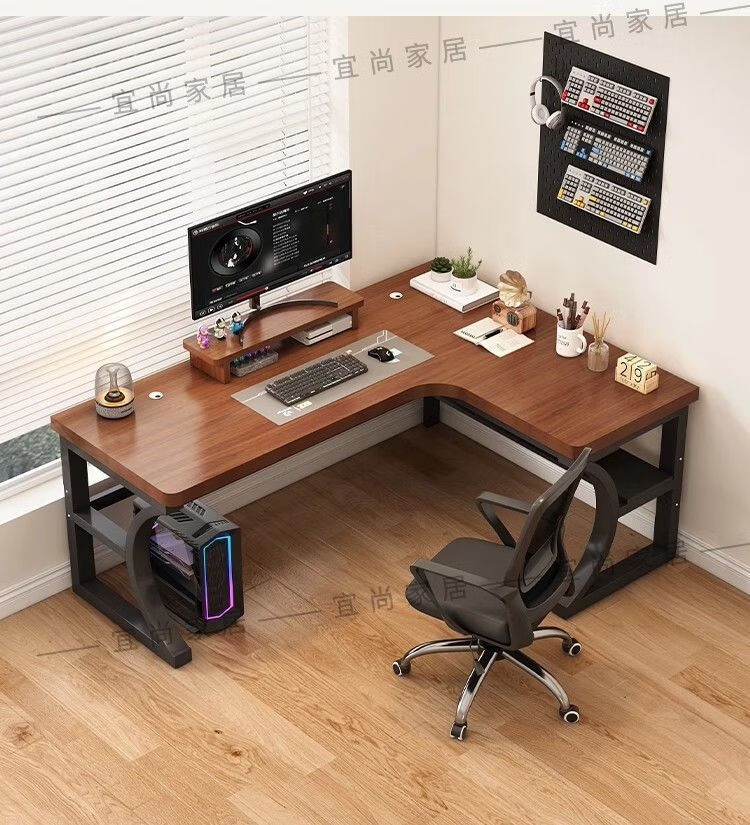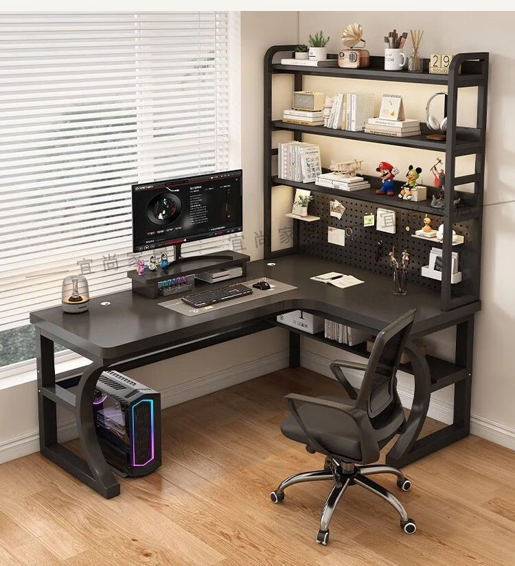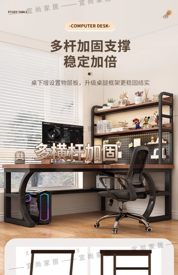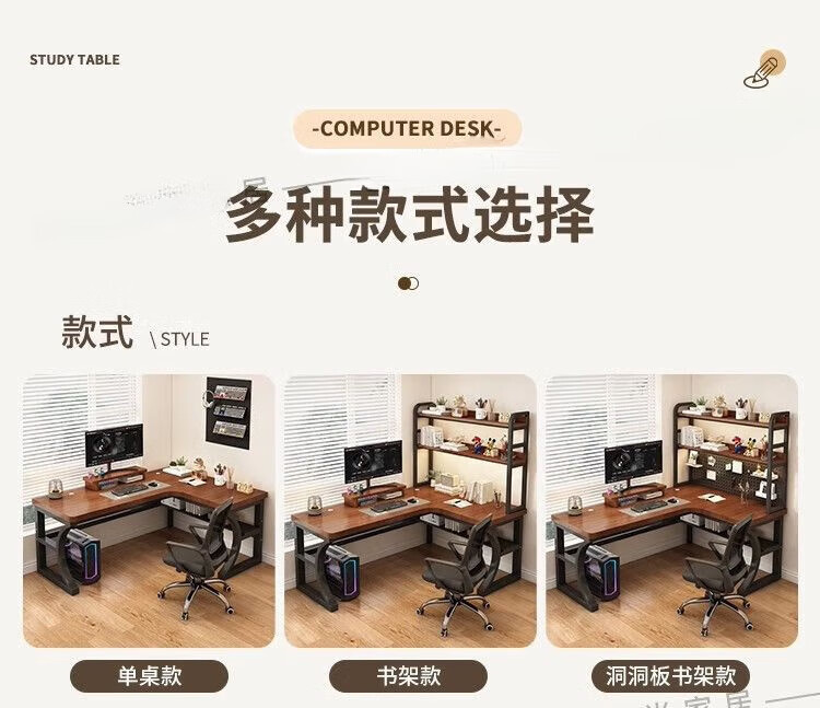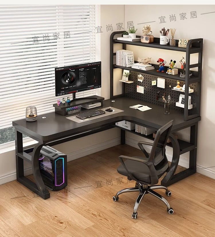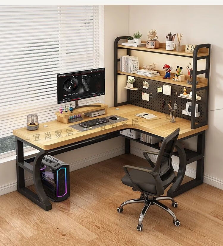 迈途森实木转角电脑桌卧室家用台式书桌书架一体学生电竞桌拐角办公桌子 三层书架+洞洞板【25MM桌面】胡桃色+黑架 120*80*74cm:【左转角】