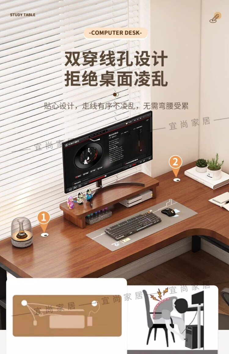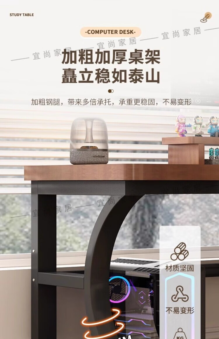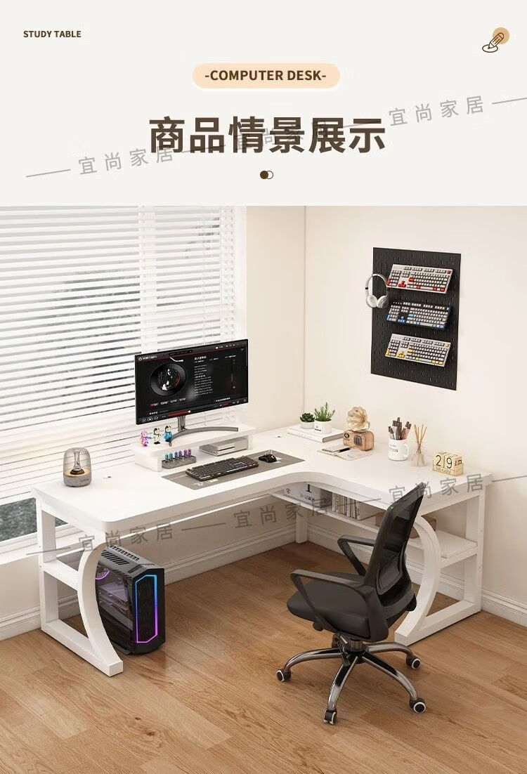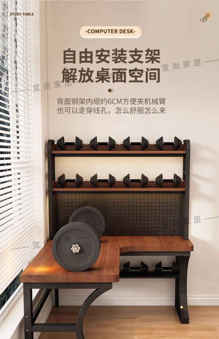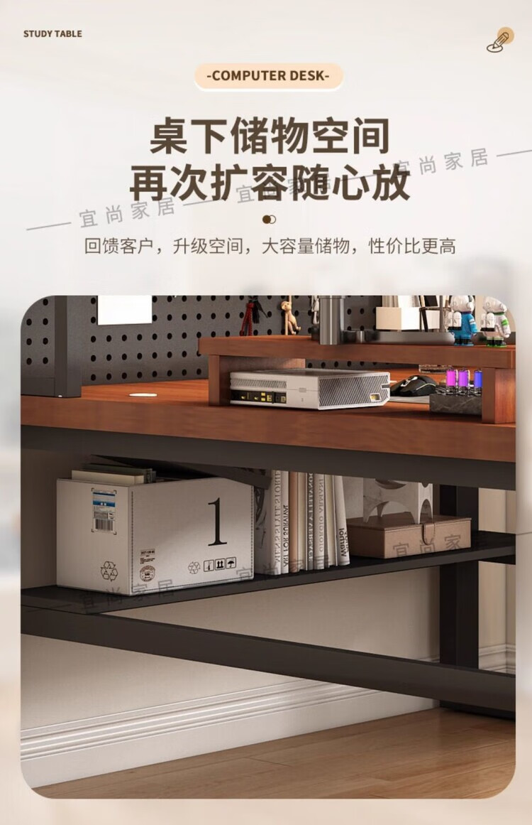 迈途森实木转角电脑桌卧室家用台式书桌书架一体学生电竞桌拐角办公桌子 三层书架+洞洞板【25MM桌面】胡桃色+黑架 120*80*74cm:【左转角】