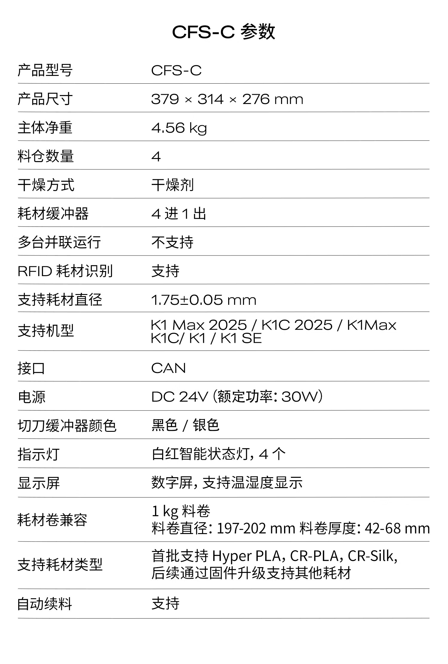 创想三维CFS 智能耗材管理系统自动供料系统3D打印机家用智能多彩多材料打印自动续料 银色 k1系列专用