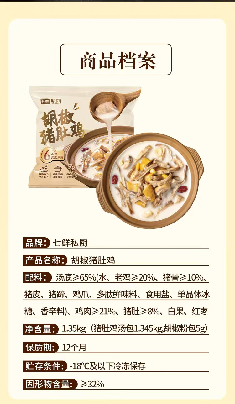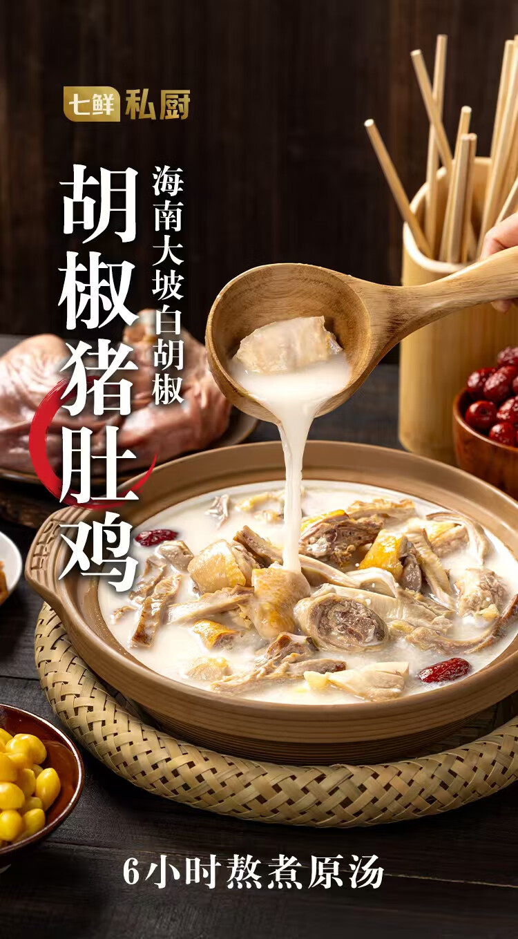 七鲜私厨胡椒猪肚鸡1.35kg海南胡椒蒸鸡萃取鸡汤广式半成品方便预制菜