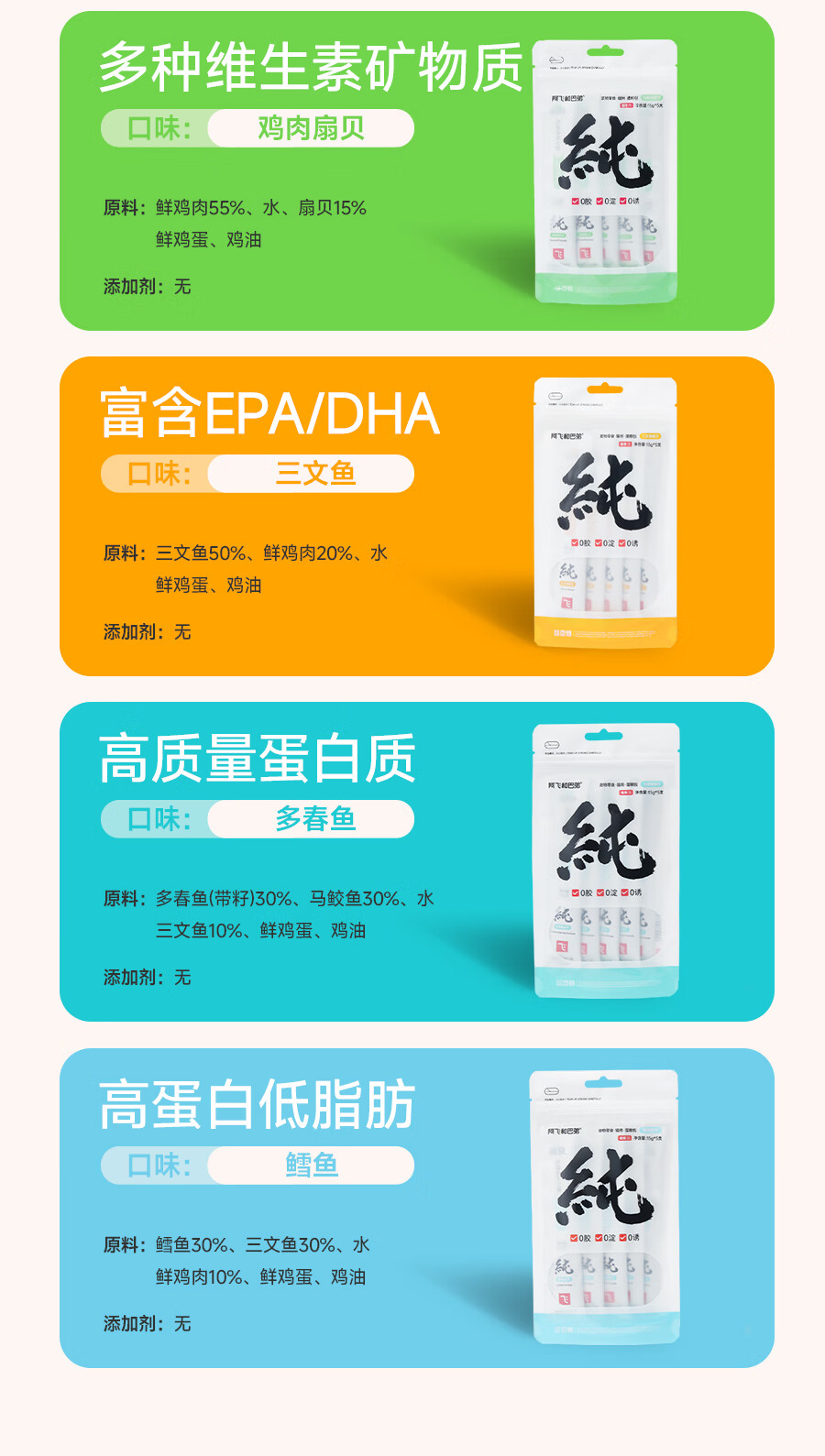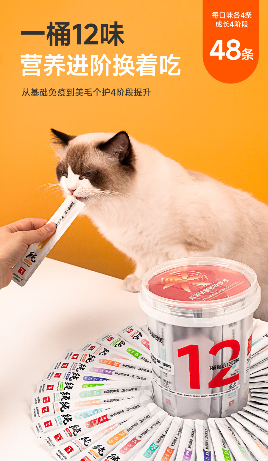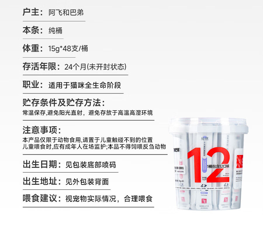 阿飞和巴弟猫条猫零食纯条桶猫咪零食混合口味15g*48支