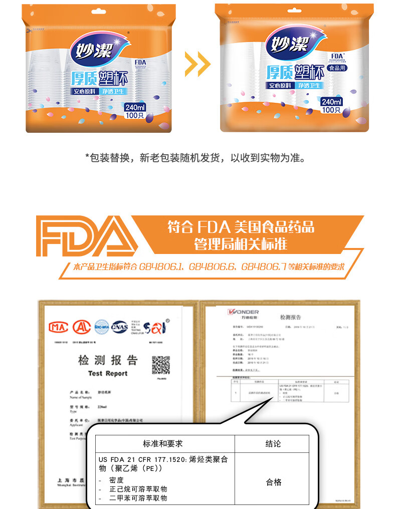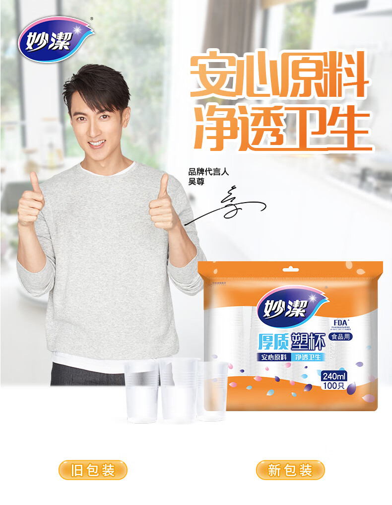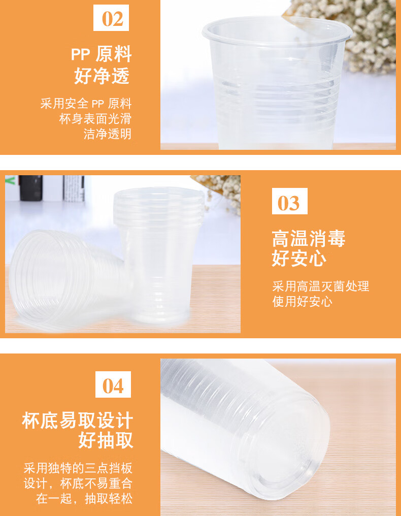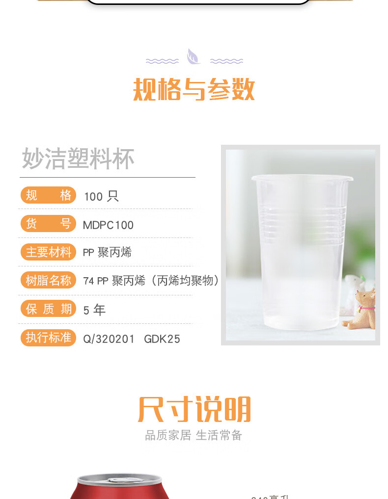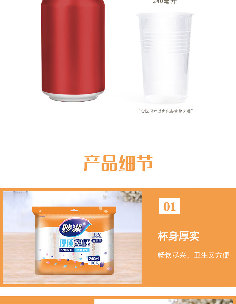 妙洁 厚质塑杯 240mL100只一次性航空杯 饮料果汁茶水杯家用户外商用