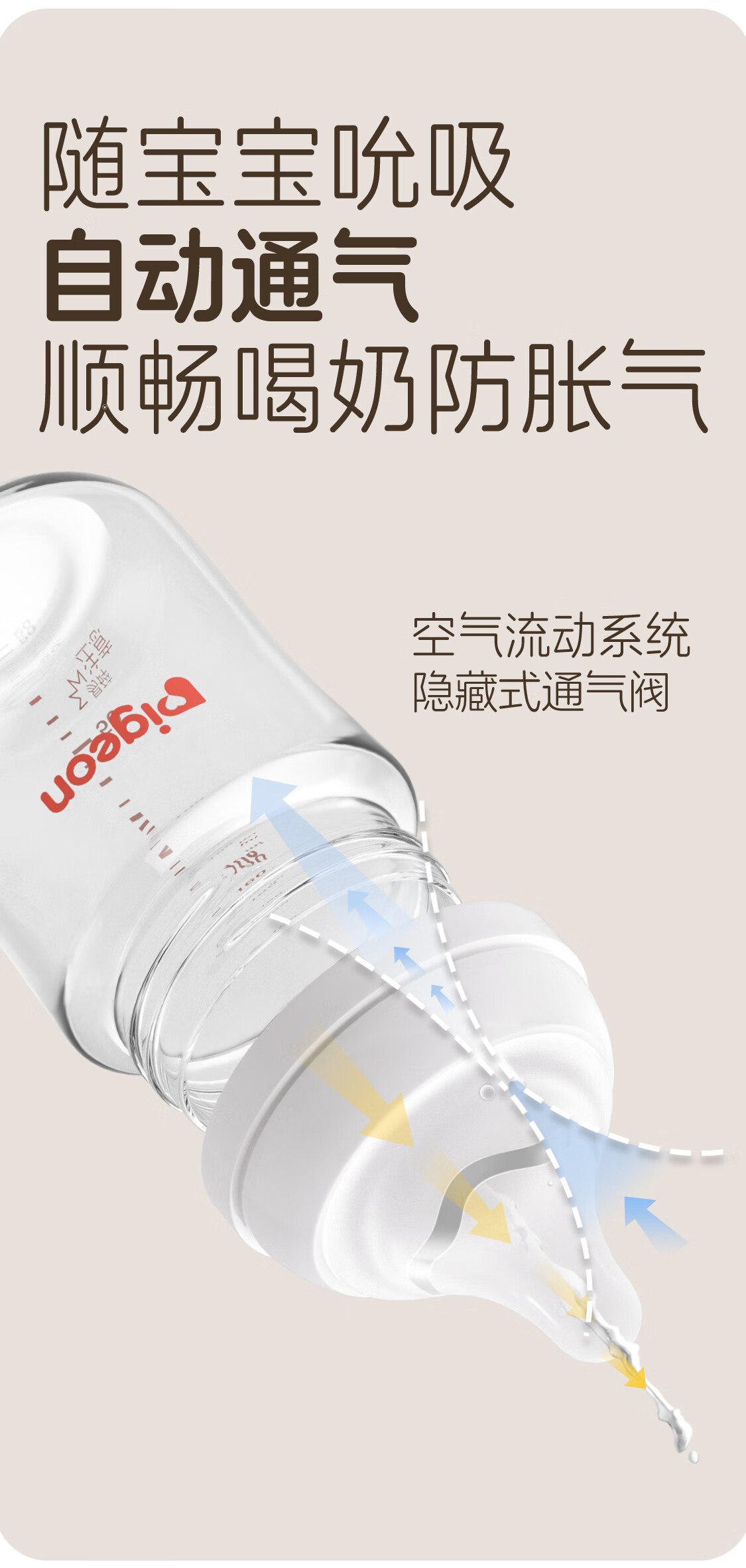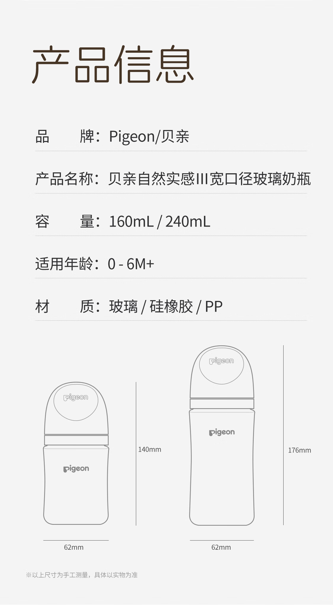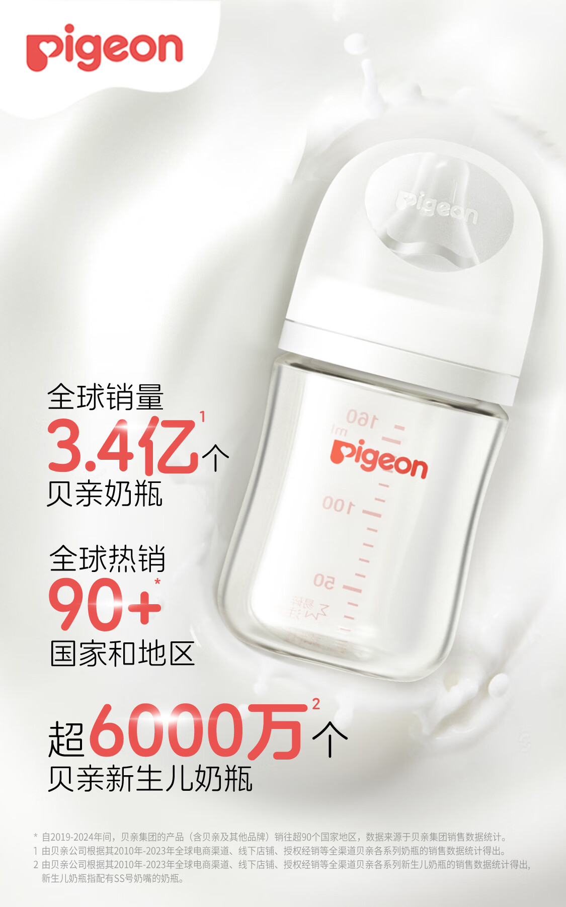 贝亲(Pigeon)奶瓶新生婴儿玻璃材质宽口径奶瓶自然实感第3代 160ml 0-1月 带ss奶嘴(彩绘版)