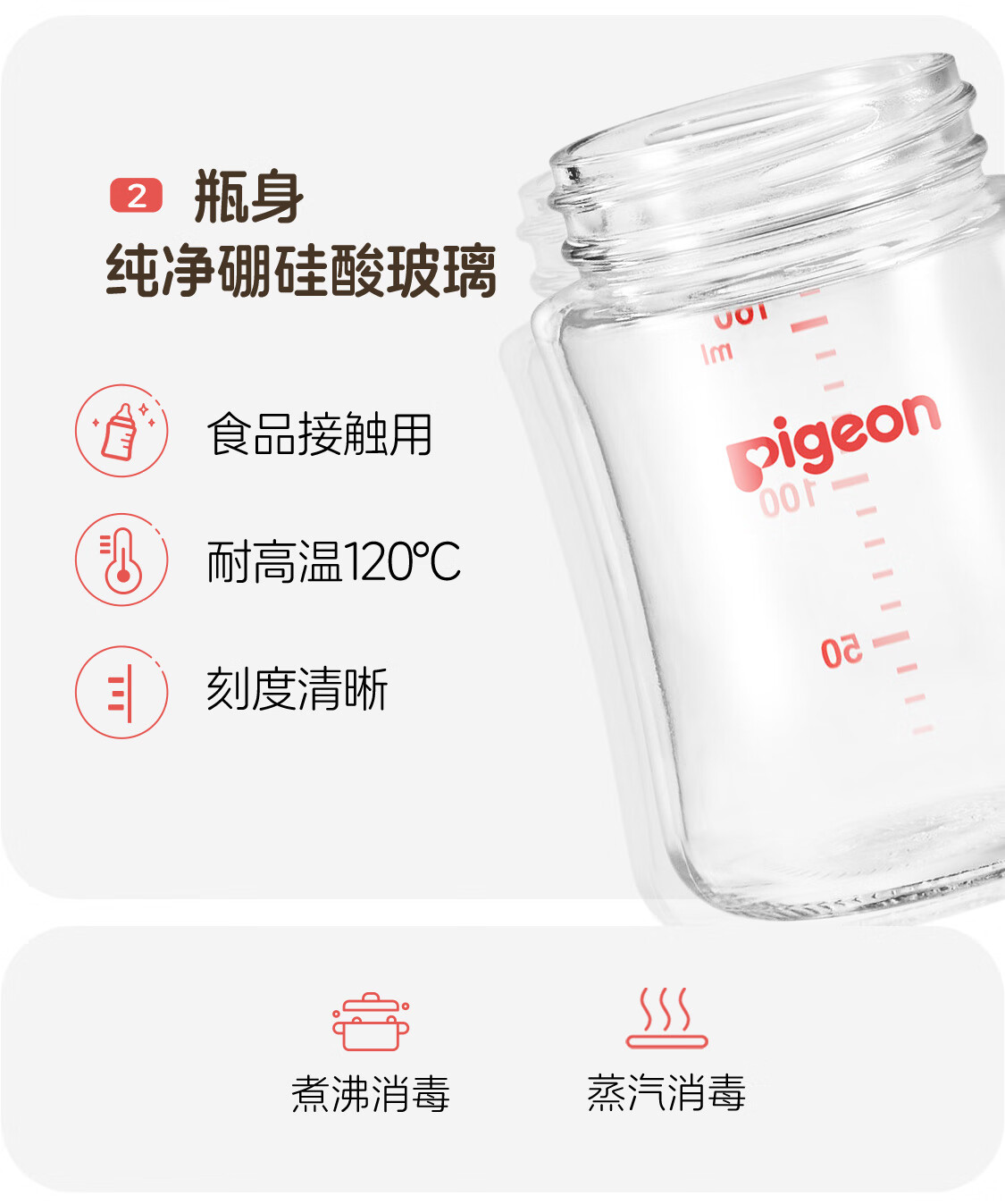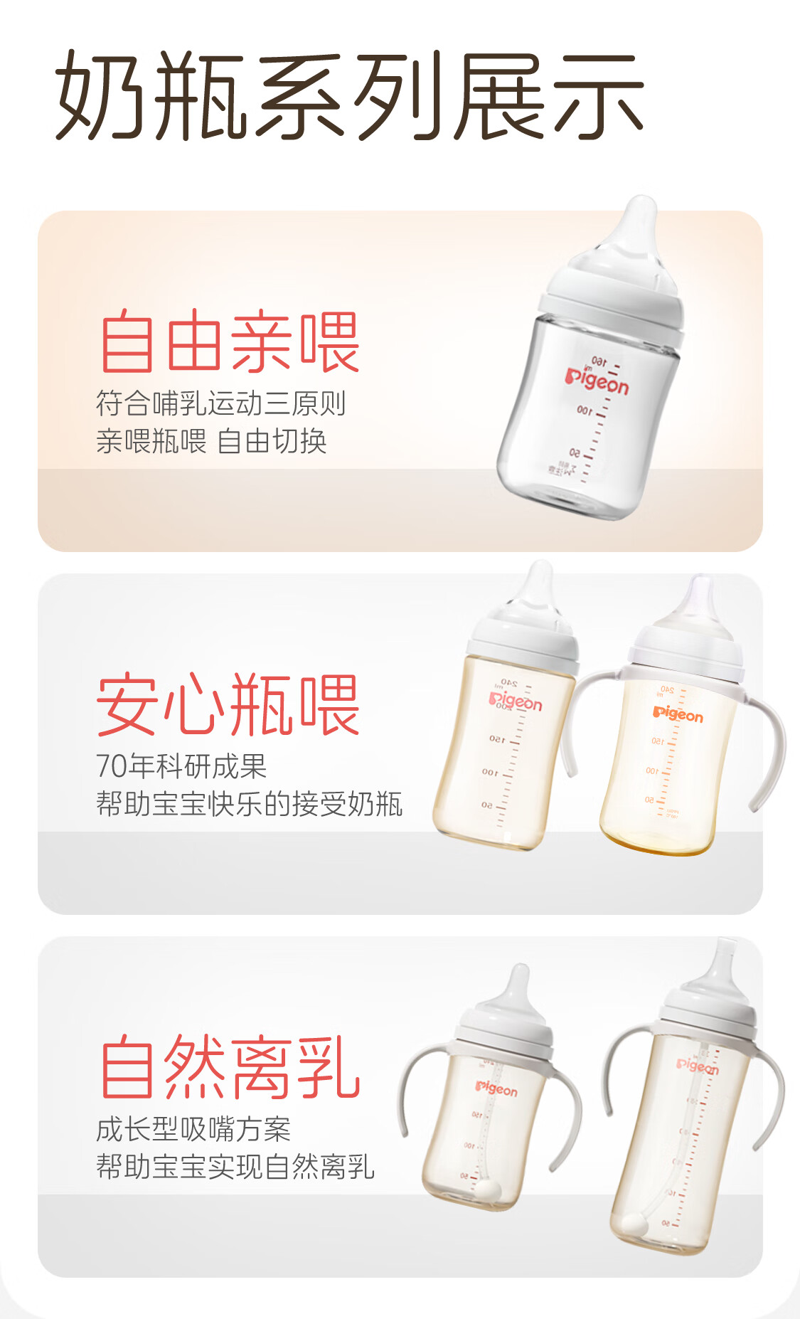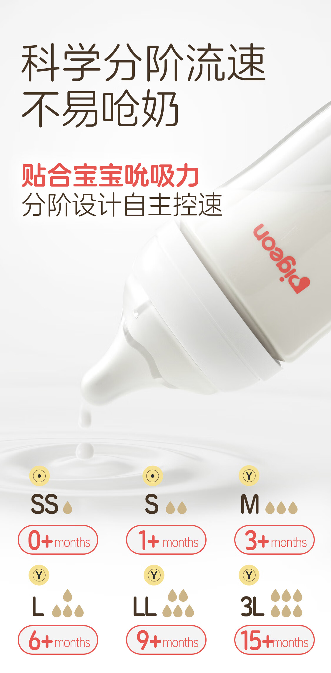 贝亲(Pigeon)奶瓶新生婴儿玻璃材质宽口径奶瓶自然实感第3代 160ml 0-1月 带ss奶嘴(彩绘版)