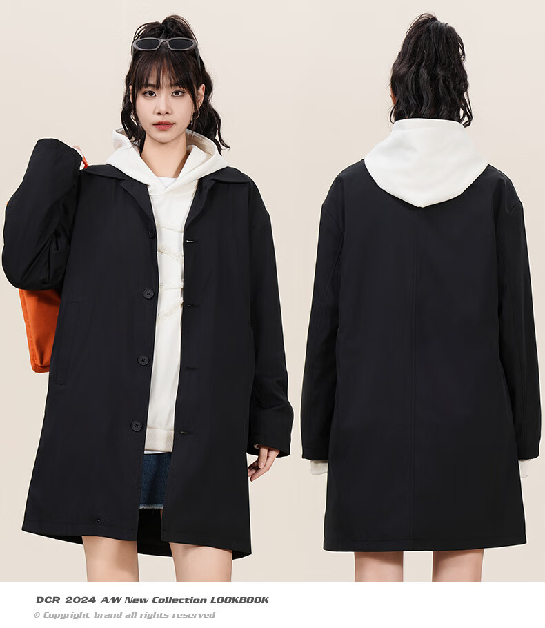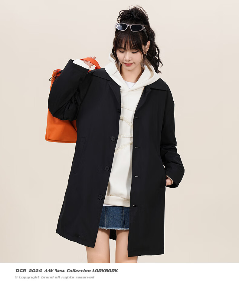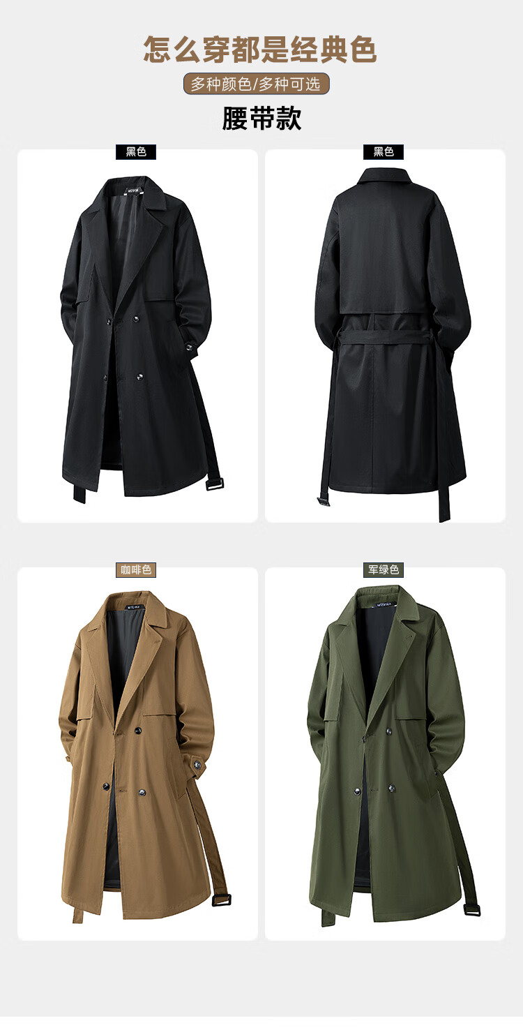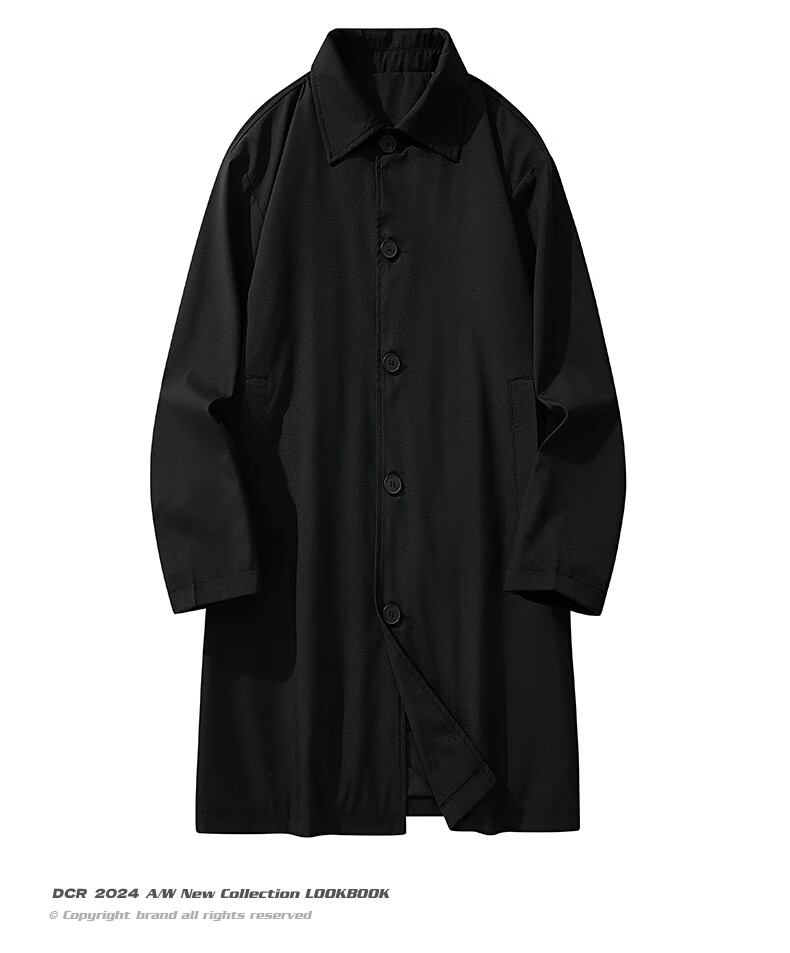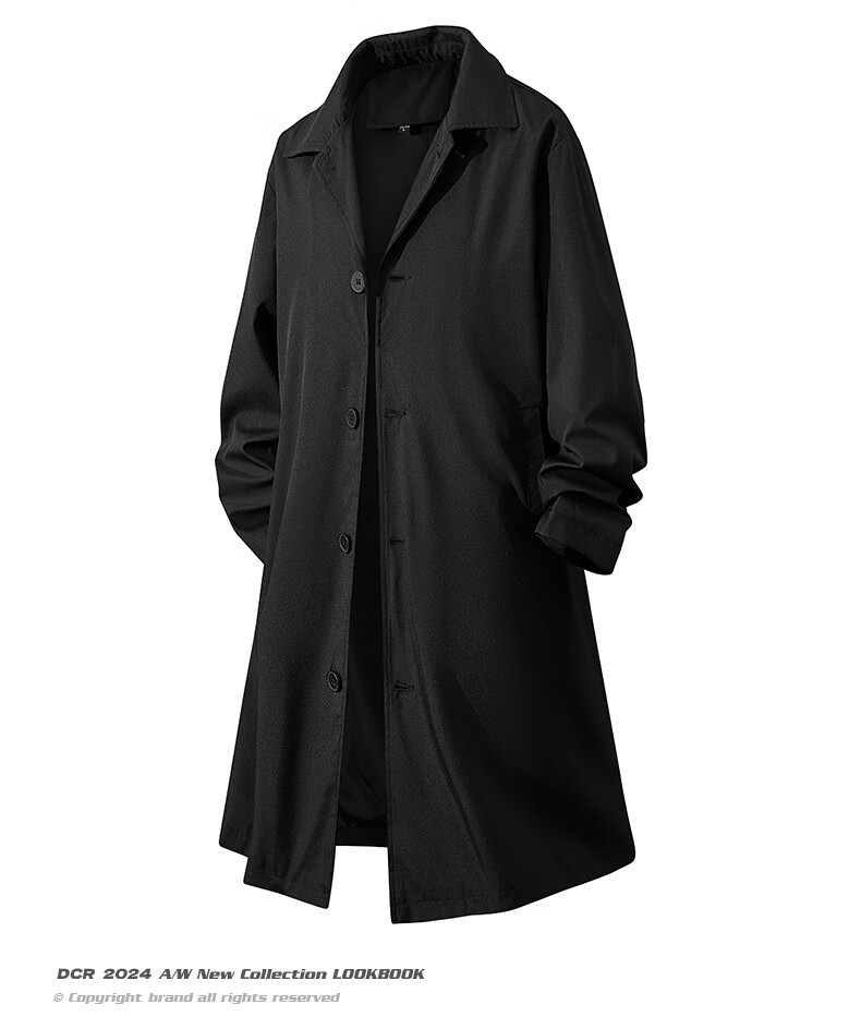 NASA GOOD中长款风衣男秋季潮牌英伦风过膝青年情侣休闲夹克大衣外套 黑3XL