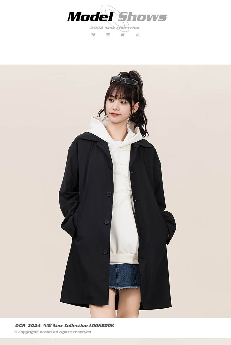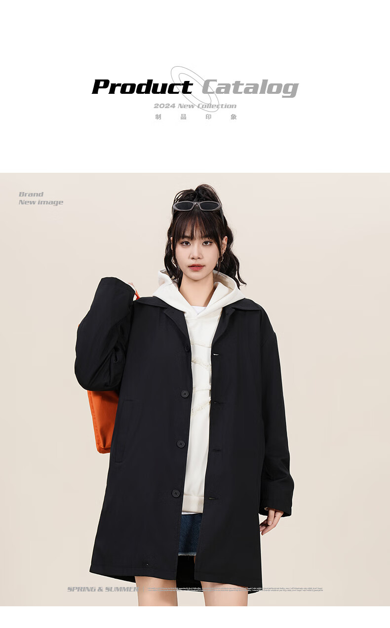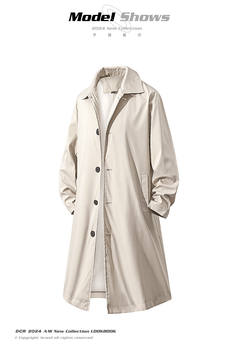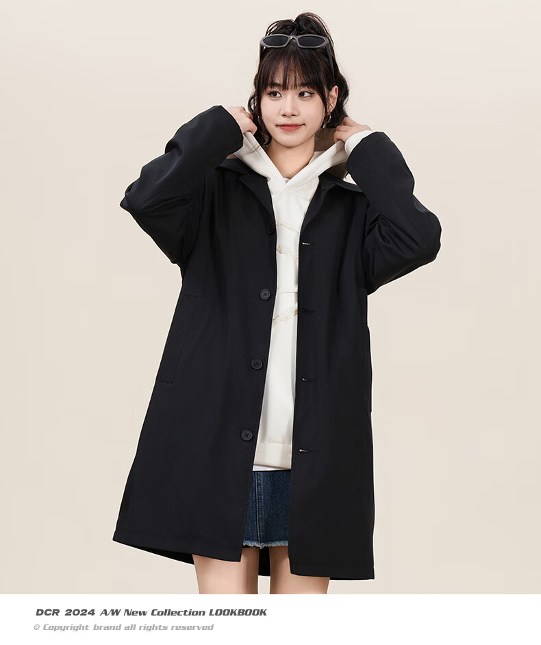NASA GOOD中长款风衣男秋季潮牌英伦风过膝青年情侣休闲夹克大衣外套 黑3XL