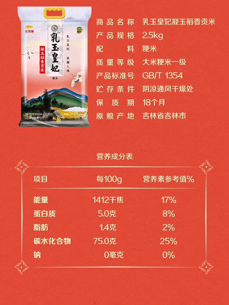 金龙鱼 大米 乳玉皇妃 凝玉稻香贡米东北大米梗米一级 2.5kg 1袋