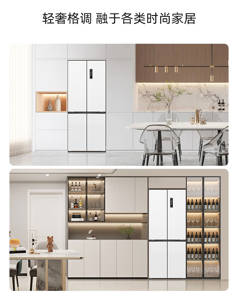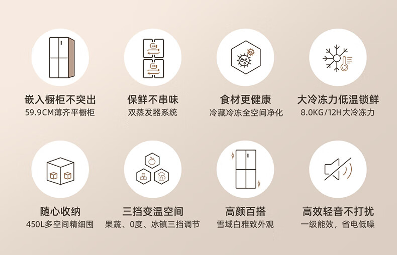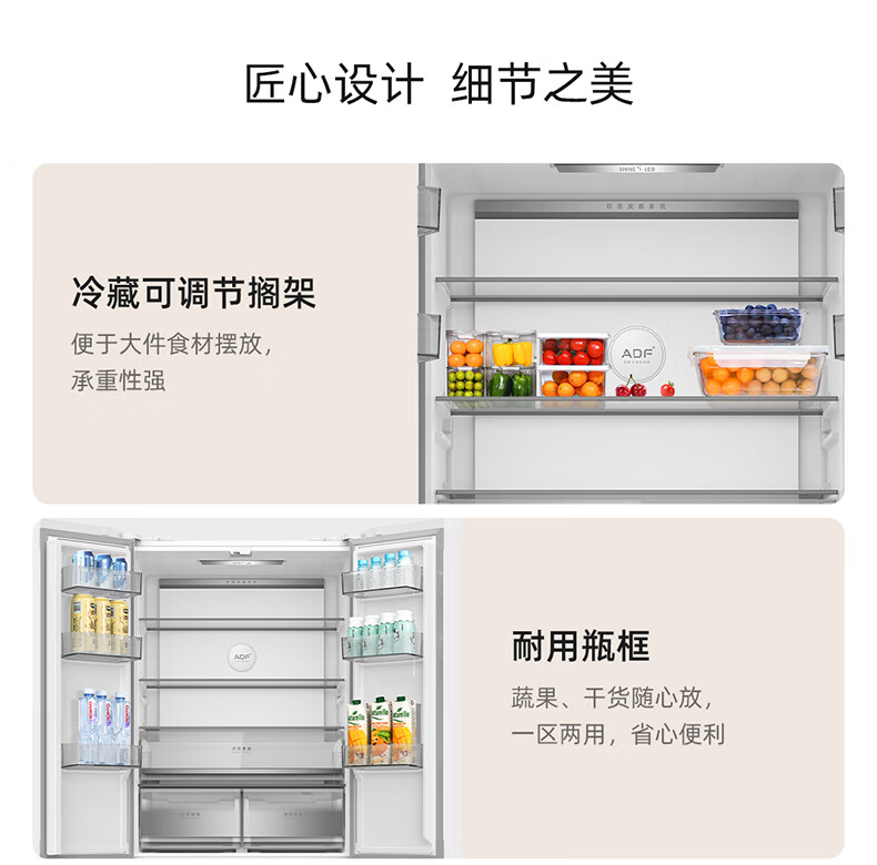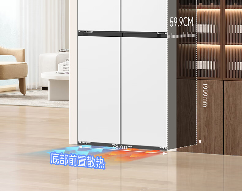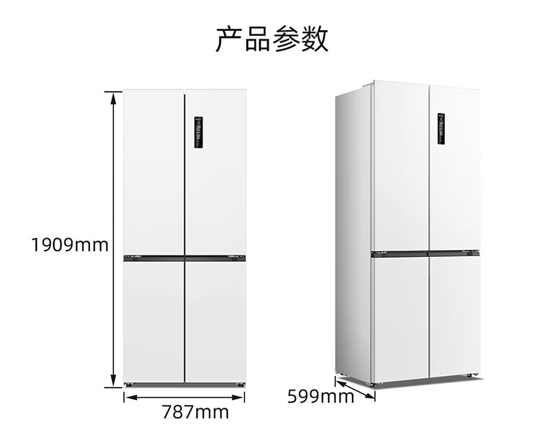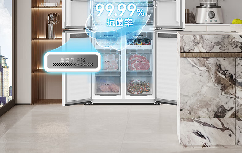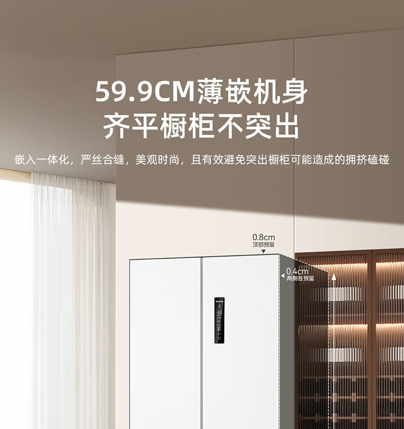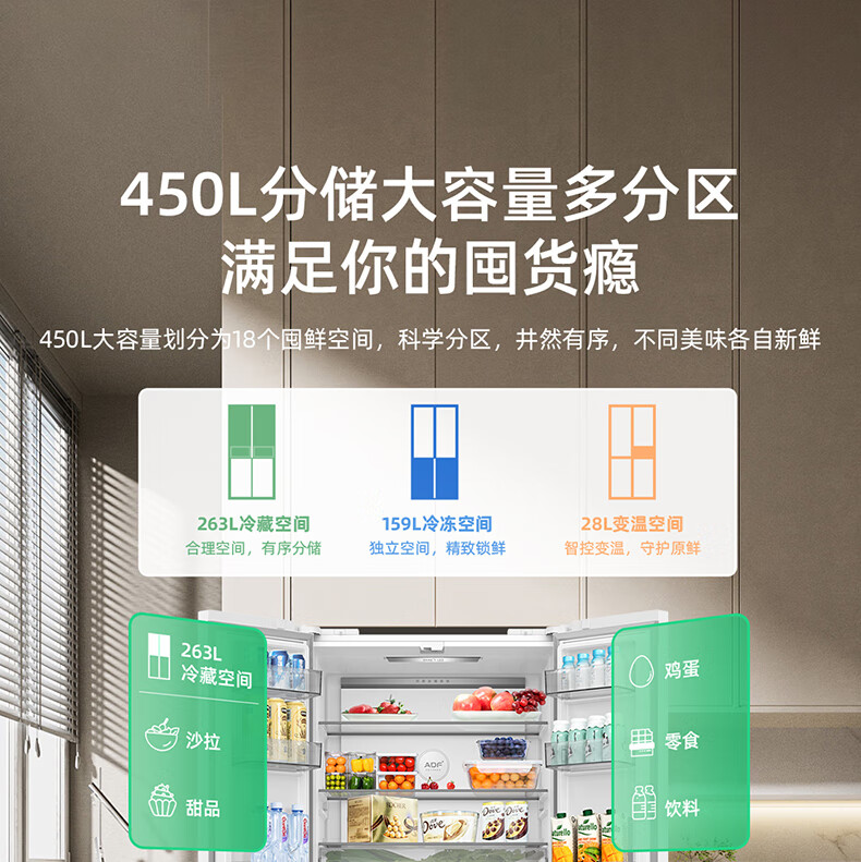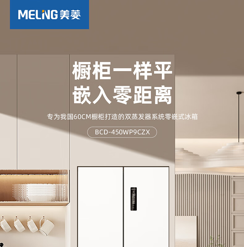 美菱(MeiLing)无忧嵌450十字四门双开门家用59.9超薄平嵌双系统大冷冻力变频节能一级能效风冷无霜冰箱国家补贴 BCD-450WP9CZX-灰【无忧嵌】