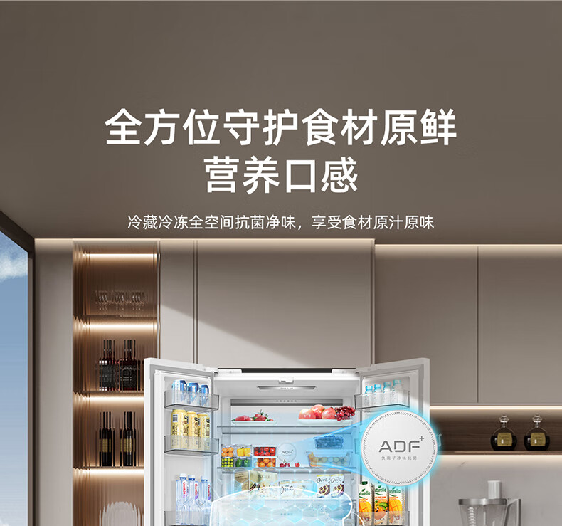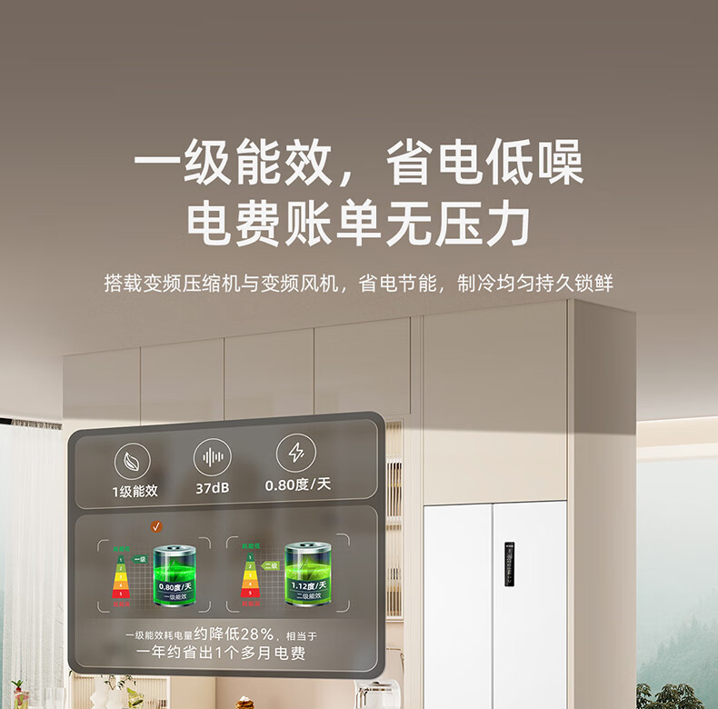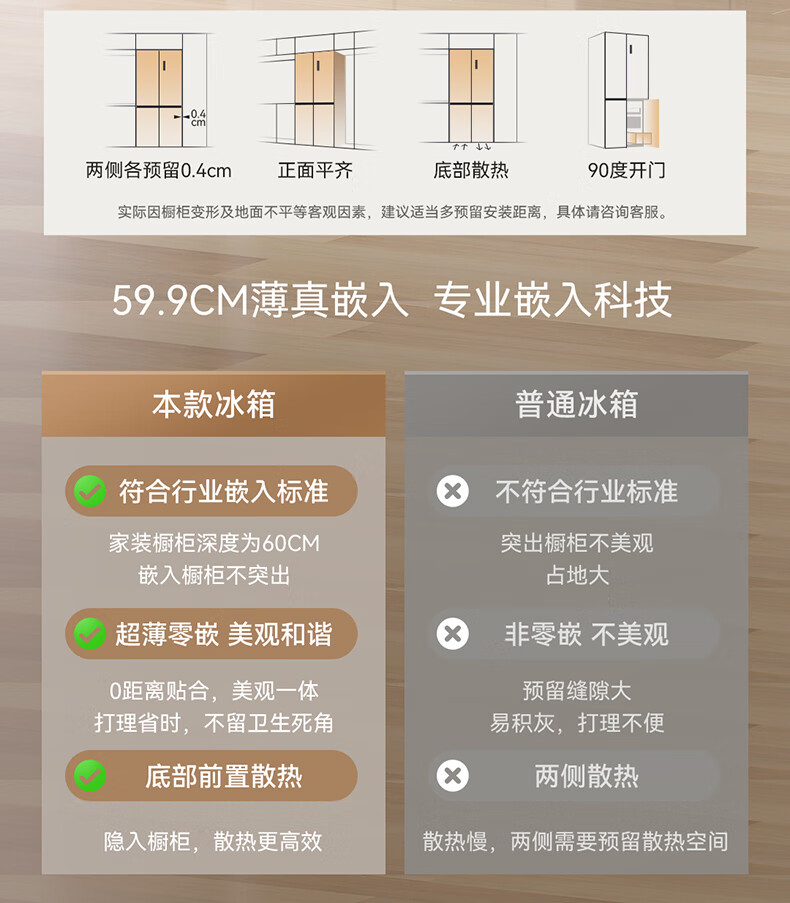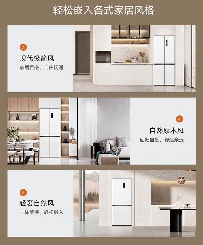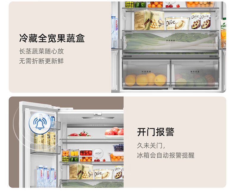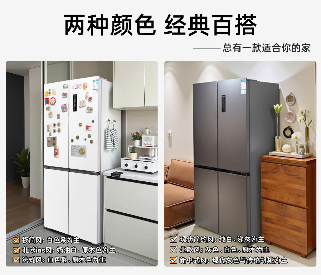 美菱(MeiLing)无忧嵌450十字四门双开门家用59.9超薄平嵌双系统大冷冻力变频节能一级能效风冷无霜冰箱国家补贴 BCD-450WP9CZX-灰【无忧嵌】