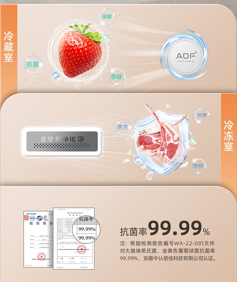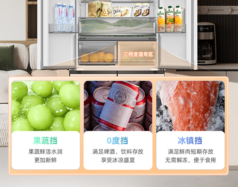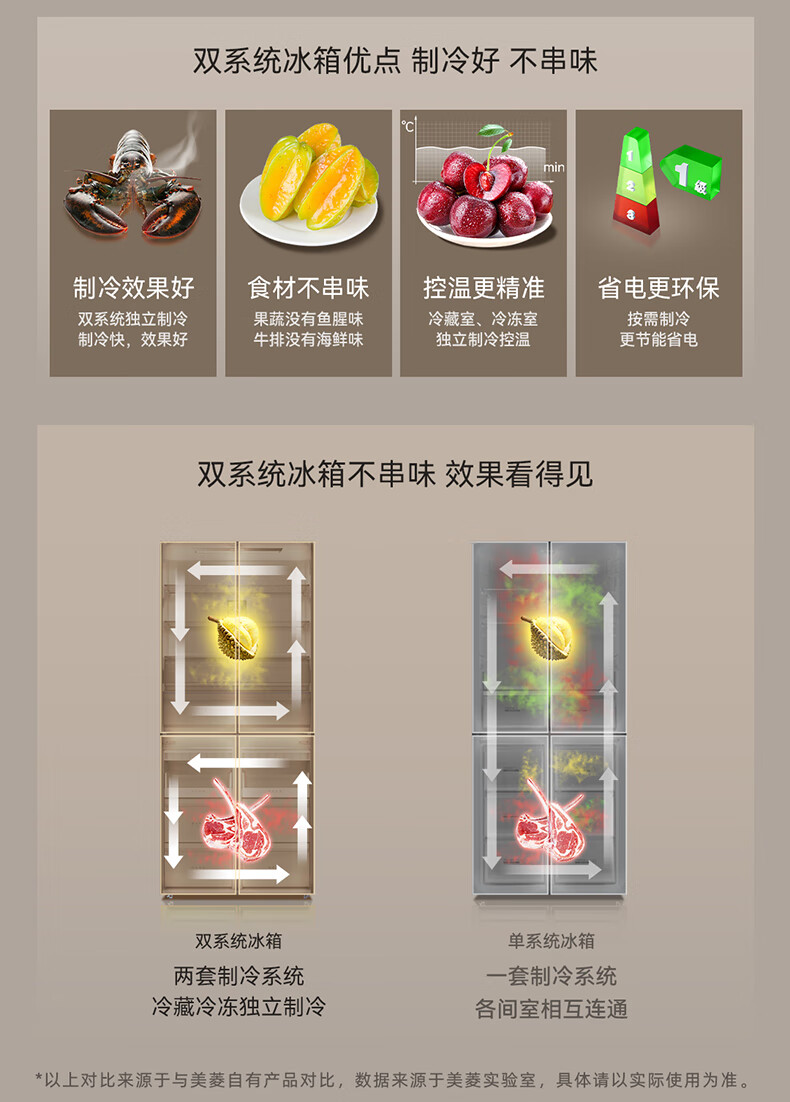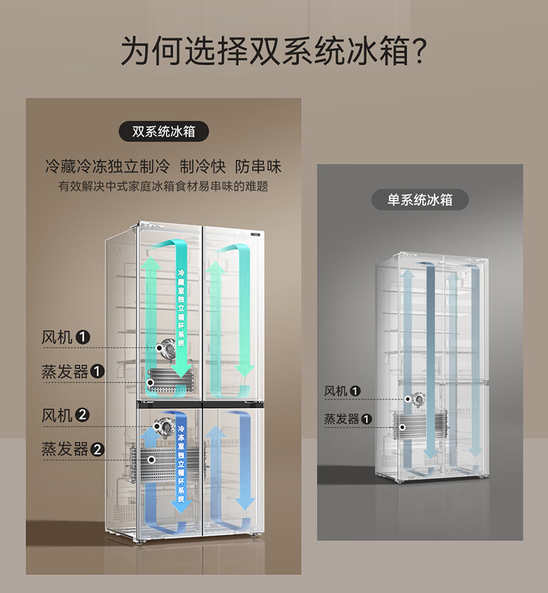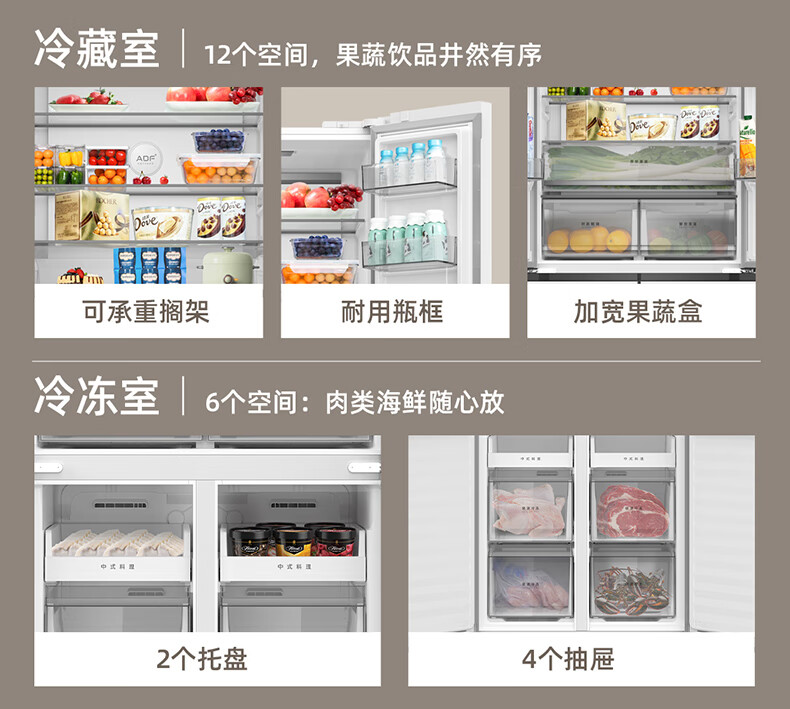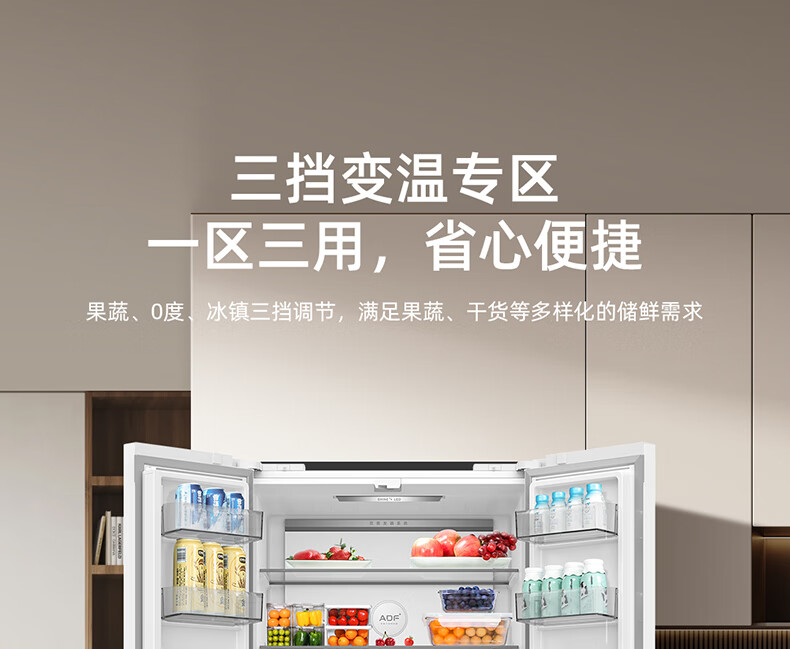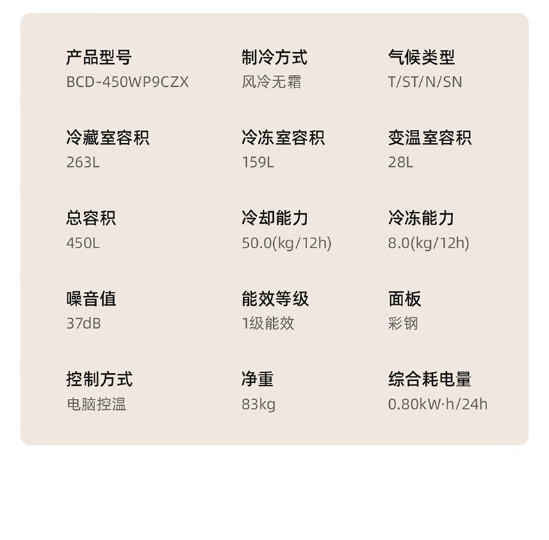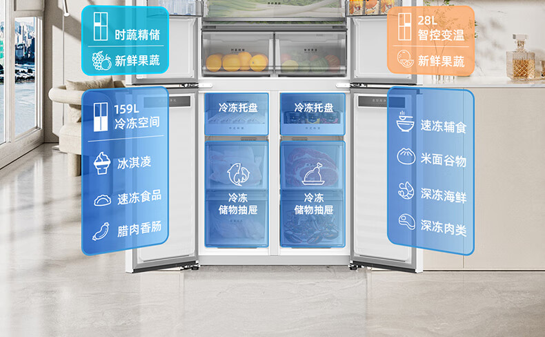 美菱(MeiLing)无忧嵌450十字四门双开门家用59.9超薄平嵌双系统大冷冻力变频节能一级能效风冷无霜冰箱国家补贴 BCD-450WP9CZX-灰【无忧嵌】