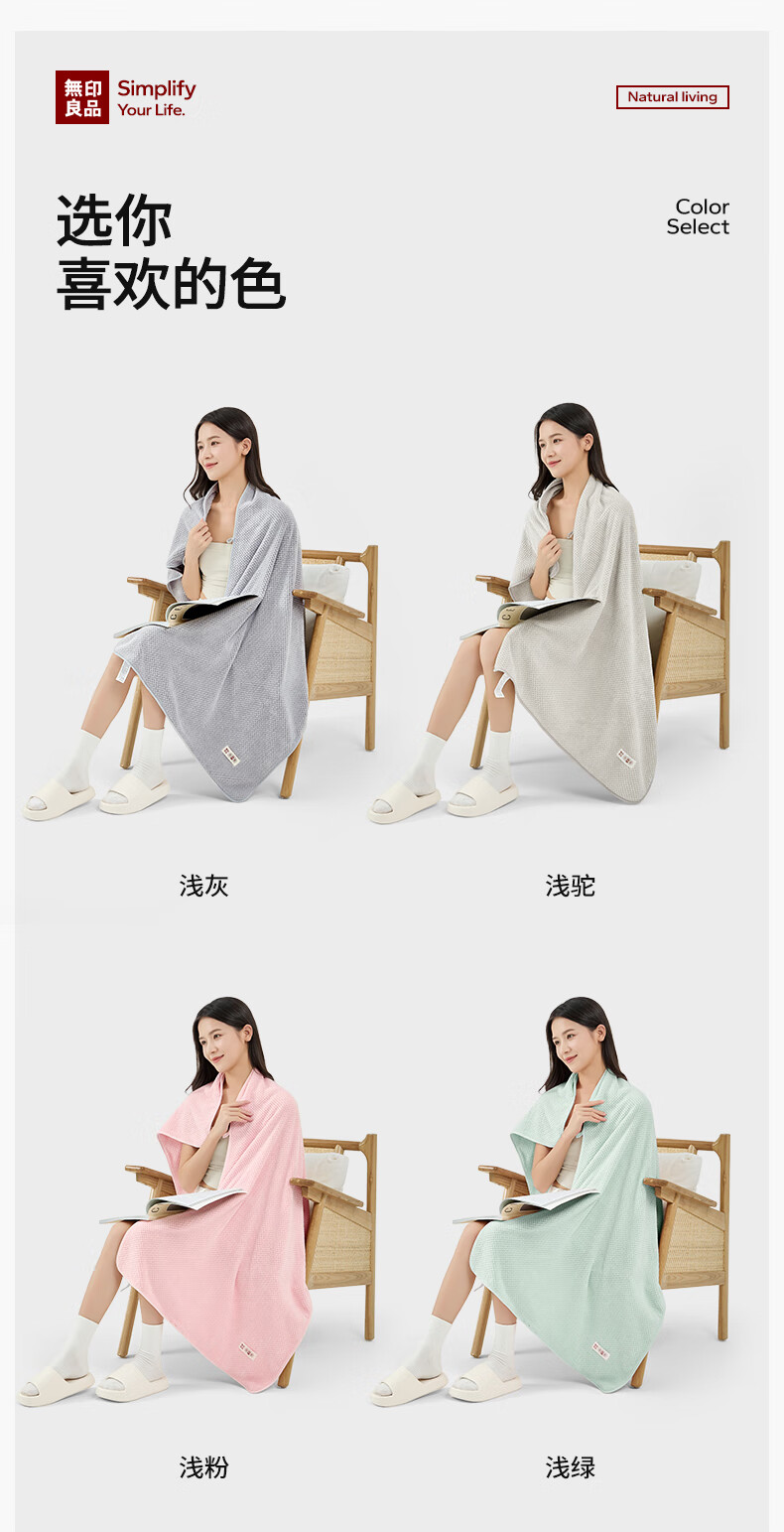 无印良品浴巾10A抗菌亲肤柔软吸水速干A类不易掉毛女生洗澡专用大浴巾柔粉