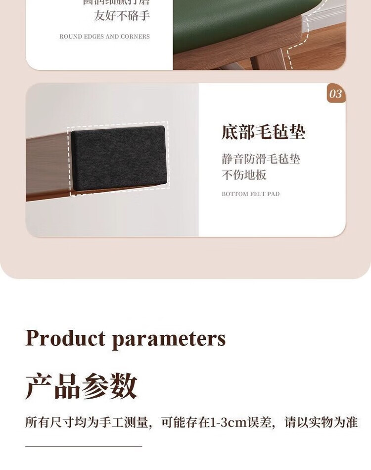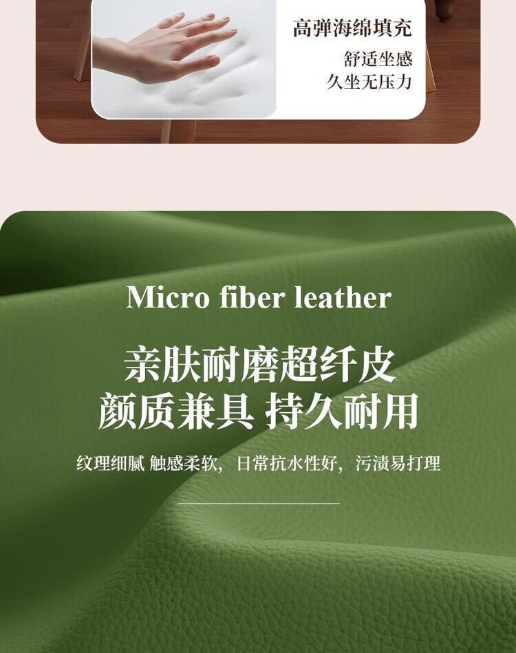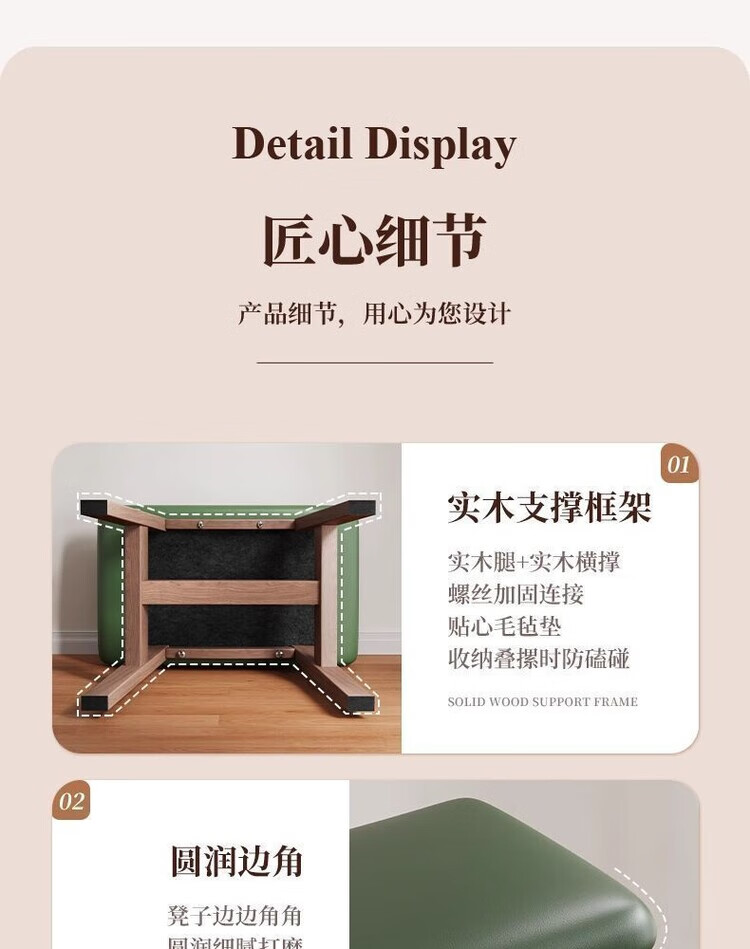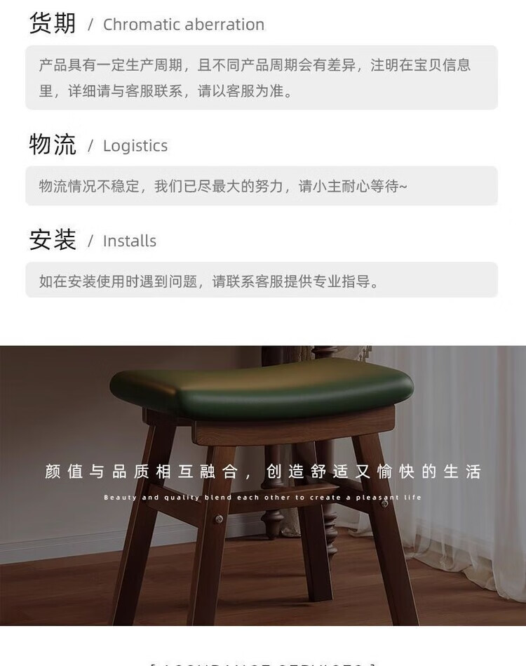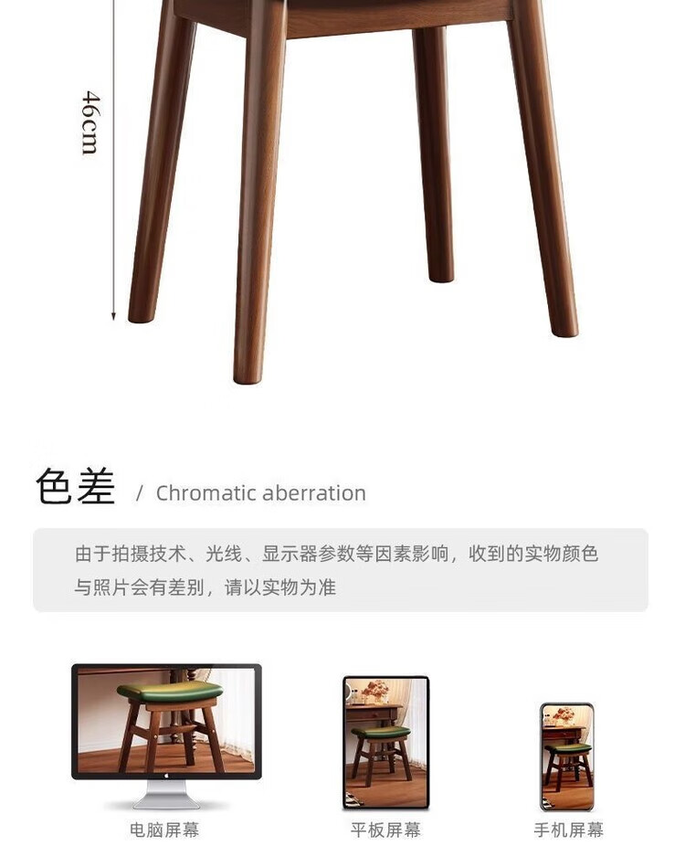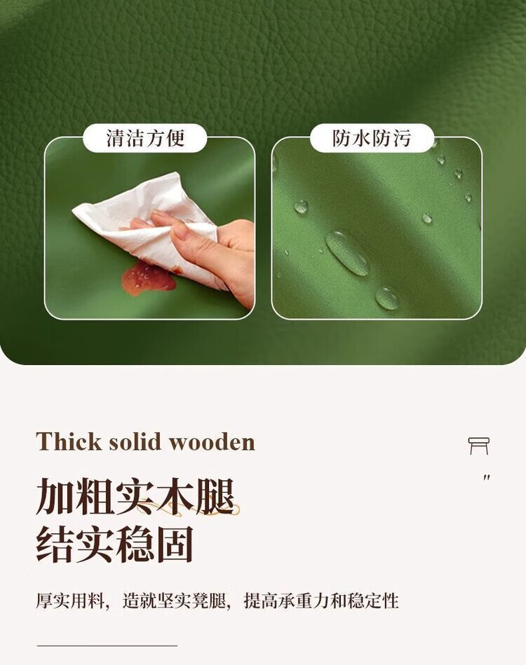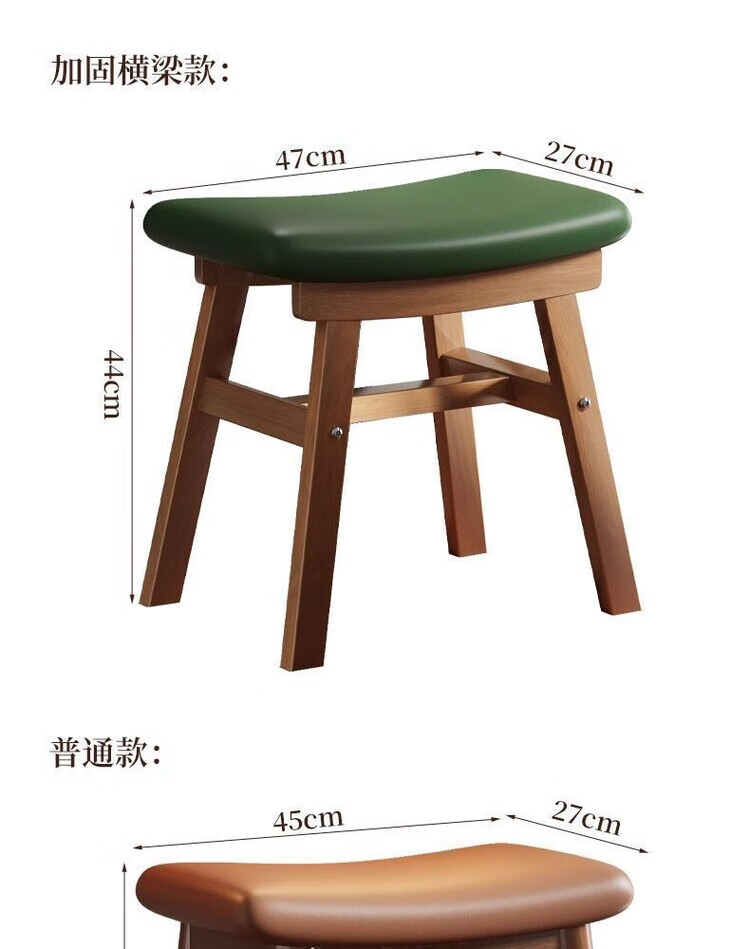 海诗圣堡实木凳子化妆凳女生卧室家用梳妆台椅子轻奢高级美甲方凳软包板凳 胡桃色+墨绿色超纤皮-高弹海绵-加固横梁