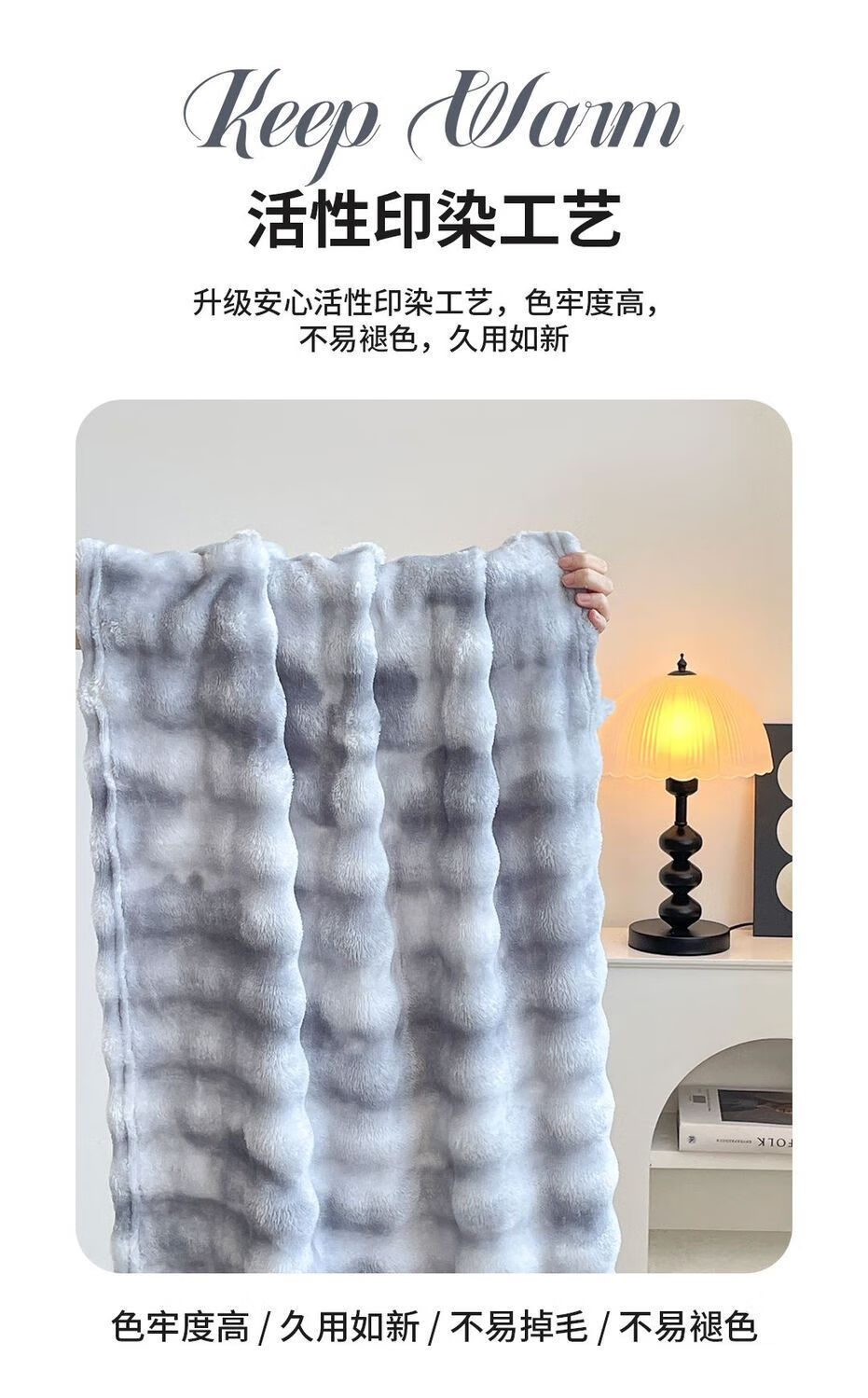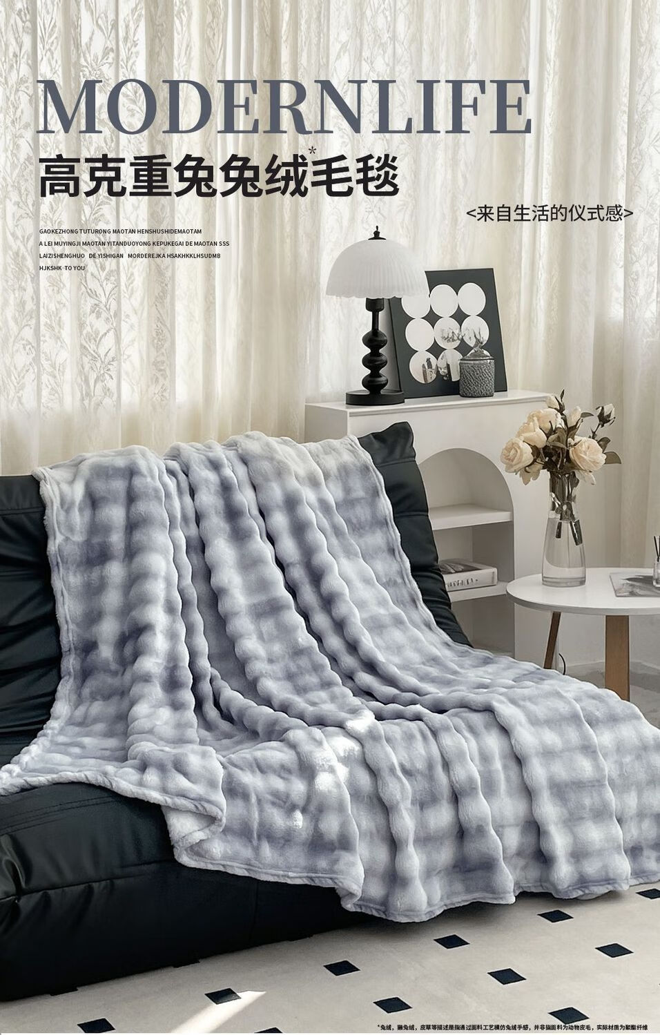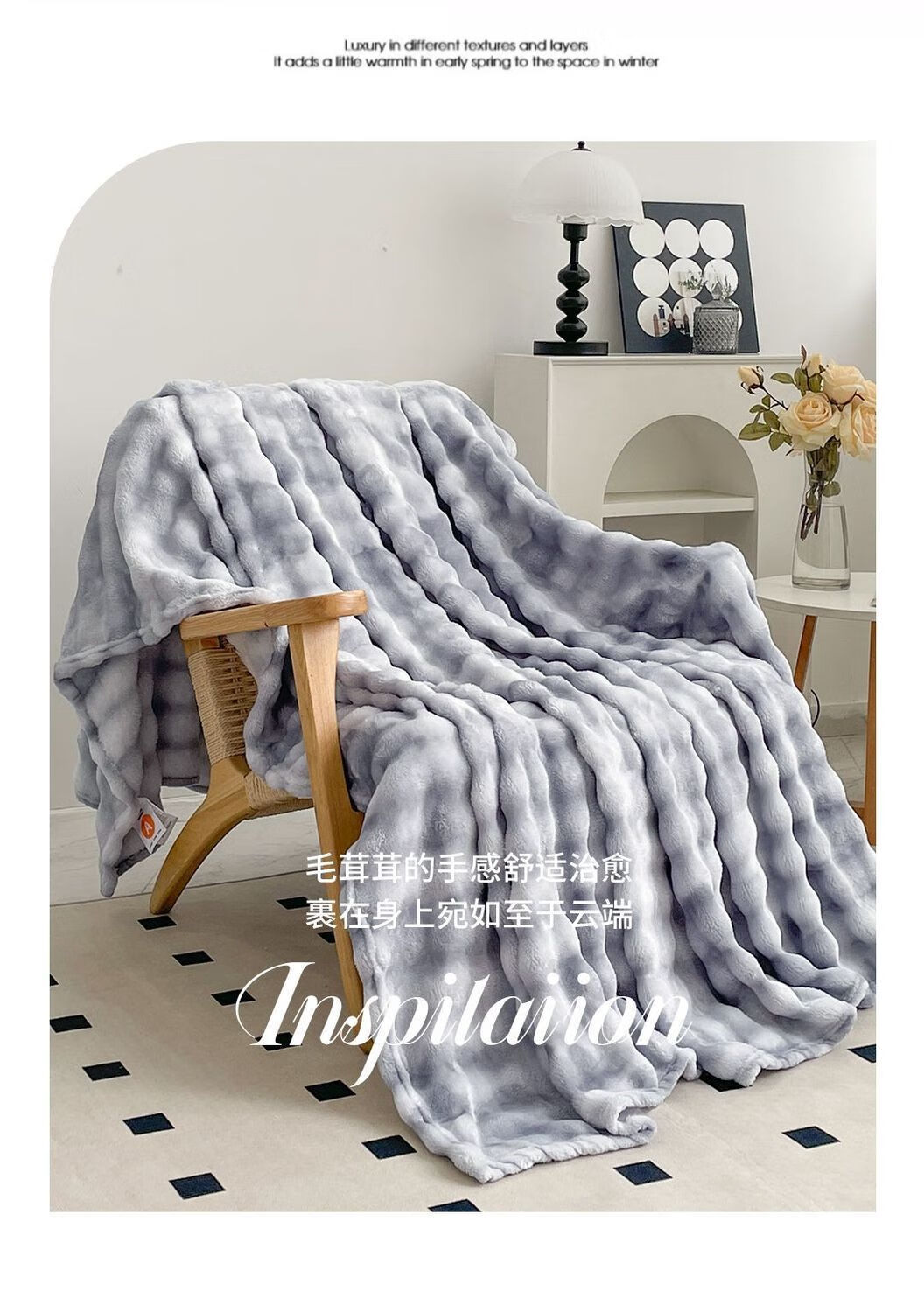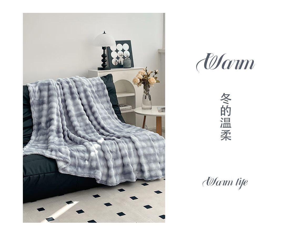 高睿时尚渐变色仿兔绒毯牛奶绒毛毯午睡毯盖毯办公室毯子保暖抗静电 烟雨灰【加绒抗静电】 70*100cm盖腿毯/柔滑触感