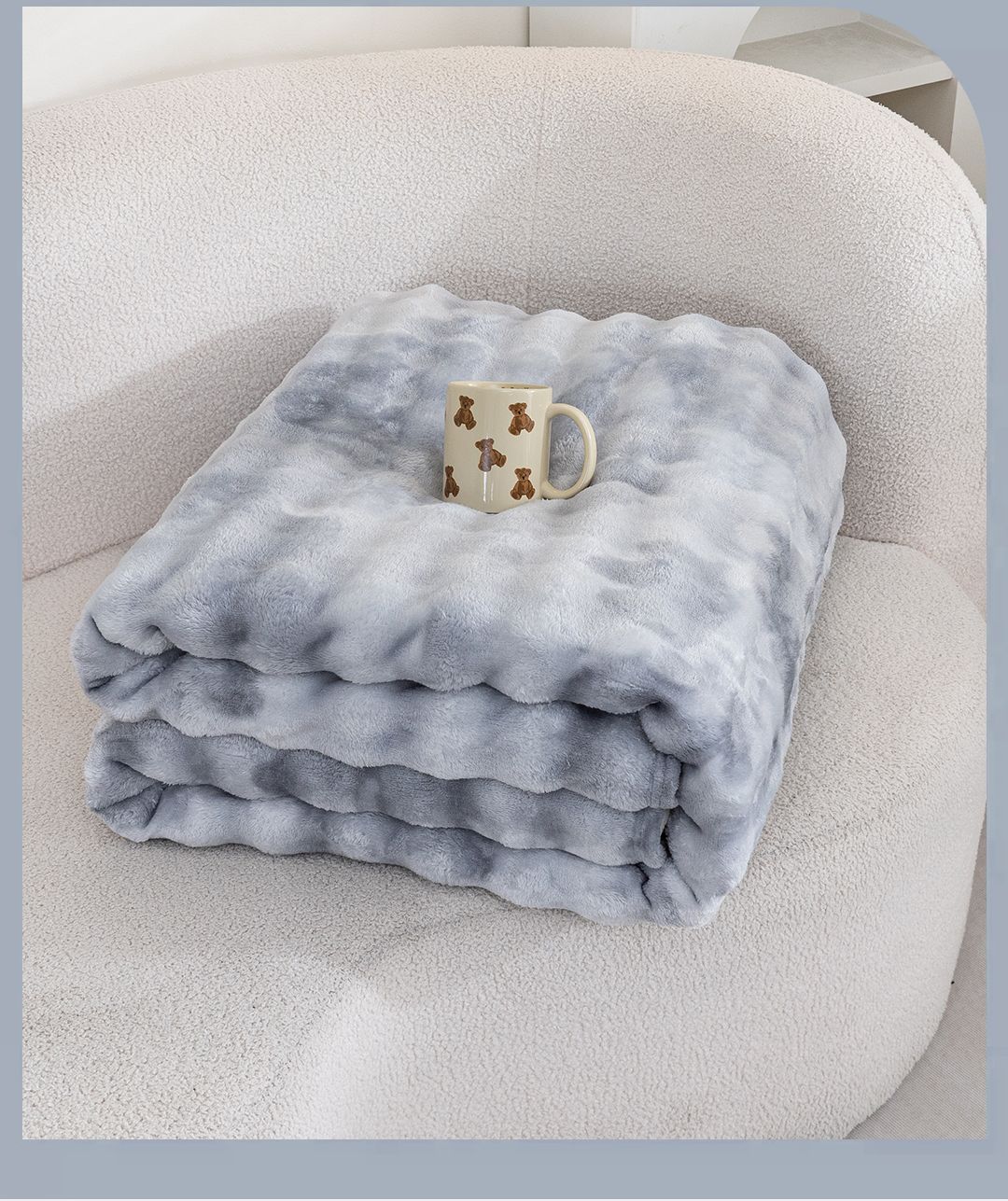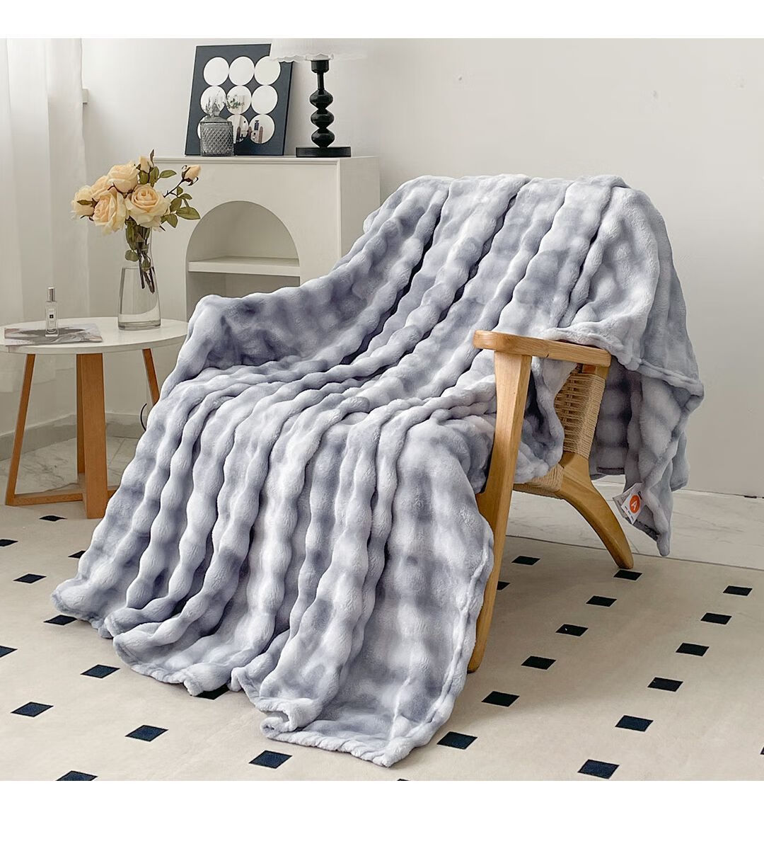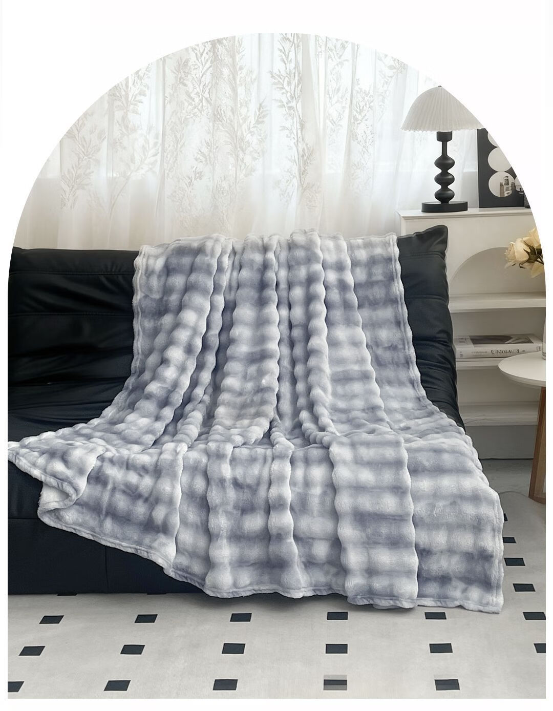 高睿时尚渐变色仿兔绒毯牛奶绒毛毯午睡毯盖毯办公室毯子保暖抗静电 烟雨灰【加绒抗静电】 70*100cm盖腿毯/柔滑触感
