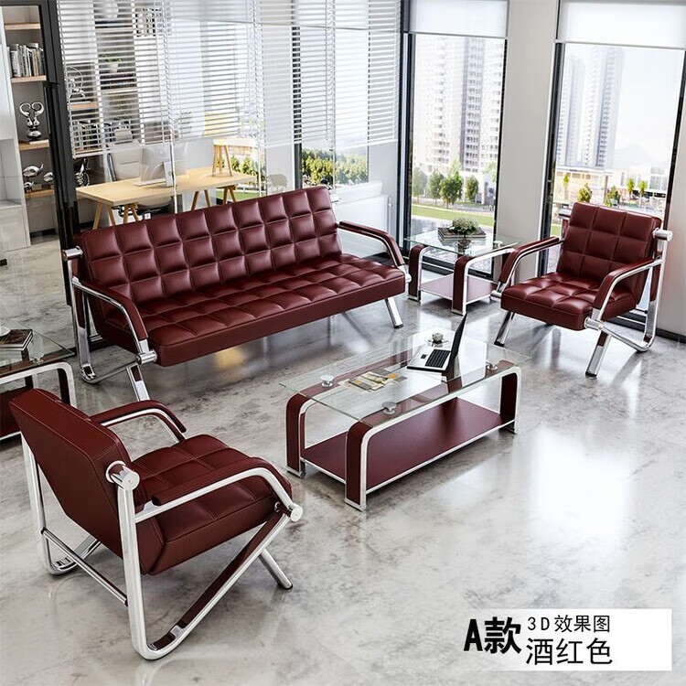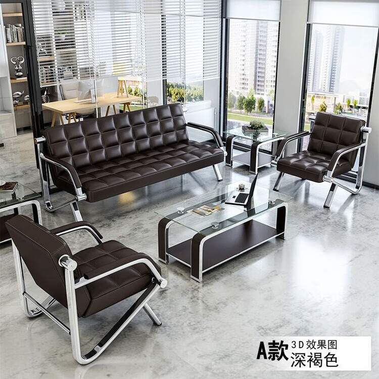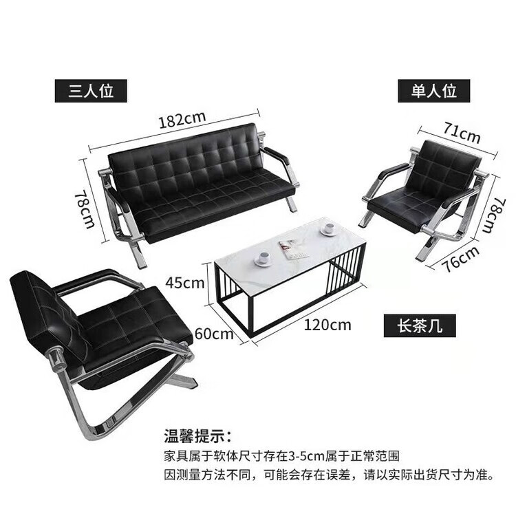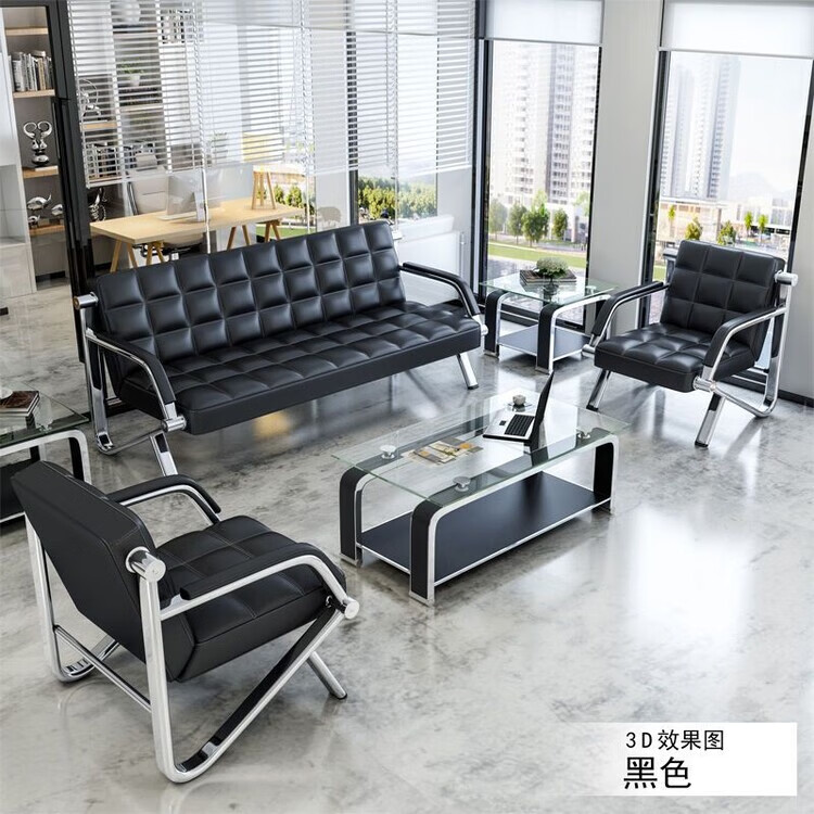 弘星隆办公沙发简约会客接待商务三人位沙发办公室家具时尚沙发茶几组合 黑色 电镀单人位沙发
