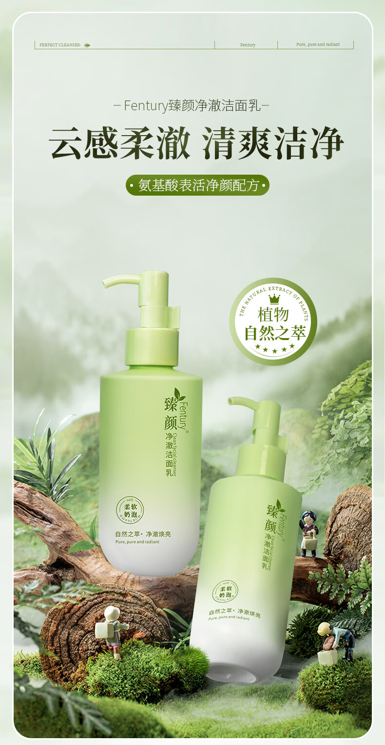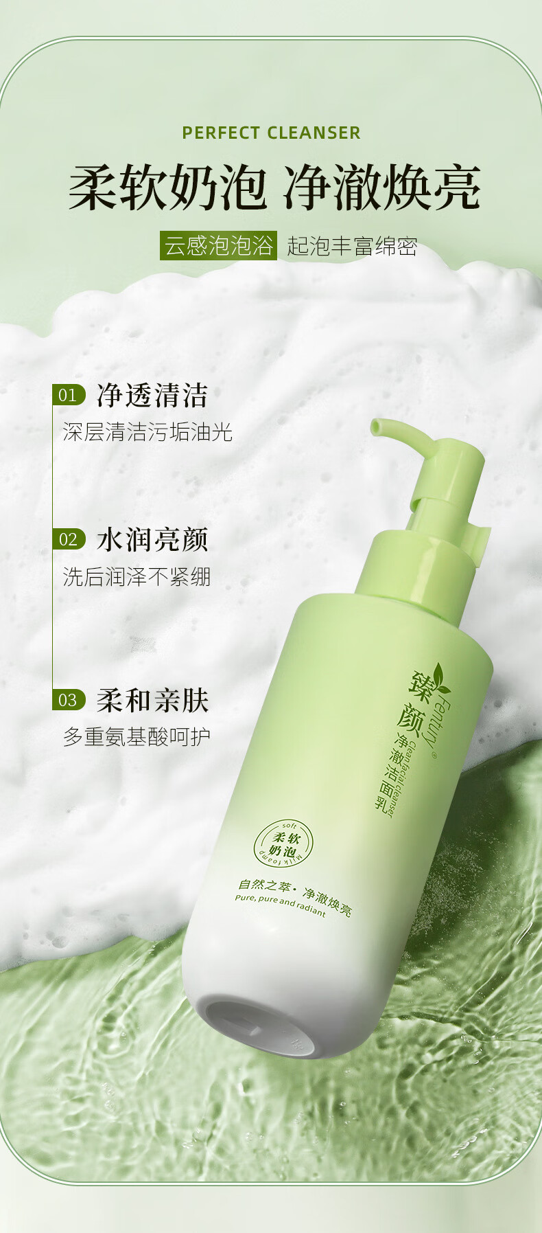 氨基酸净颜洗面奶补水温和清爽毛孔洁面慕斯泡沫洗脸 两瓶装