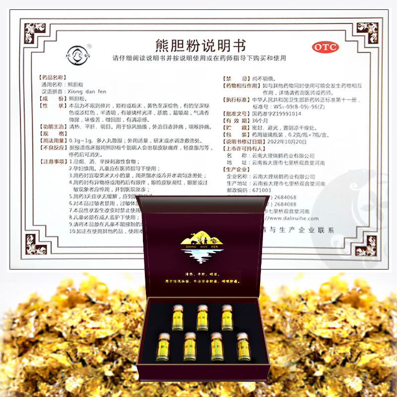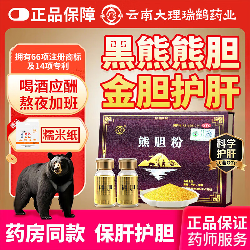 [瑞鹤]熊胆粉 0.2g*7瓶 5盒装 清热明目金胆平肝惊风抽搐外治目赤肿痛咽喉肿痛肝胆用药健康巩固 90%选择-居家常备