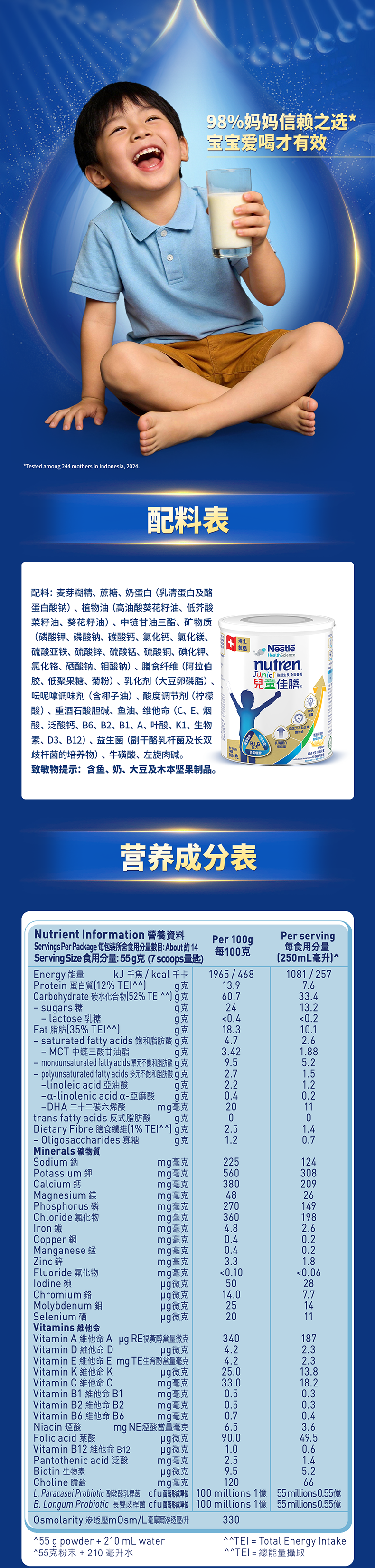 雀巢港版小佳膳儿童佳膳营养全面配方粉 含益生菌DHA 1-10岁适用 800g 800g*6罐 咨询享福利