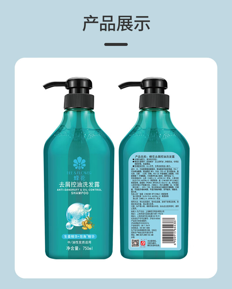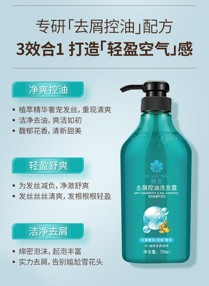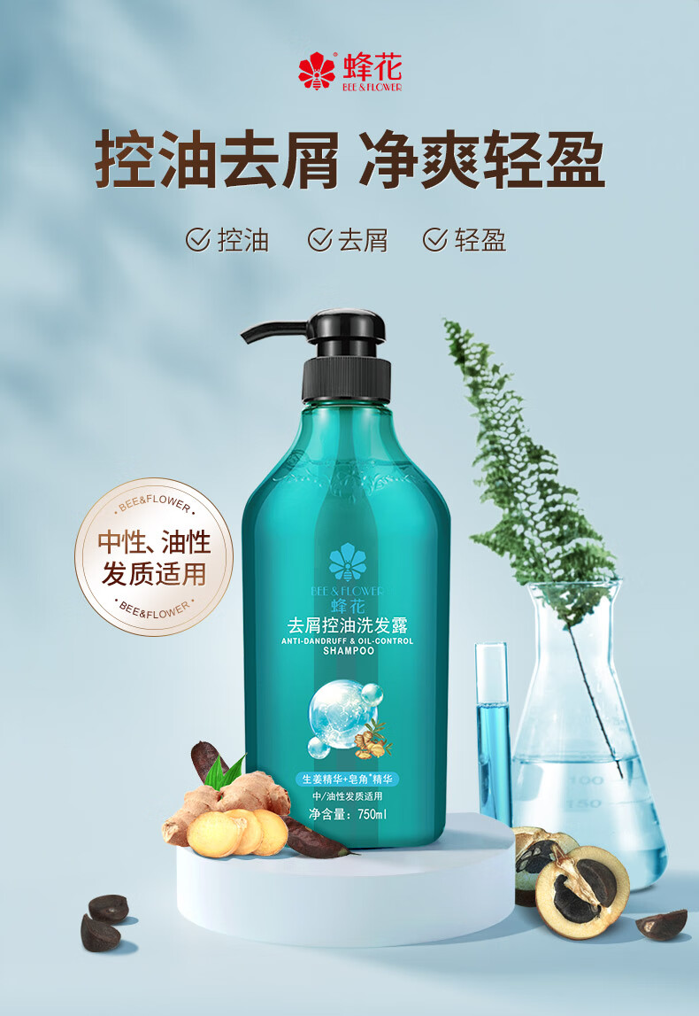 蜂花洗发水男士洁净去屑去油女士控油轻盈舒爽洗发露生姜皂角精华 蜂花去屑控油洗发露 750ml*1瓶
