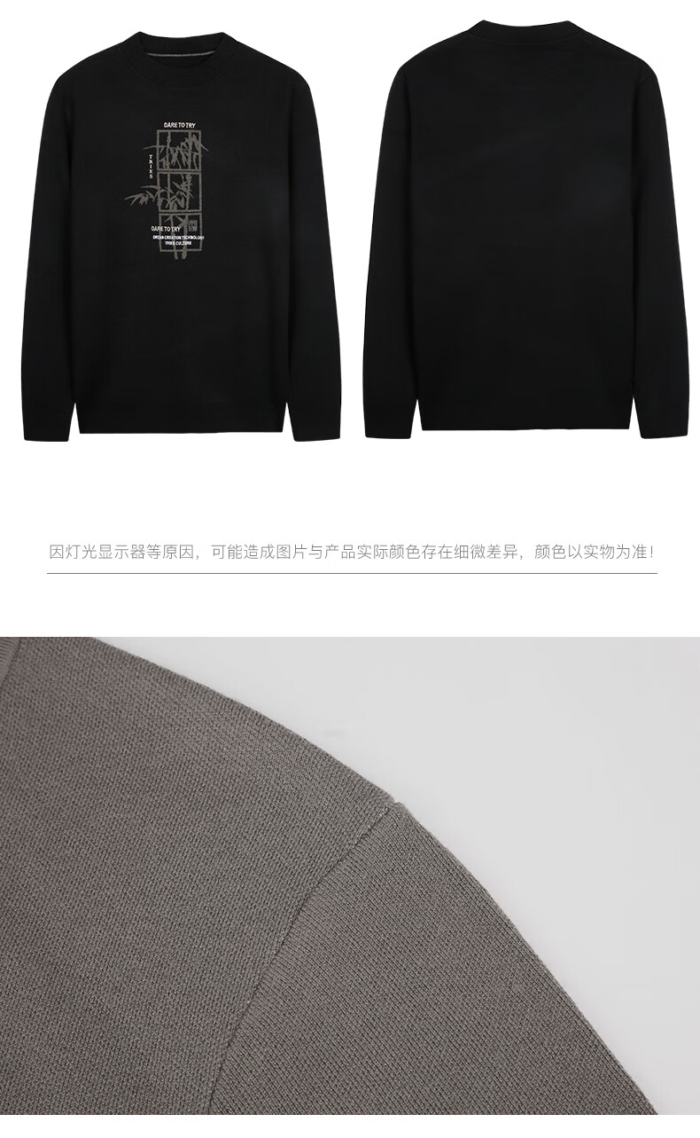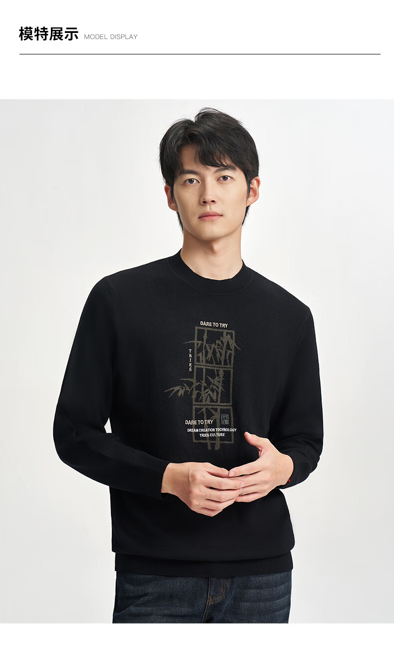 才子(TRIES)圆领毛衣男士春秋新款男装提花套头针织衫螺纹领毛衫毛衣打底衫 深灰色 L 48(170/88A)