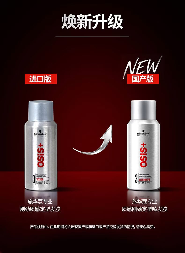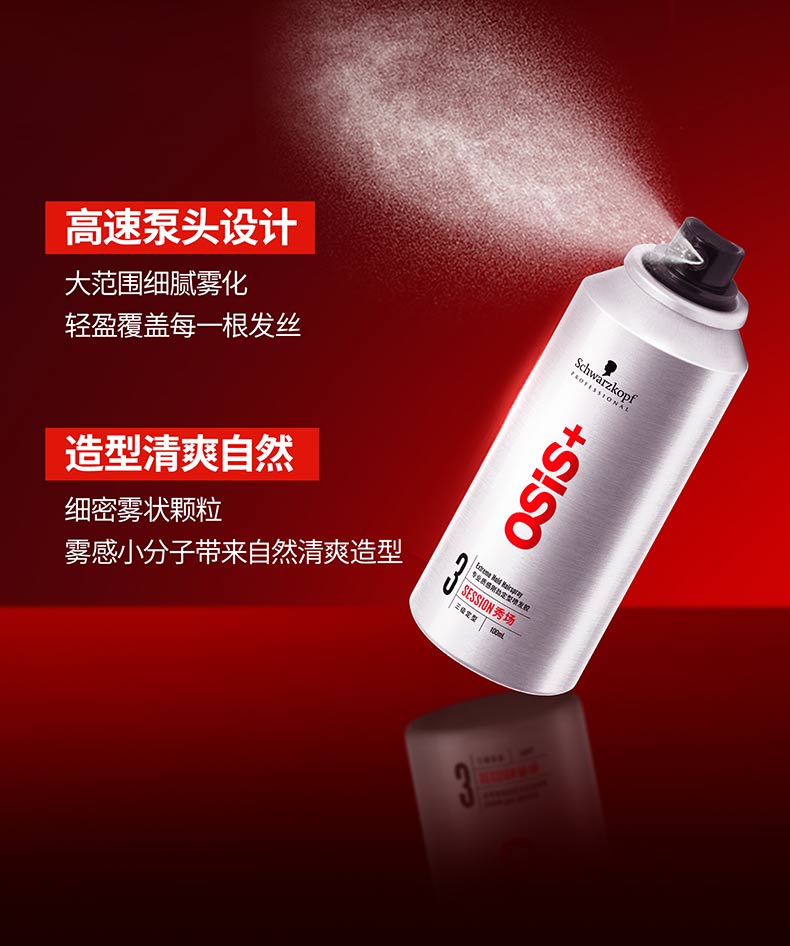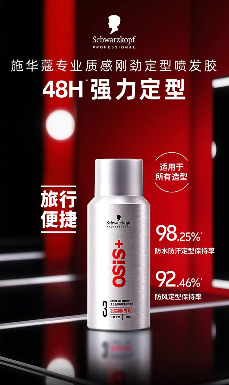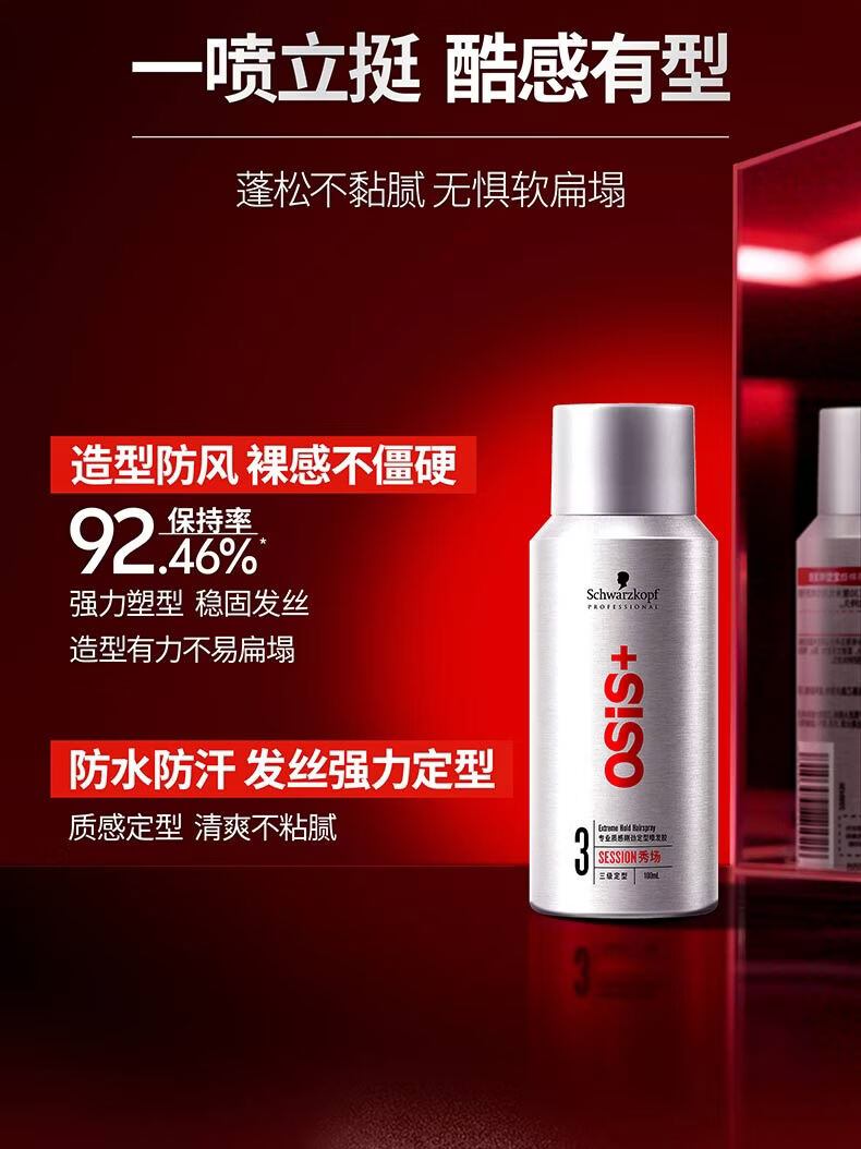 施华蔻专业OSIS刚劲定型喷雾发胶100ml 蓬松旅行装便携男士清爽持久清香小瓶