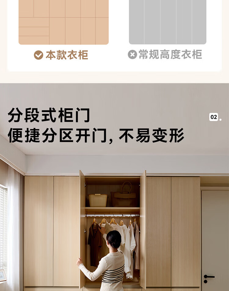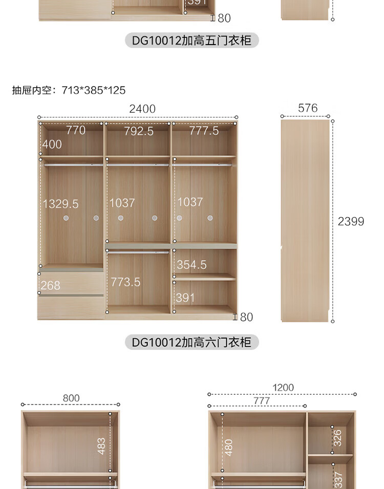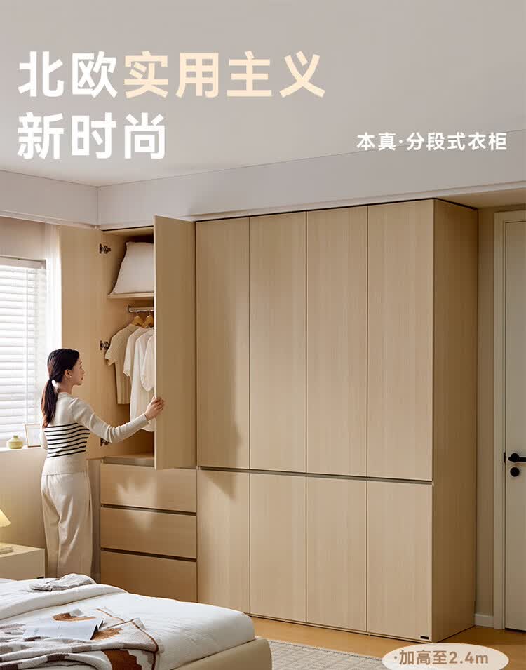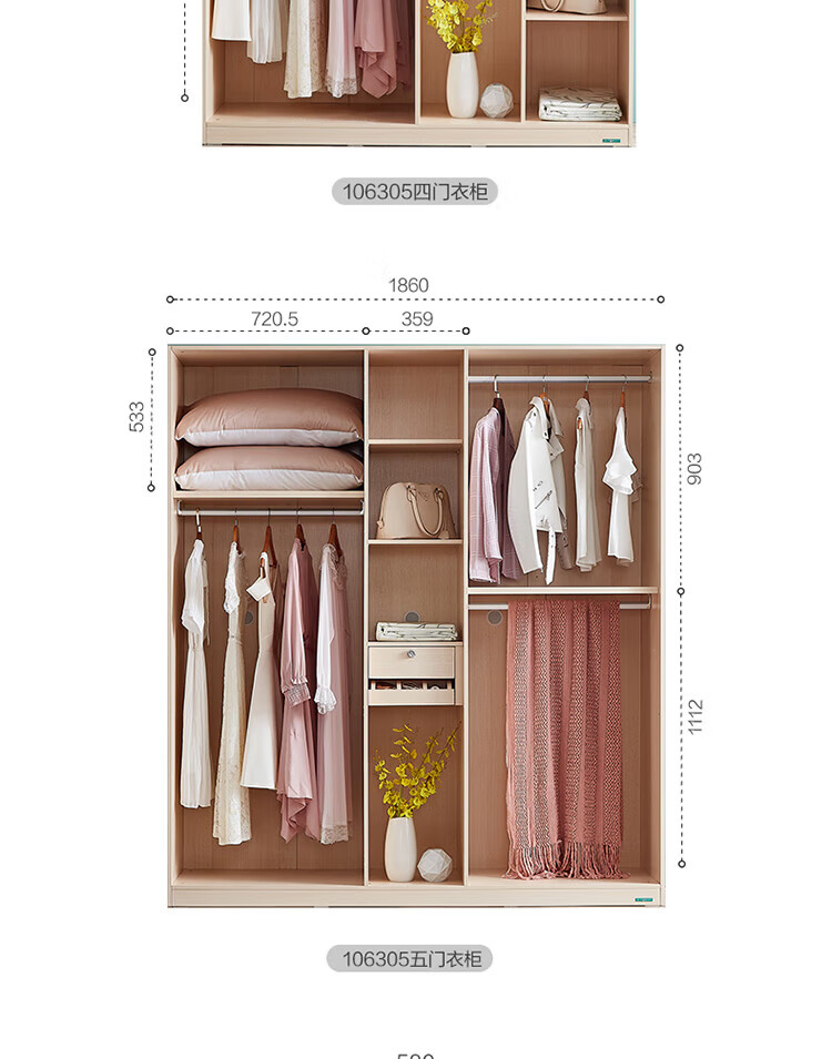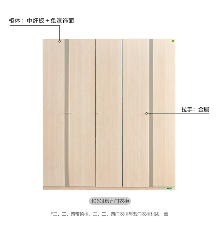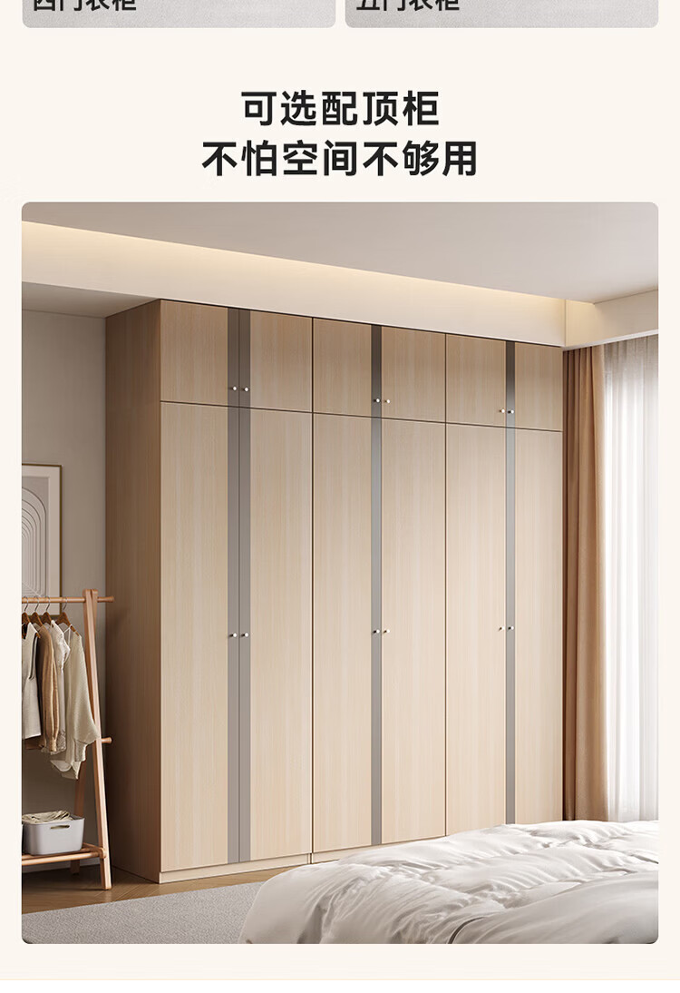 全友(QUANU)【迷瞪清仓货盘】大衣柜组合款主卧室靠墙成品衣橱衣服收纳储物 【分段式】2.11*2.4米五门衣柜