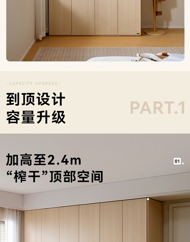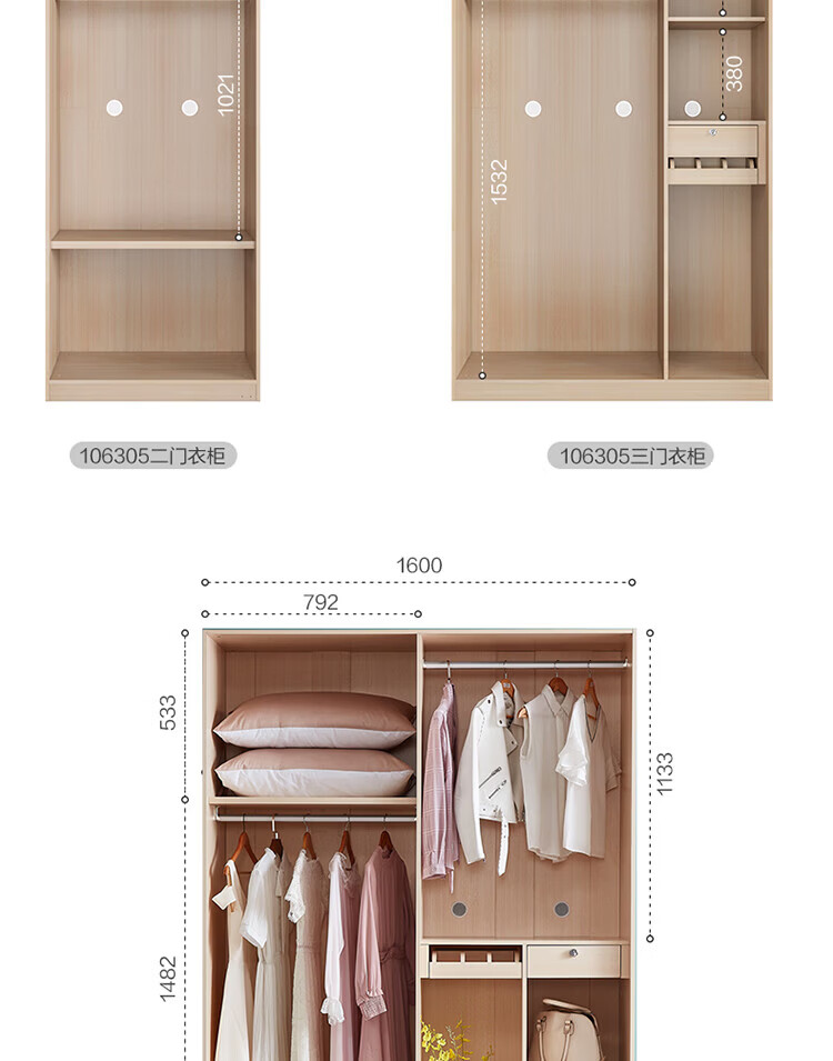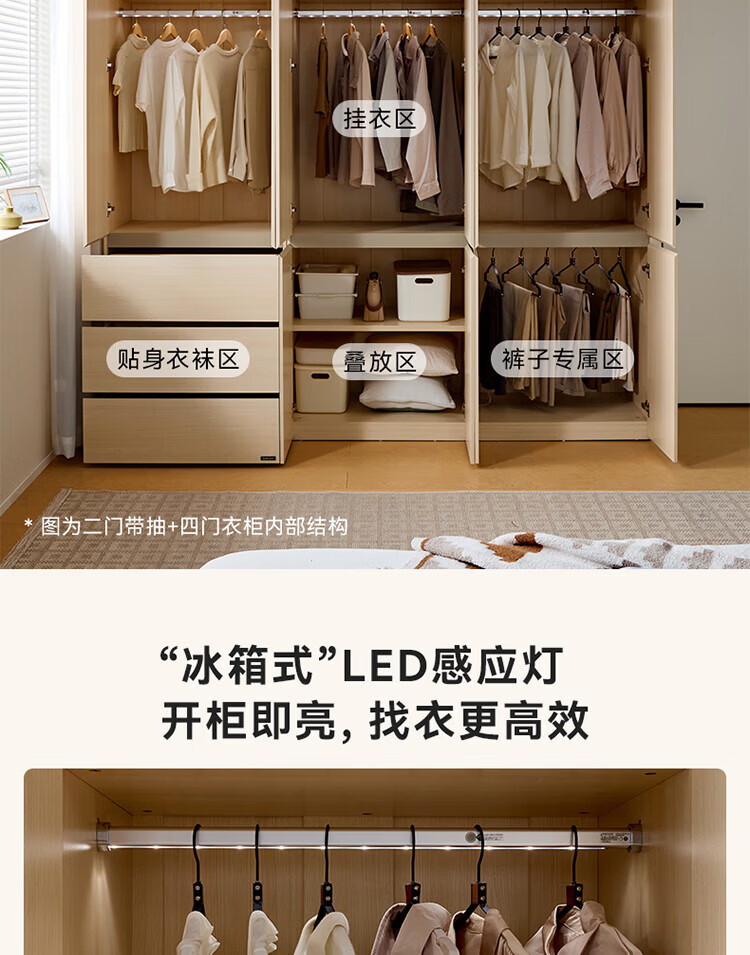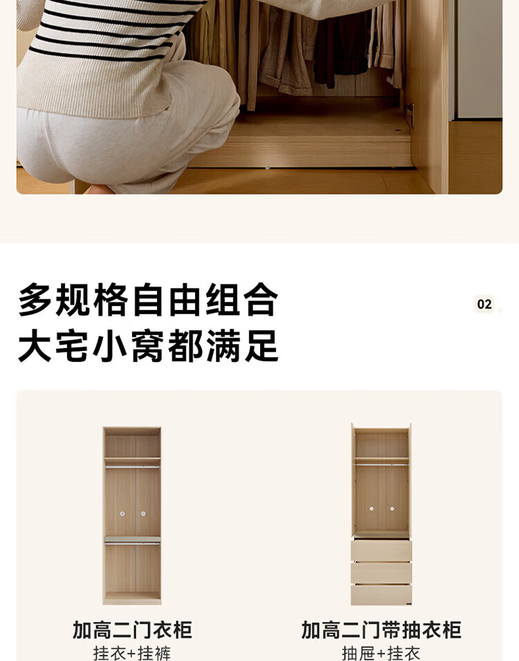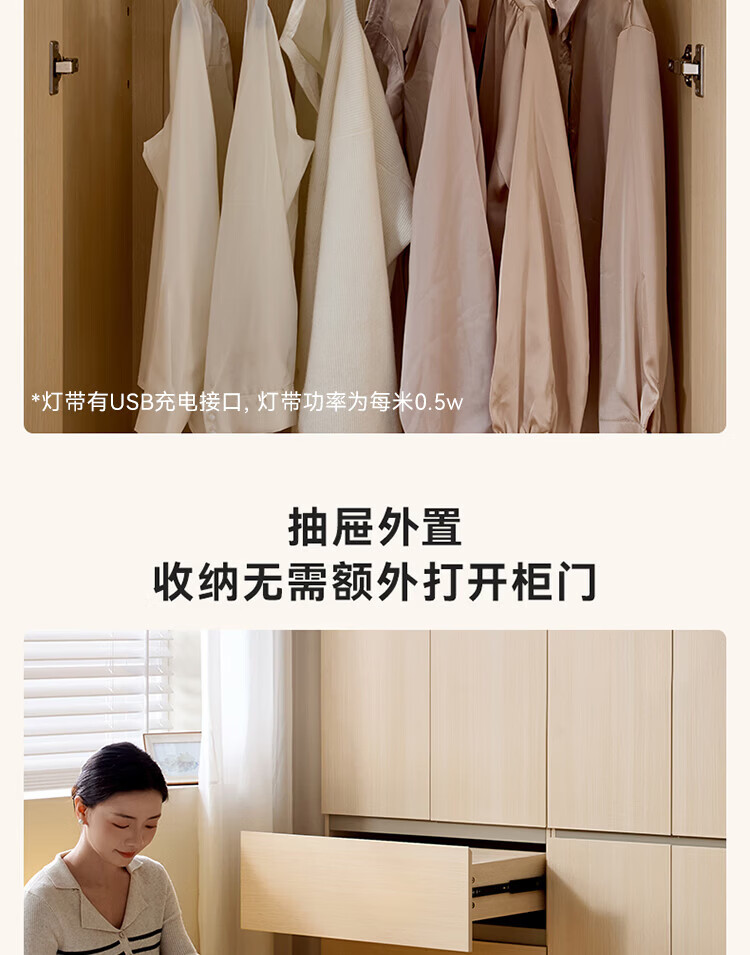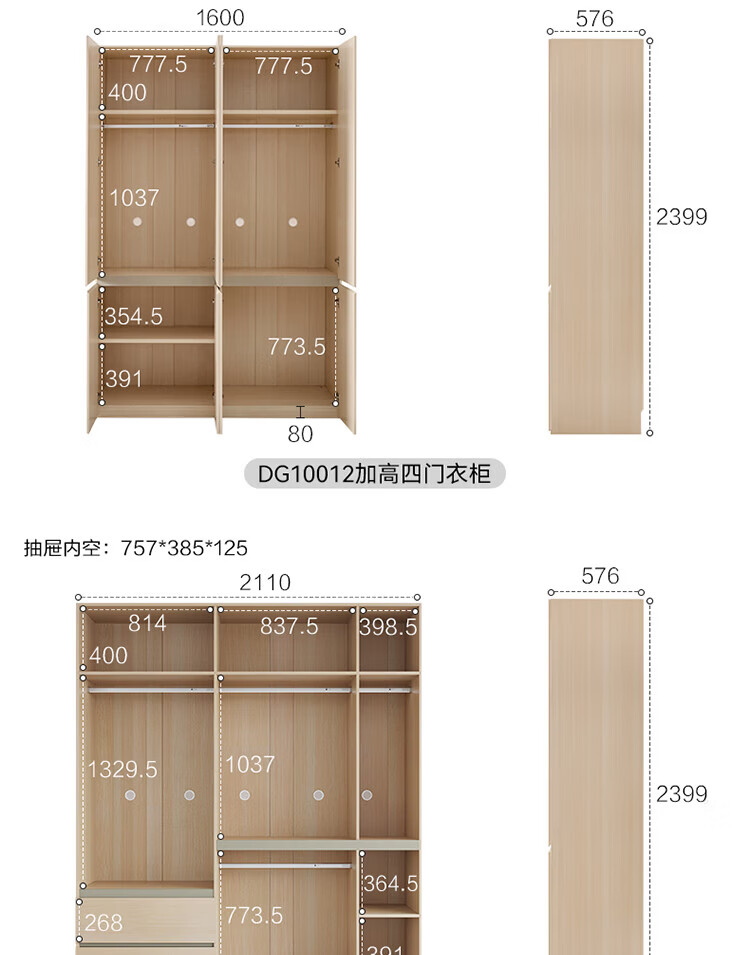 全友(QUANU)【迷瞪清仓货盘】大衣柜组合款主卧室靠墙成品衣橱衣服收纳储物 【分段式】2.11*2.4米五门衣柜