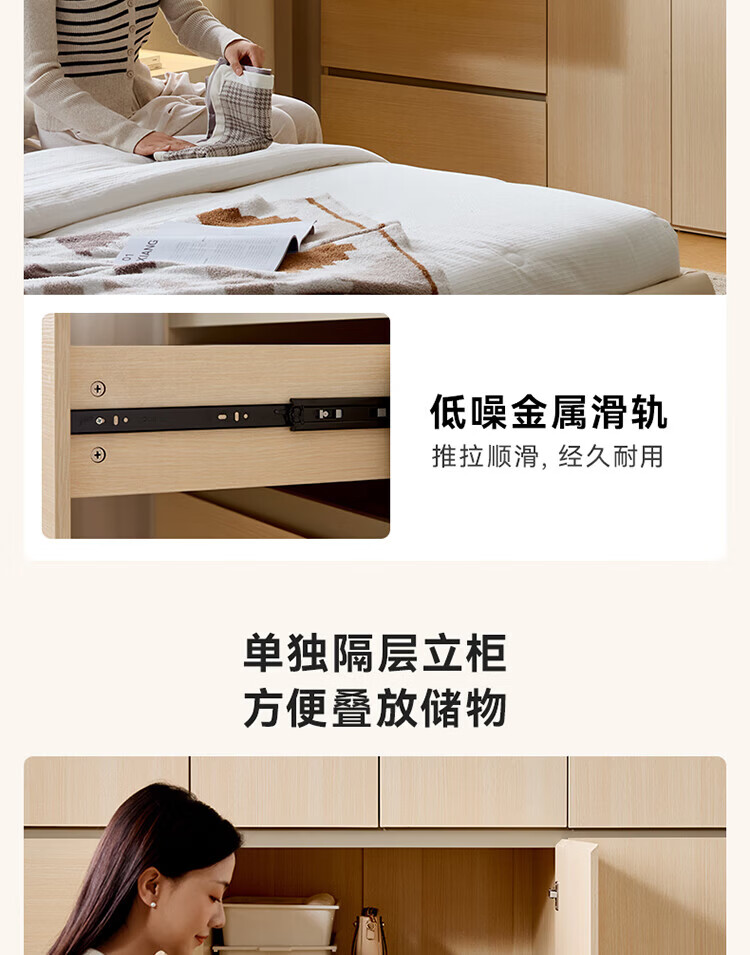 全友家居奶油原木风高脚床小户型家用卧室齐边双人大床床加床垫一整套 【奶油白+原木色】 1.5米x2米 单床