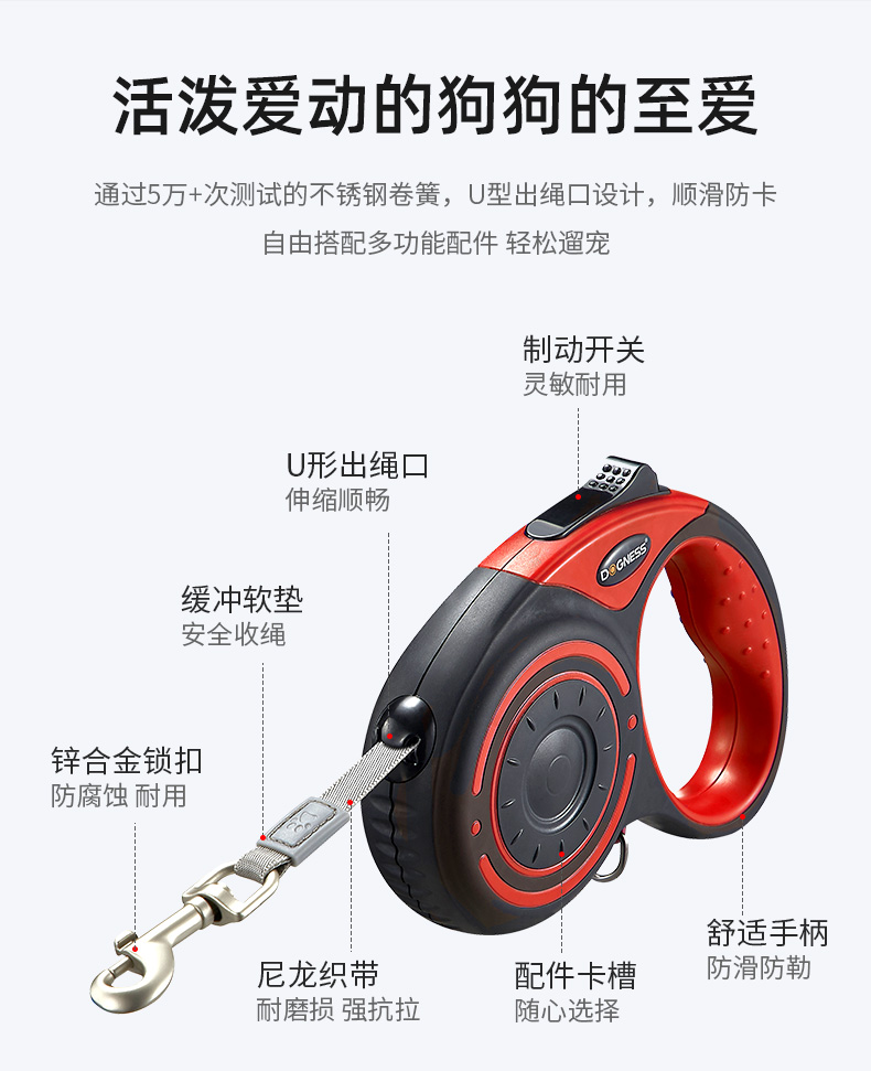多尼斯(DOGNESS)狗狗牵引绳遛狗绳狗链小中型犬自动伸缩防爆冲牵狗器泰迪边牧 5米