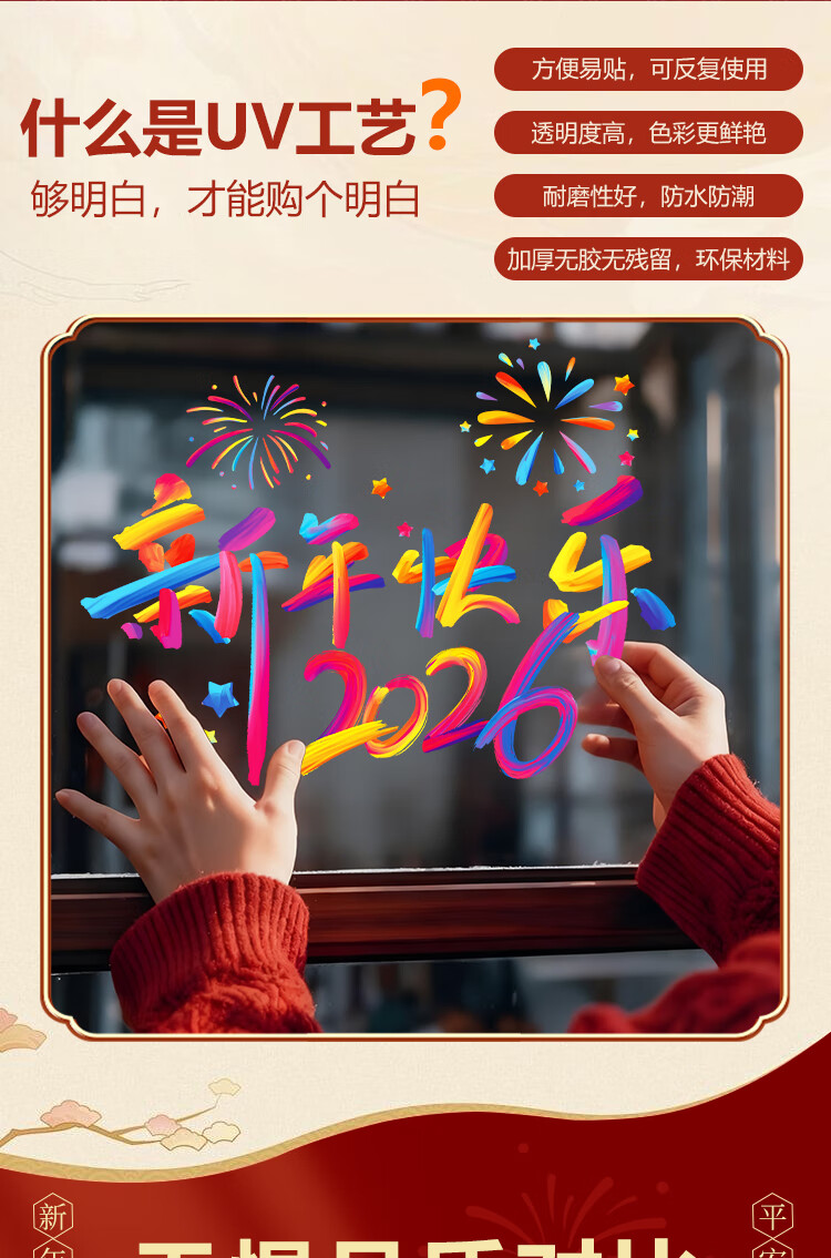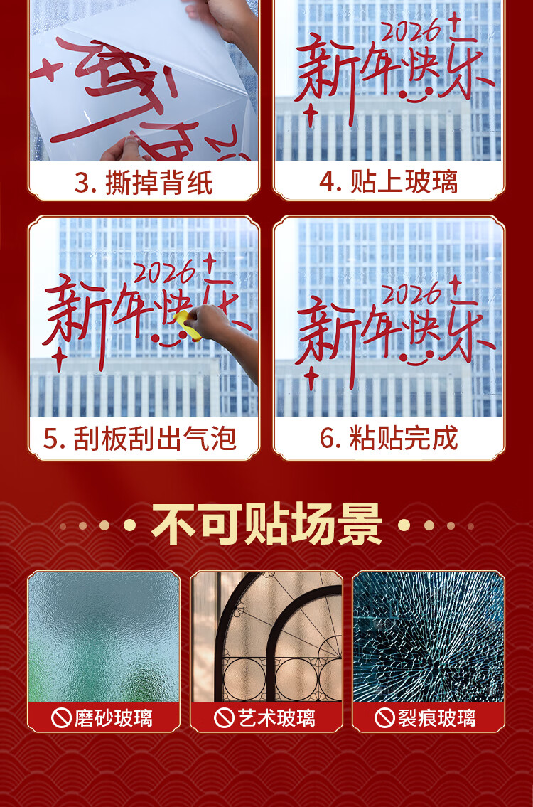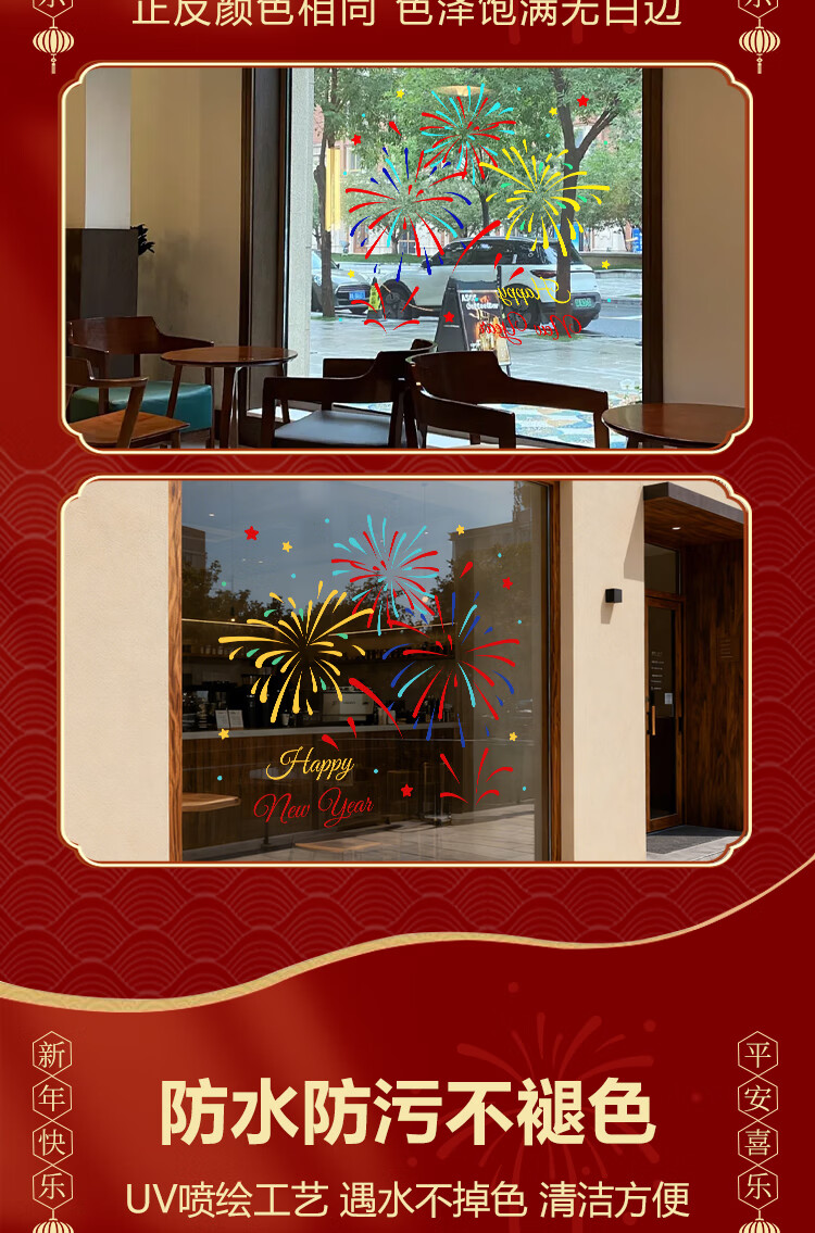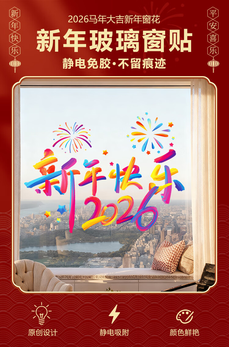 赛瓦凯2026新年春节装饰窗贴马年元旦门店氛围窗花过年布置静电玻璃贴纸 星芒贺岁【静电免胶 双面同色】 80cm×68cm