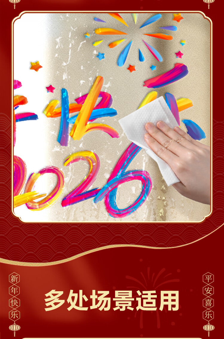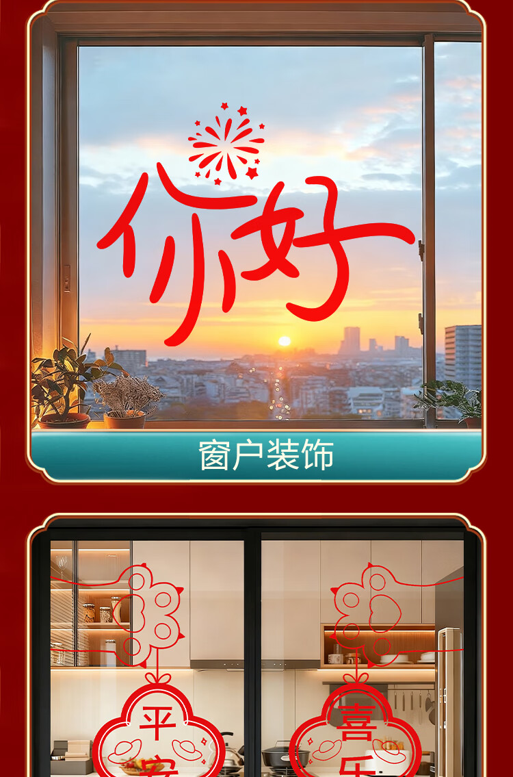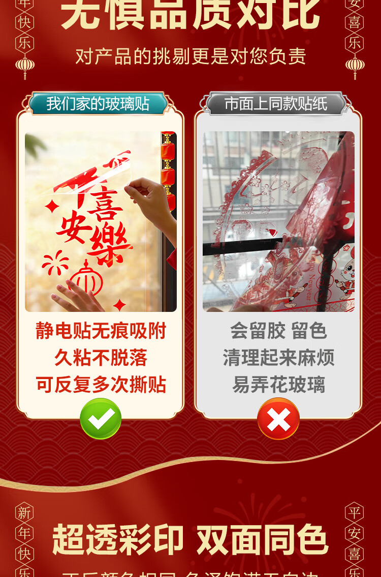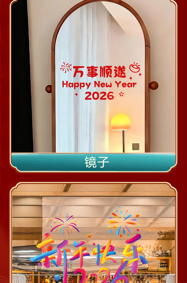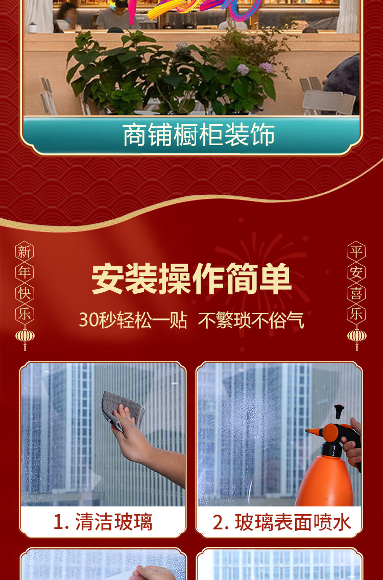 赛瓦凯2026新年春节装饰窗贴马年元旦门店氛围窗花过年布置静电玻璃贴纸 星芒贺岁【静电免胶 双面同色】 80cm×68cm
