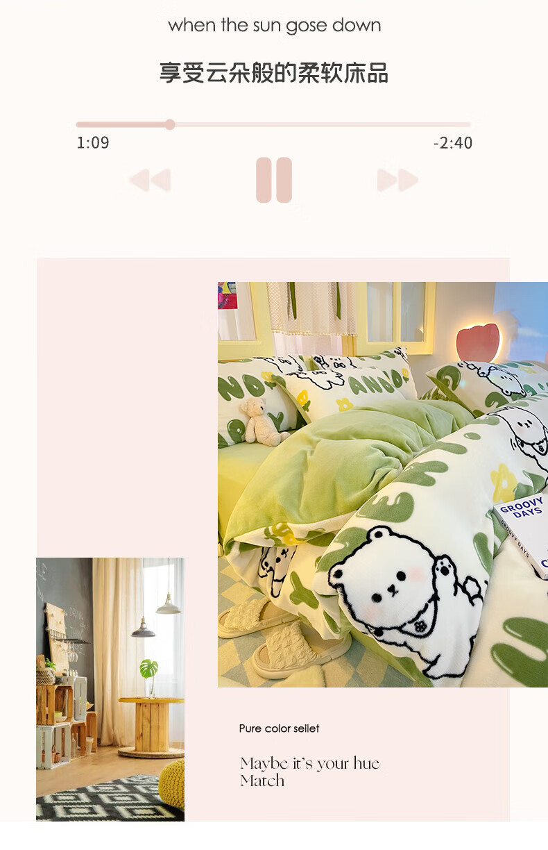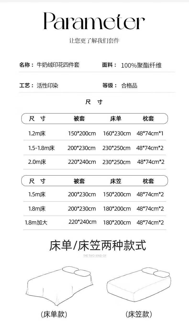 无印良品冬季牛奶绒床上四件套 法兰绒1.8米双面绒床品双人被套200*230cm床单
