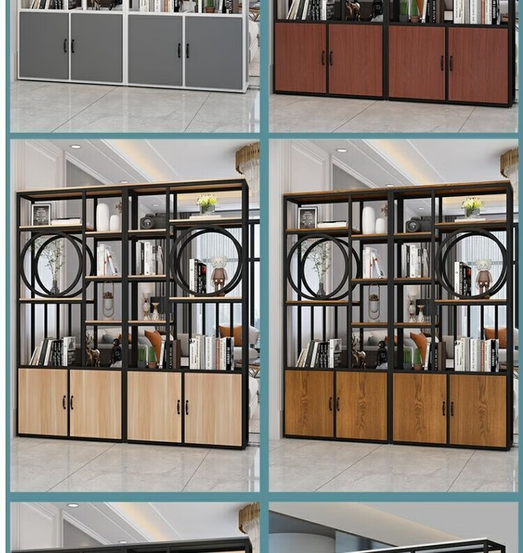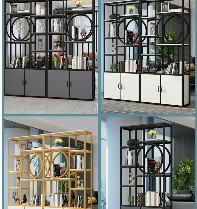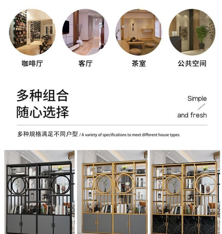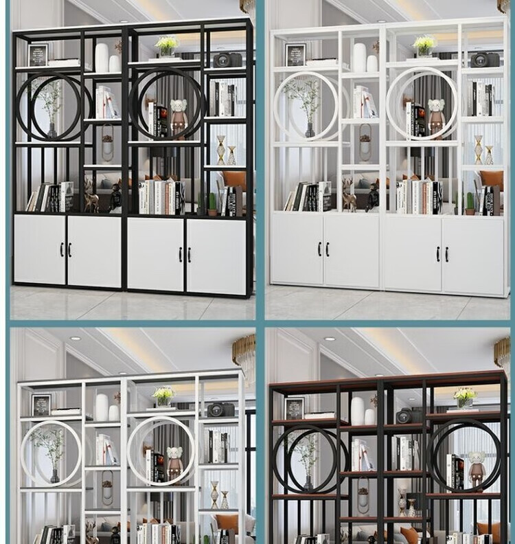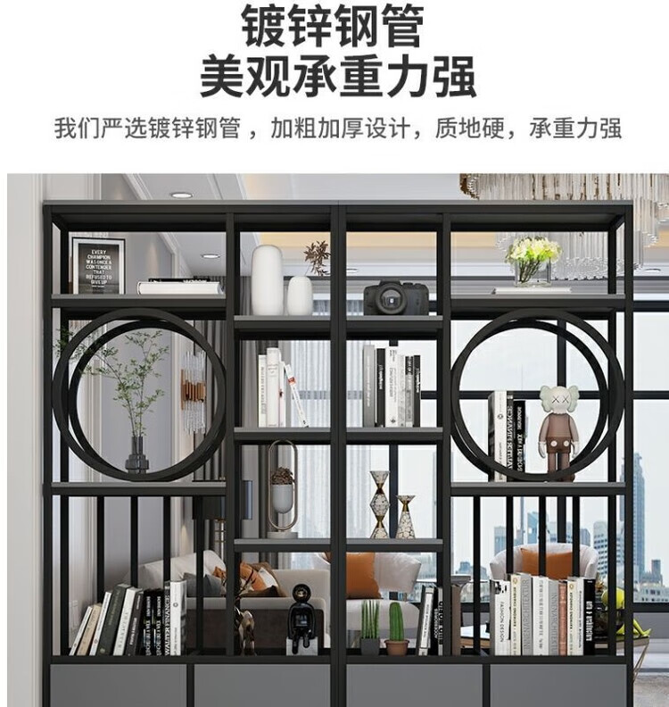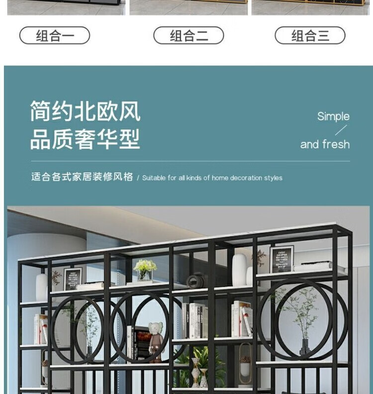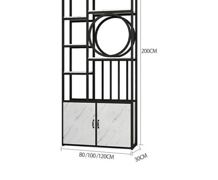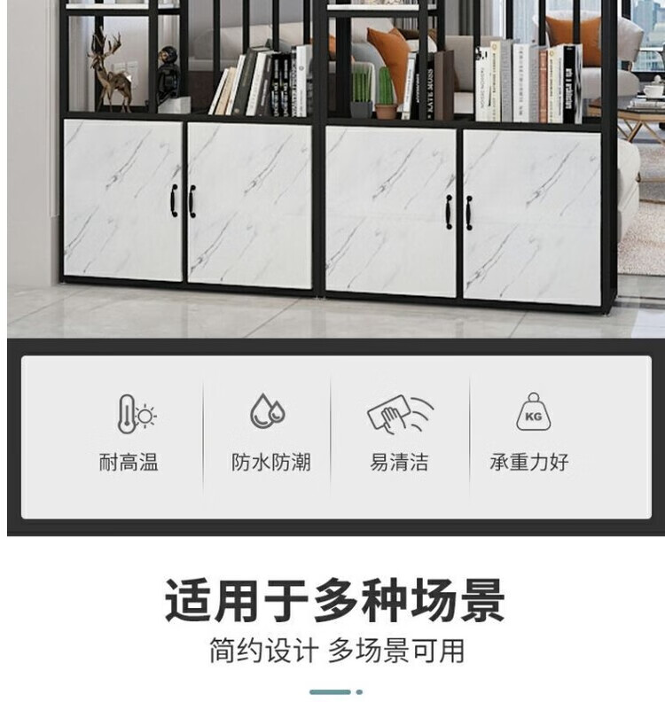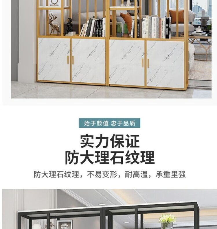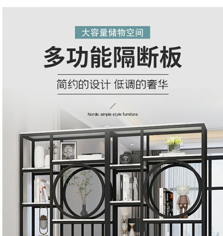 倘然之家屏风隔断客厅遮挡置物架现代装饰架多层镂空收纳书架屏风玄关柜子 黑架+大理石白 【加厚】80长24宽200高即将抢光