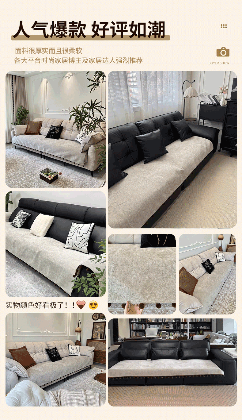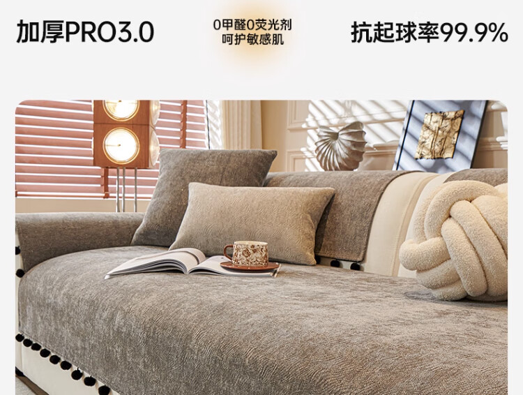 无印良品沙发垫四季通用中古风沙发坐垫高级感沙发座垫防滑皮沙发专用垫 珠眠-灰色【优质雪尼尔 亲肤透气不起球】 110*240cm(大三人位/四人位)