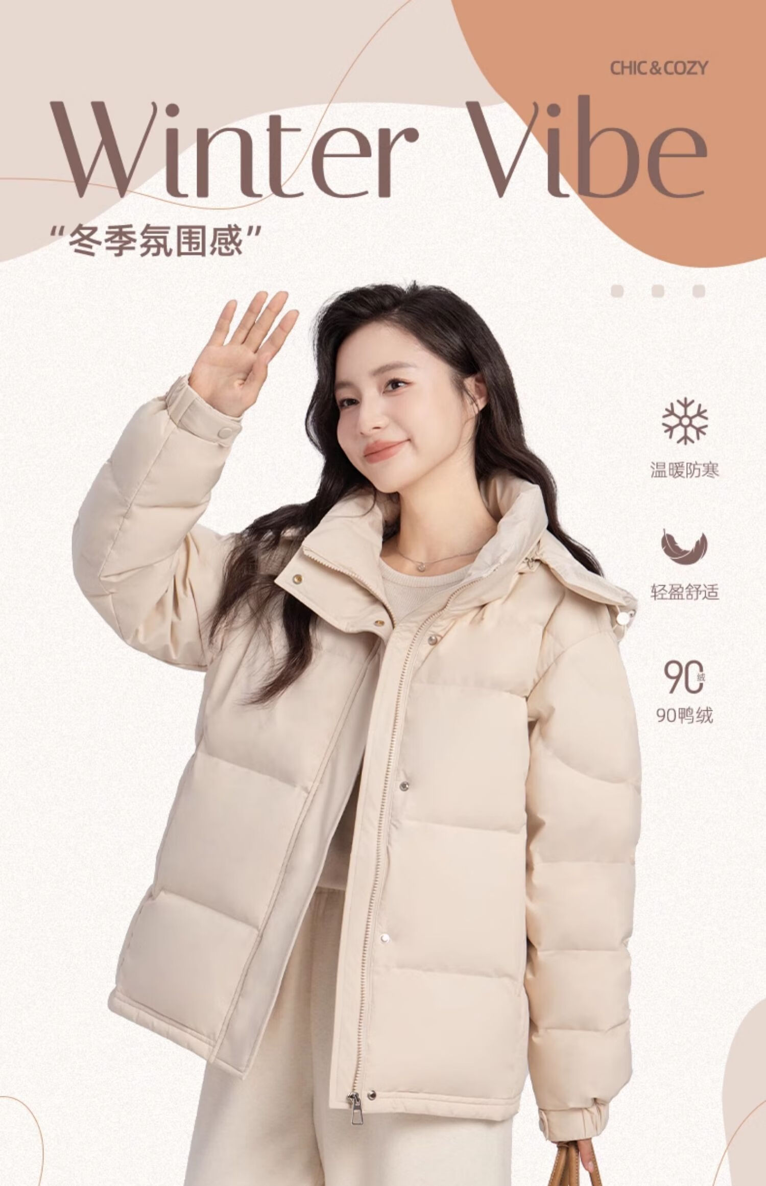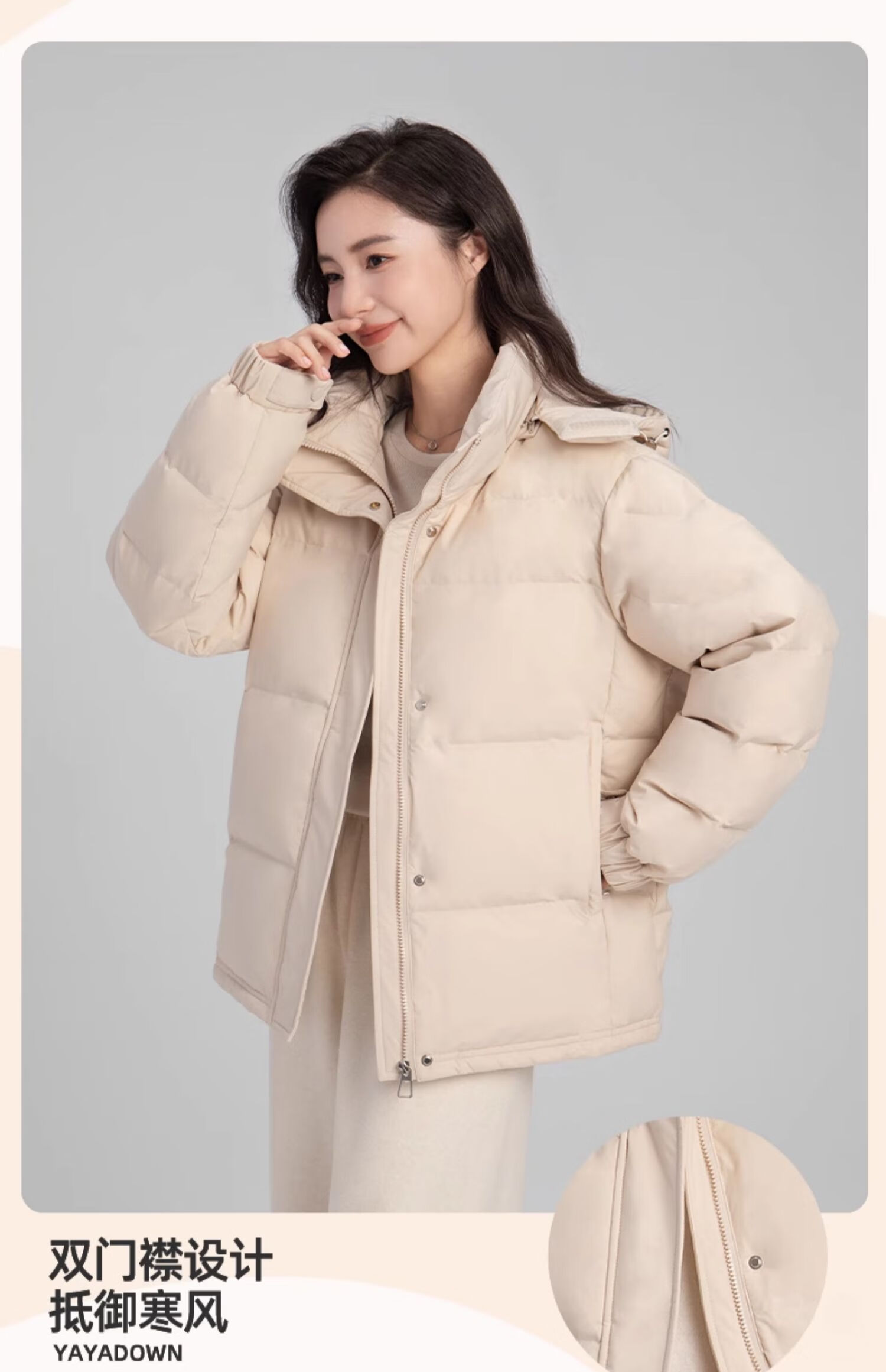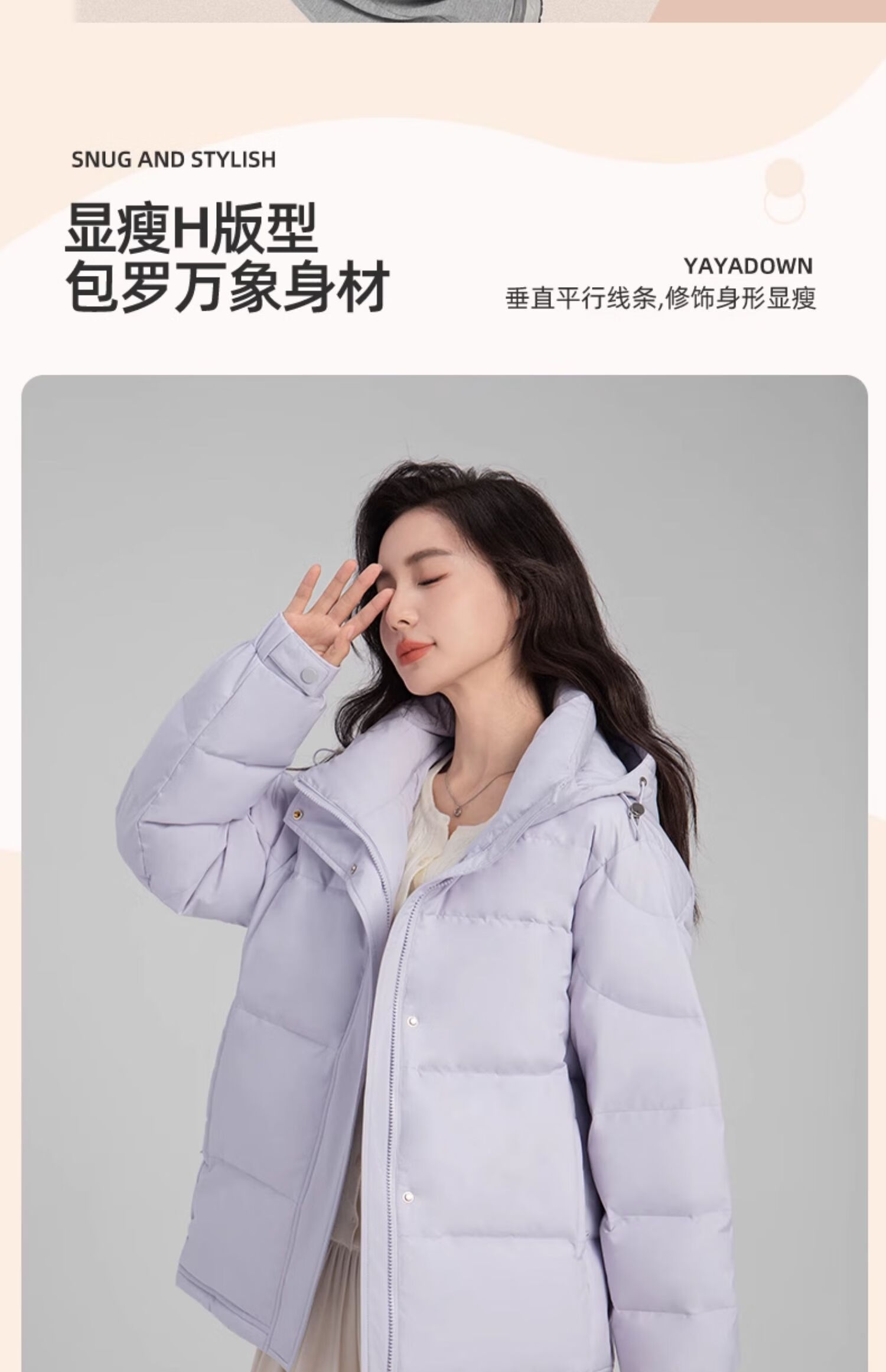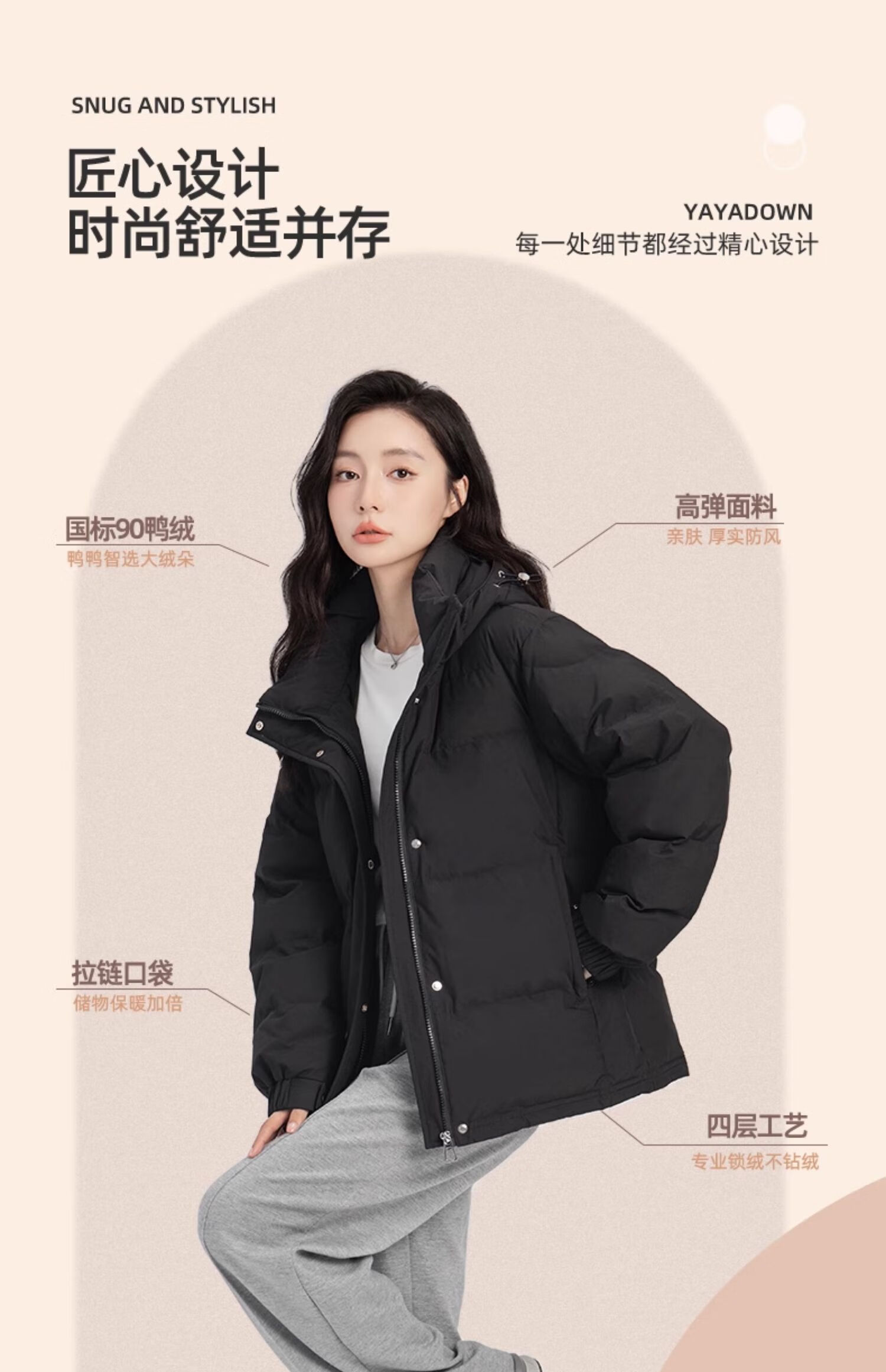 鸭鸭(YAYA)羽绒服女士2024冬季新款短款加厚连帽百搭宽松保暖鸭绒外套DY 黑色 M 160