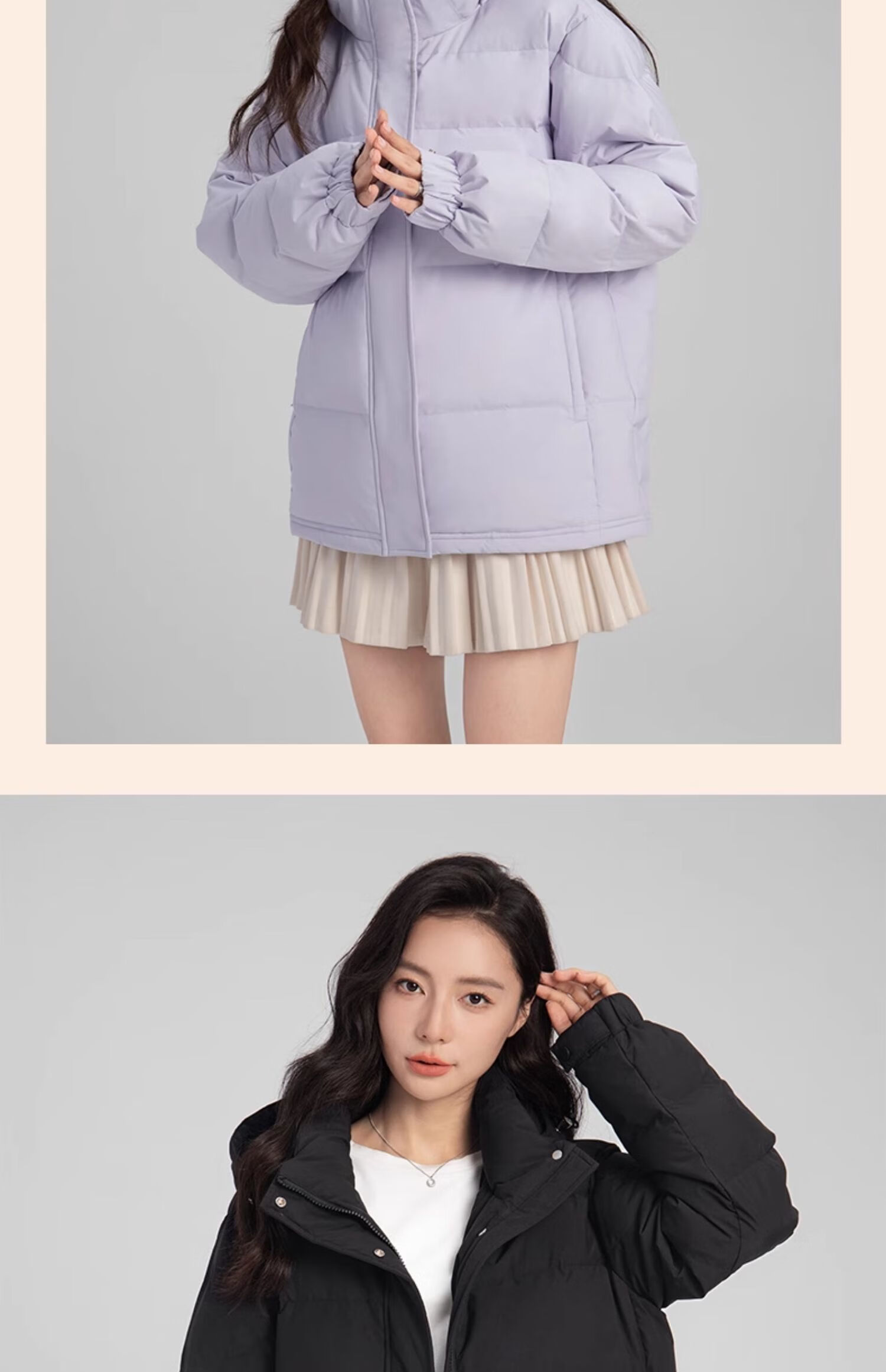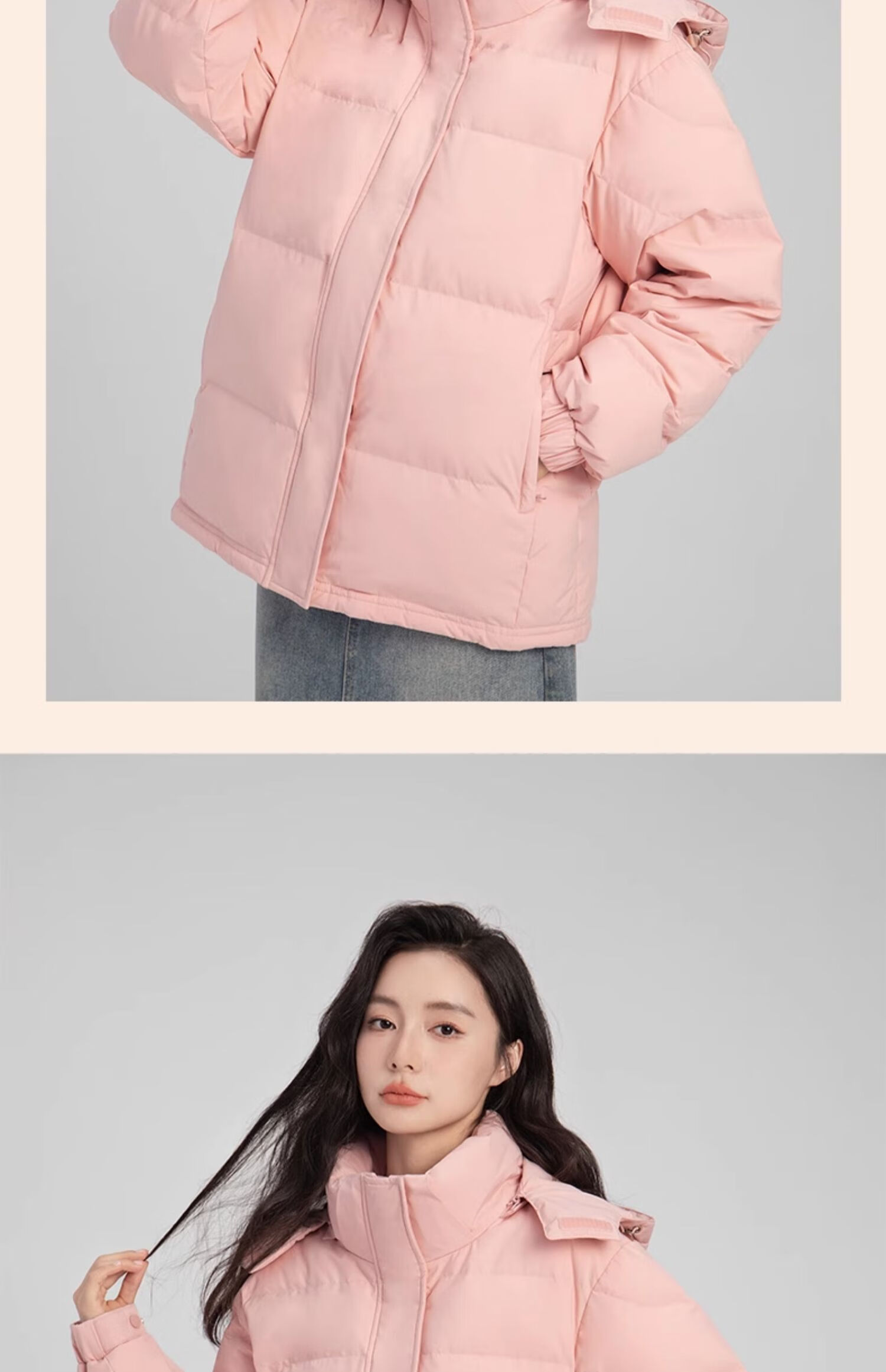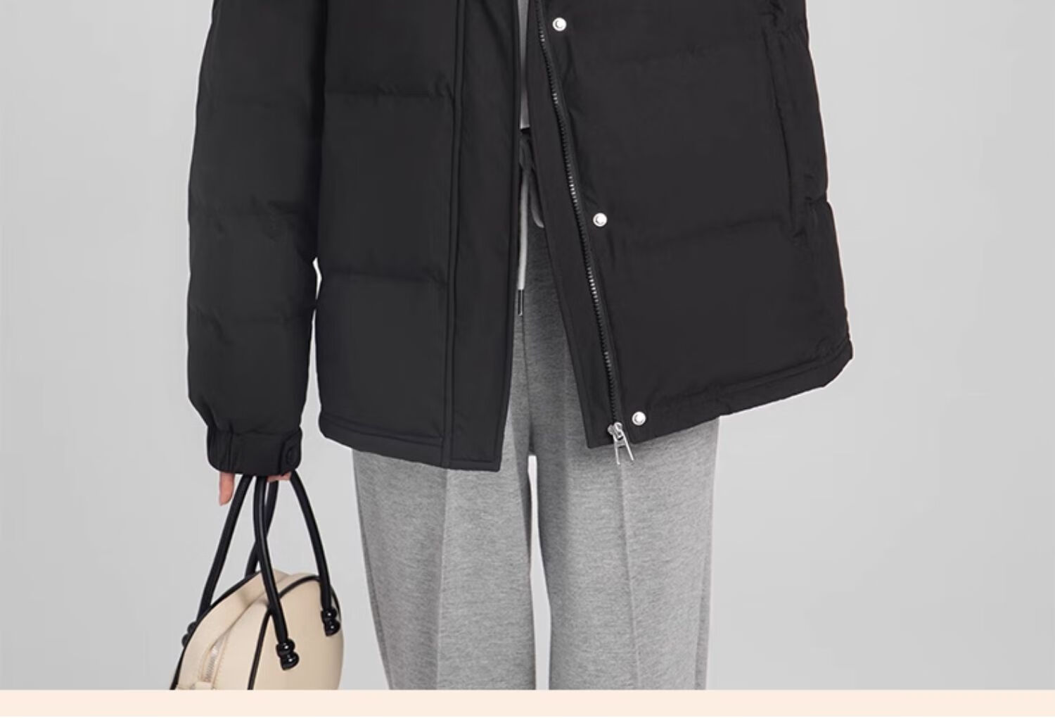 鸭鸭王一博同款轻壳系列羽绒服女短款2025冬季新款简约保暖轻薄外套HY 黑色 2XL