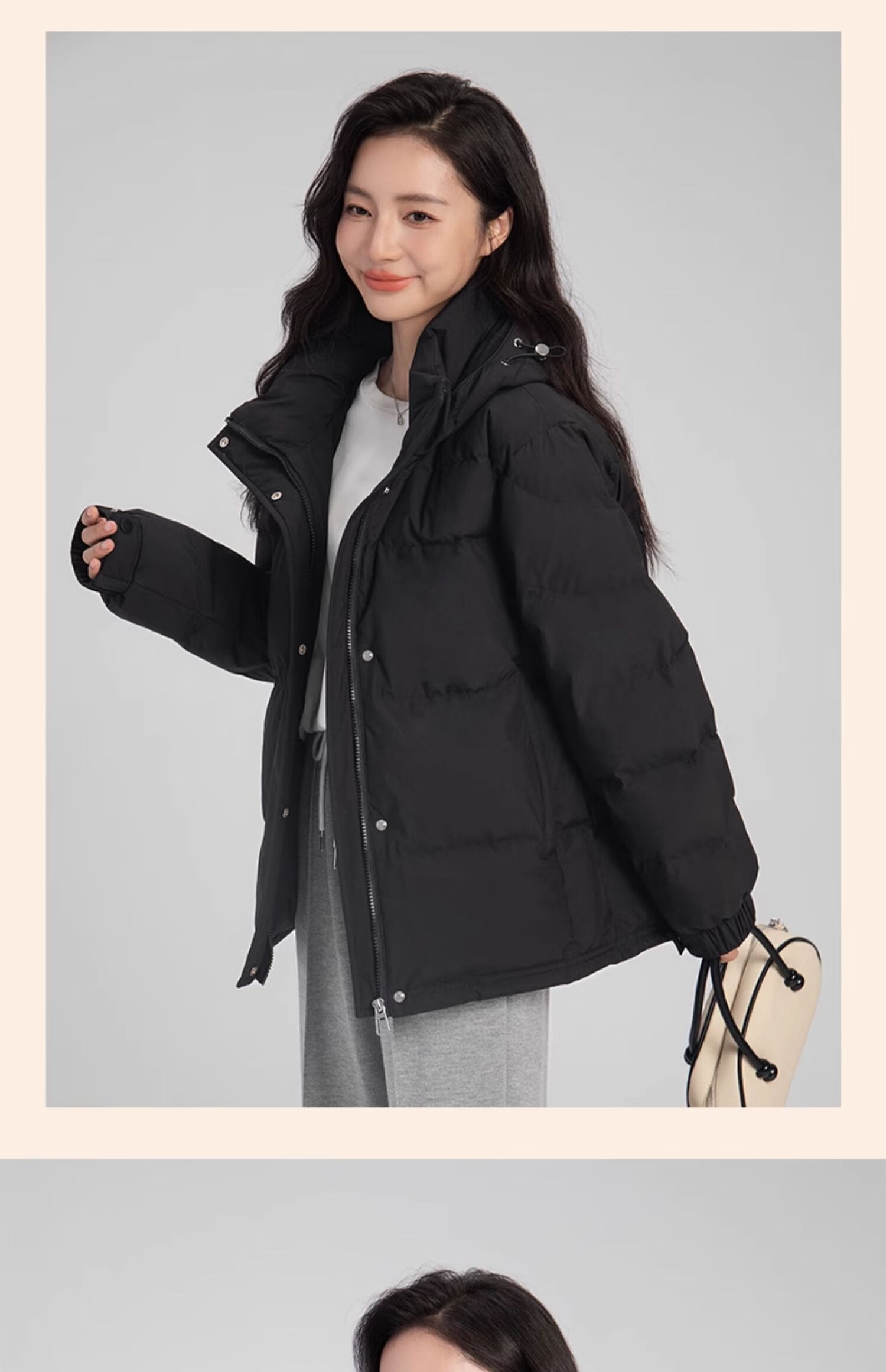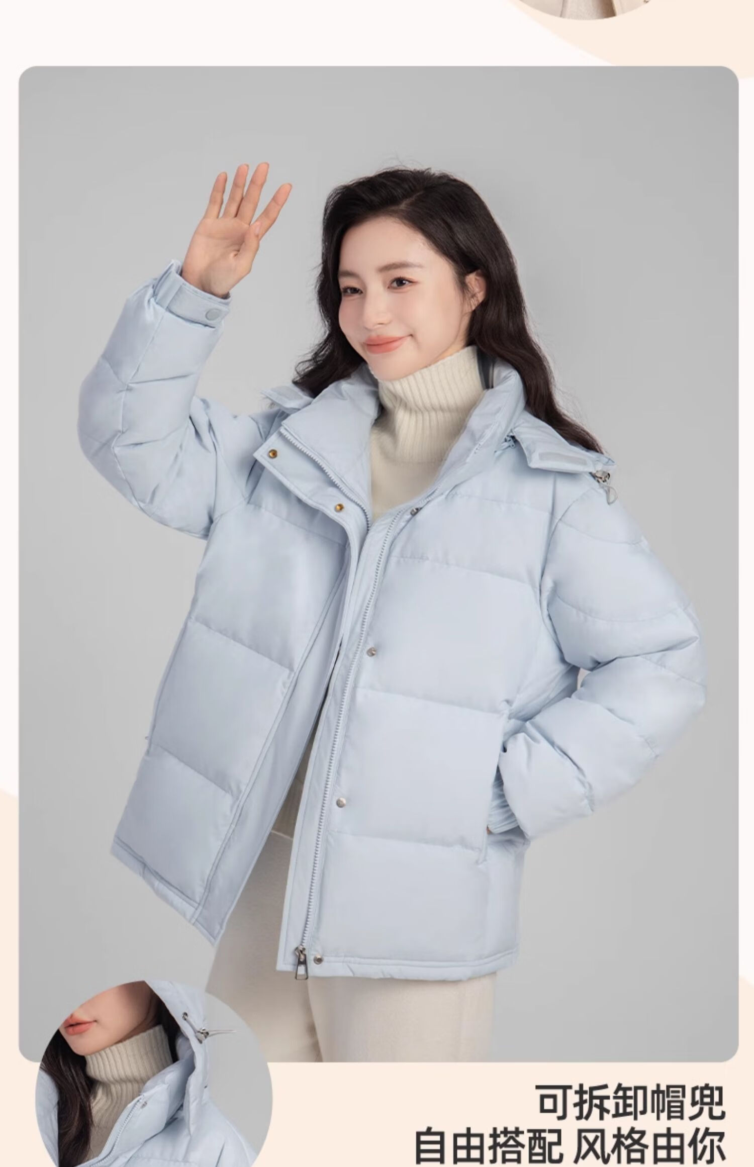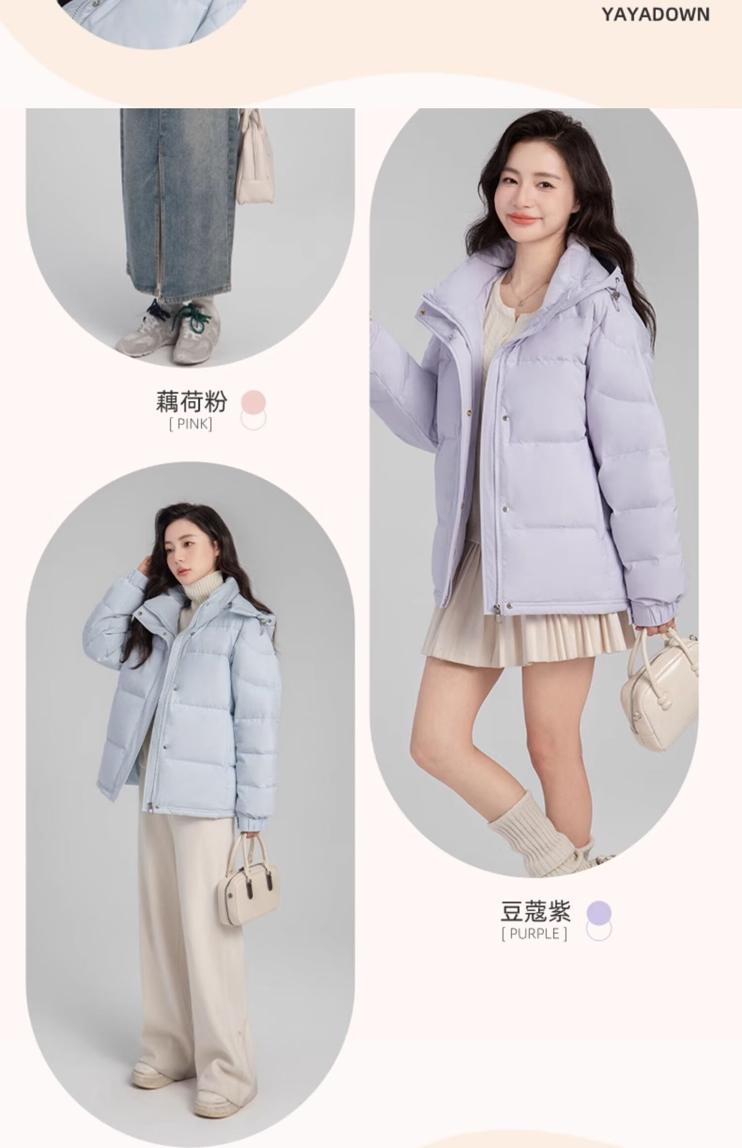 鸭鸭王一博同款轻壳系列羽绒服女短款2025冬季新款简约保暖轻薄外套HY 黑色 2XL