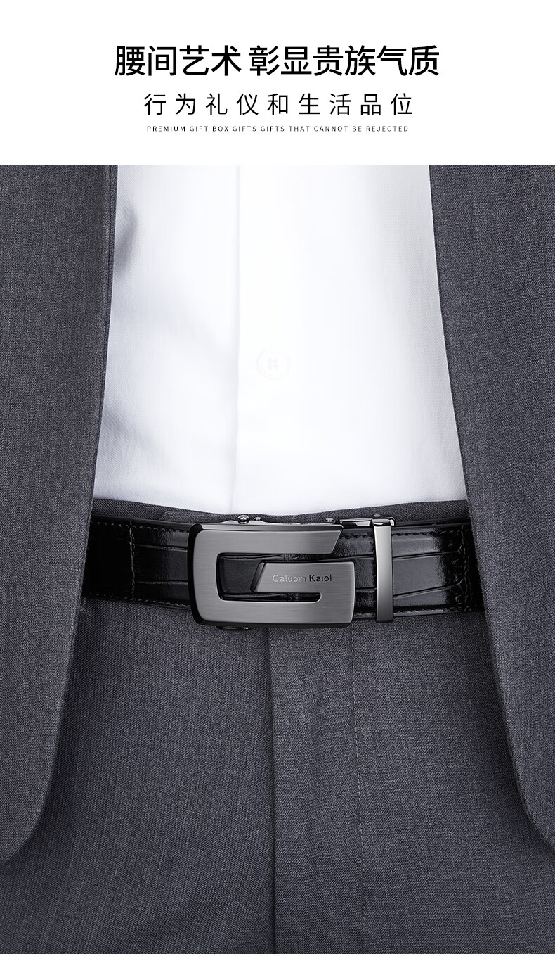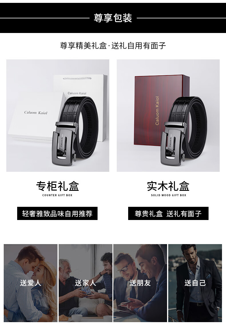 Caluom Kaiol品牌皮带男自动扣轻奢真皮腰带商务男士裤带圣诞礼物送男友 【专柜礼盒】80928 115cm -130cm默认随机(可修剪)