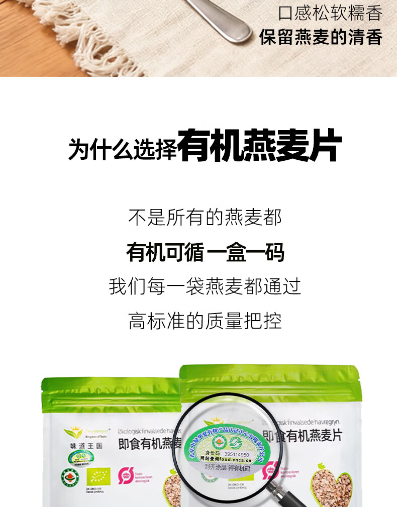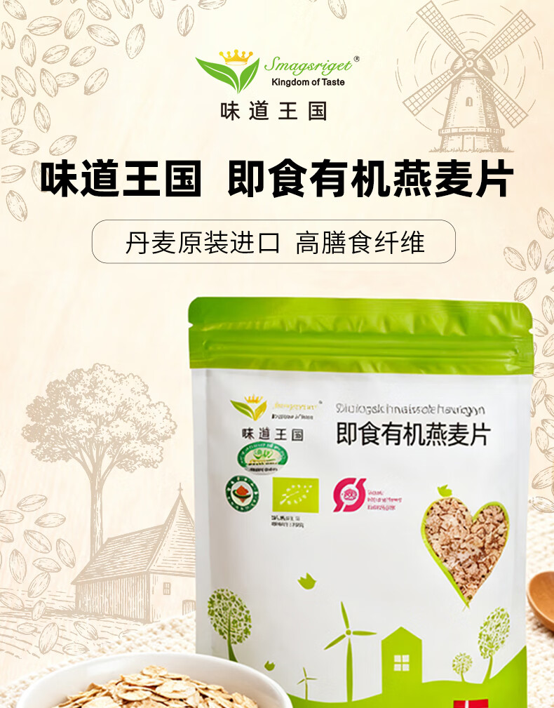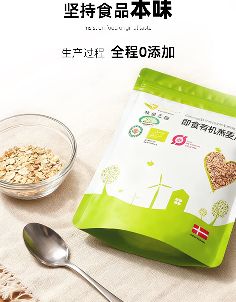 味道王国进口有机燕麦片208g 早餐冲饮即食无添加 富含蛋白质和膳食纤维