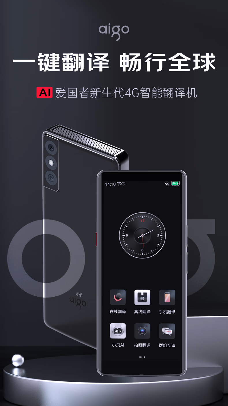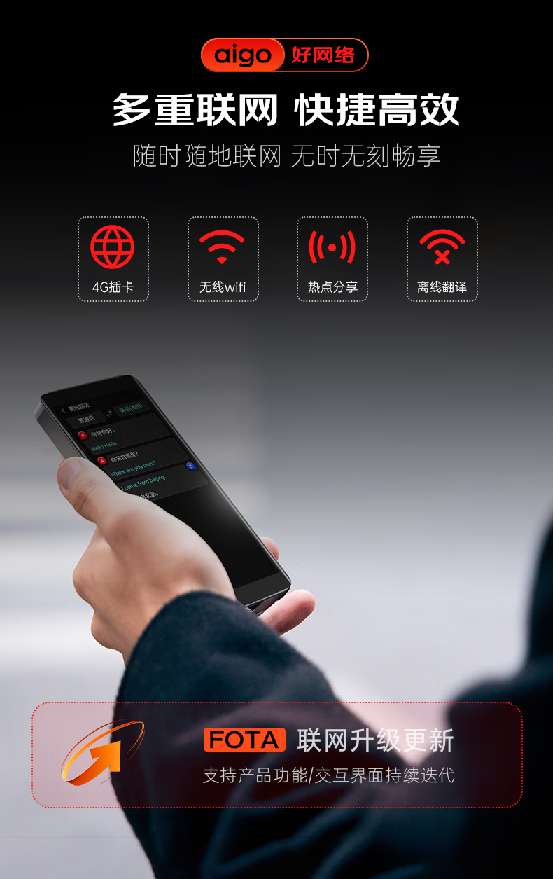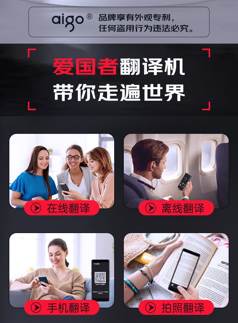 爱国者aigo 4G翻译机同声传译出国翻译机多语种离线拍照翻译智能翻译器翻译出国旅游口语实时翻译 黑色