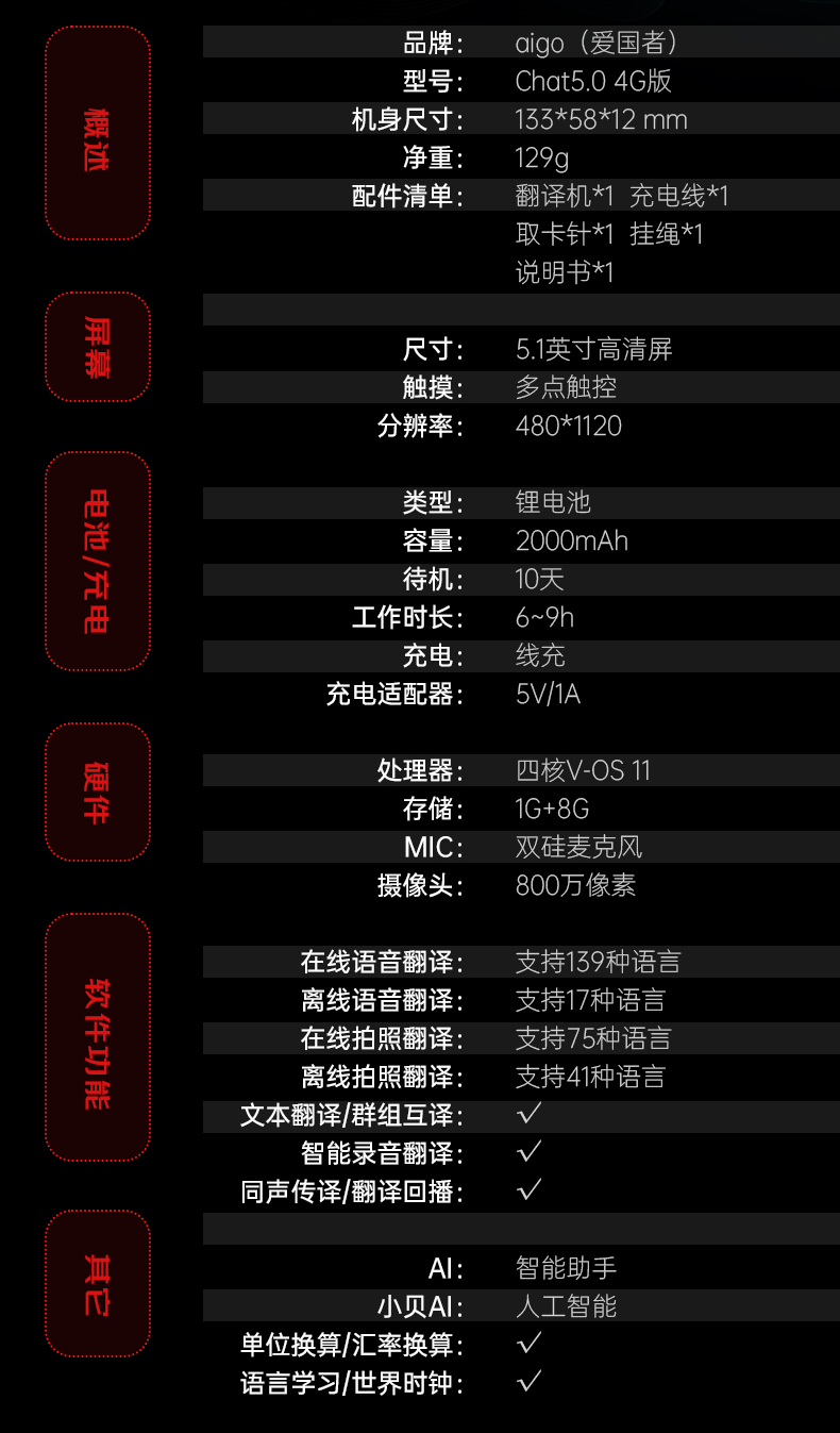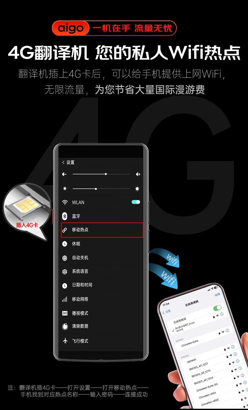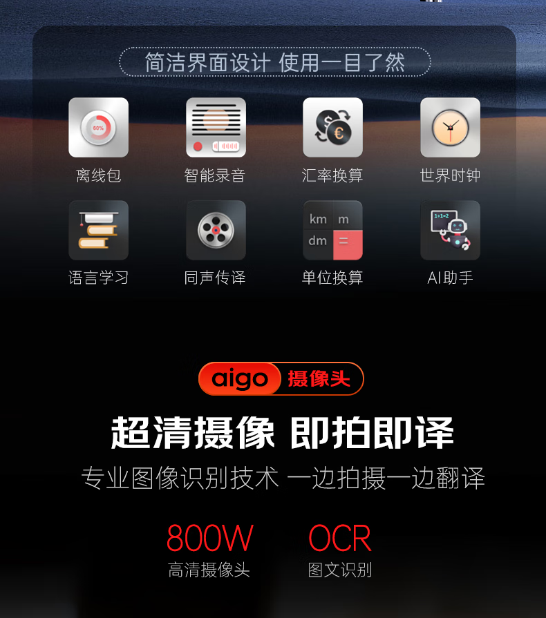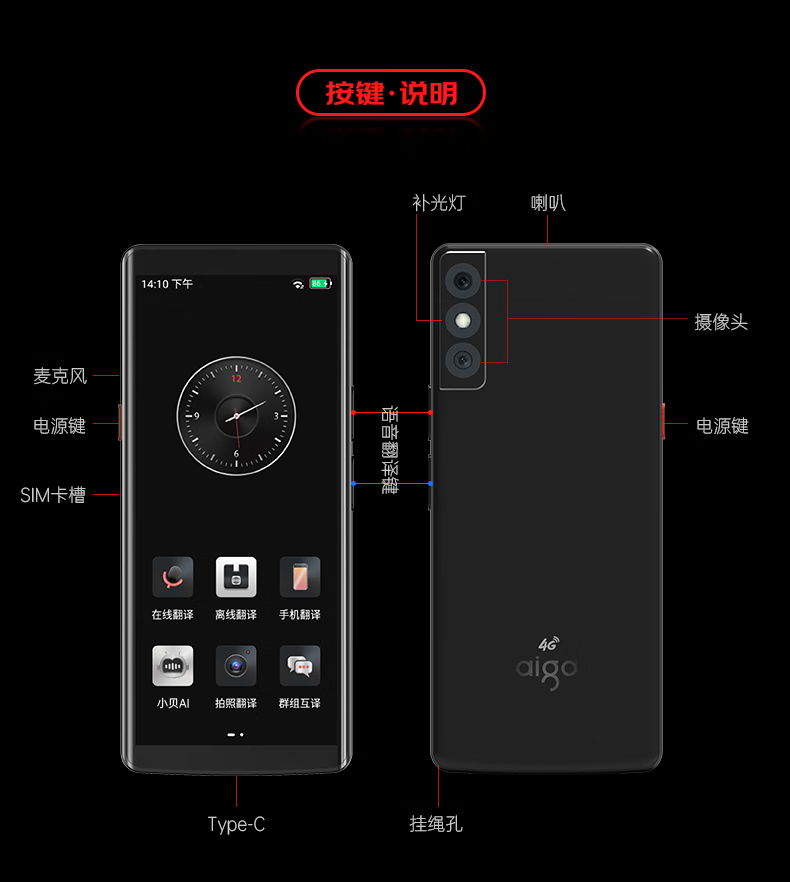 爱国者aigo 4G翻译机同声传译出国翻译机多语种离线拍照翻译智能翻译器翻译出国旅游口语实时翻译 黑色