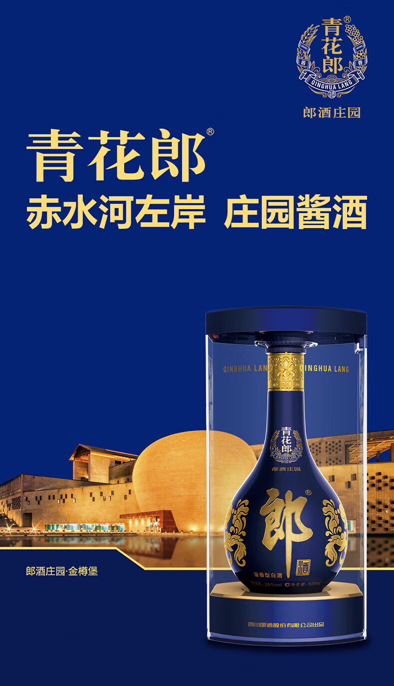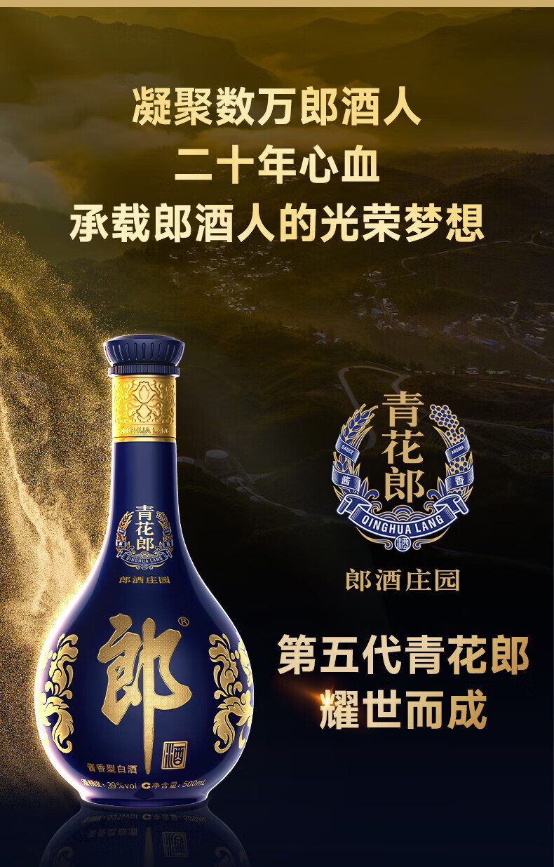 郎酒青花郎 第5代 白酒 酱酒 39度 500ml*6 整箱装 低度白酒 低而不淡