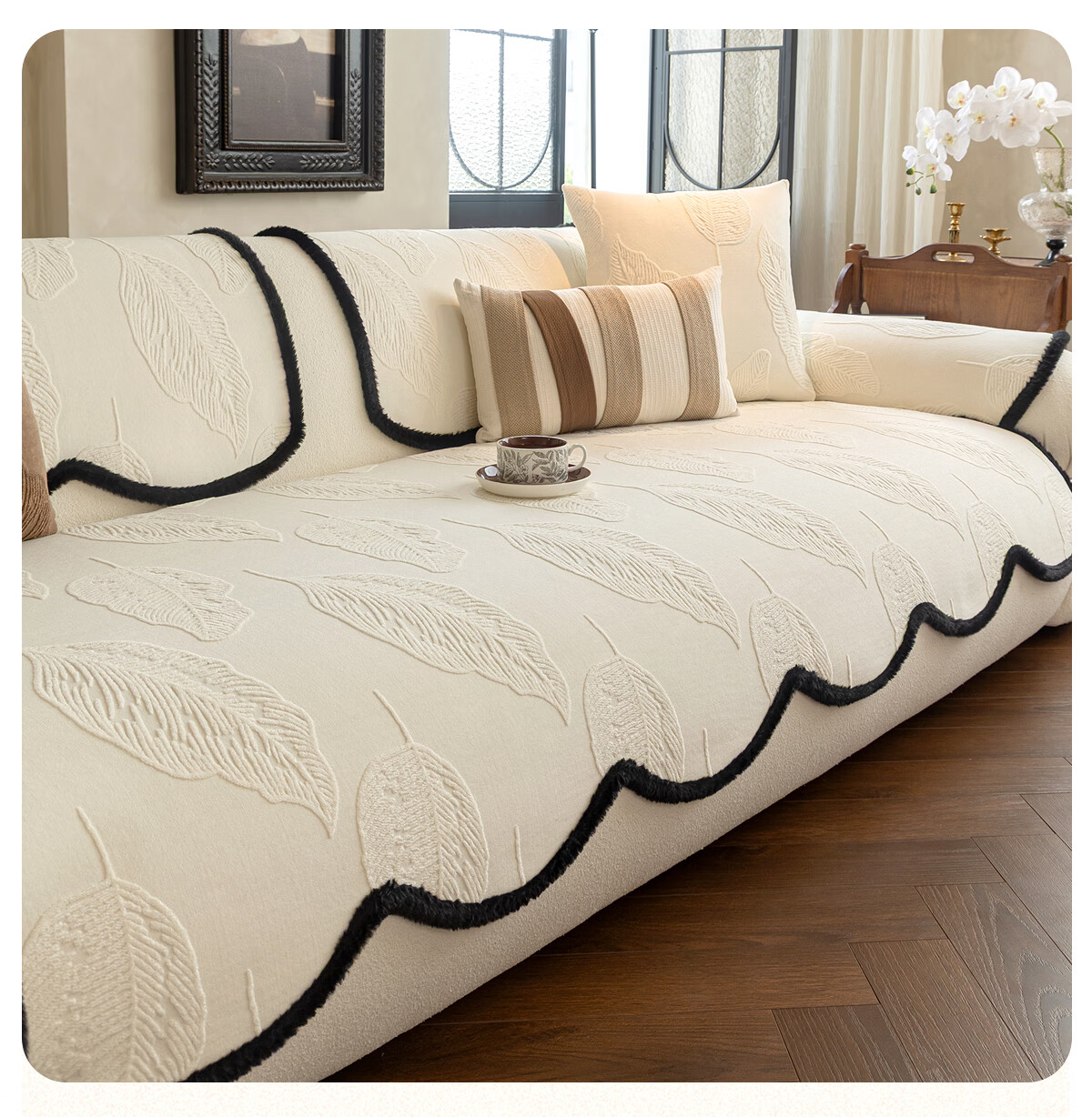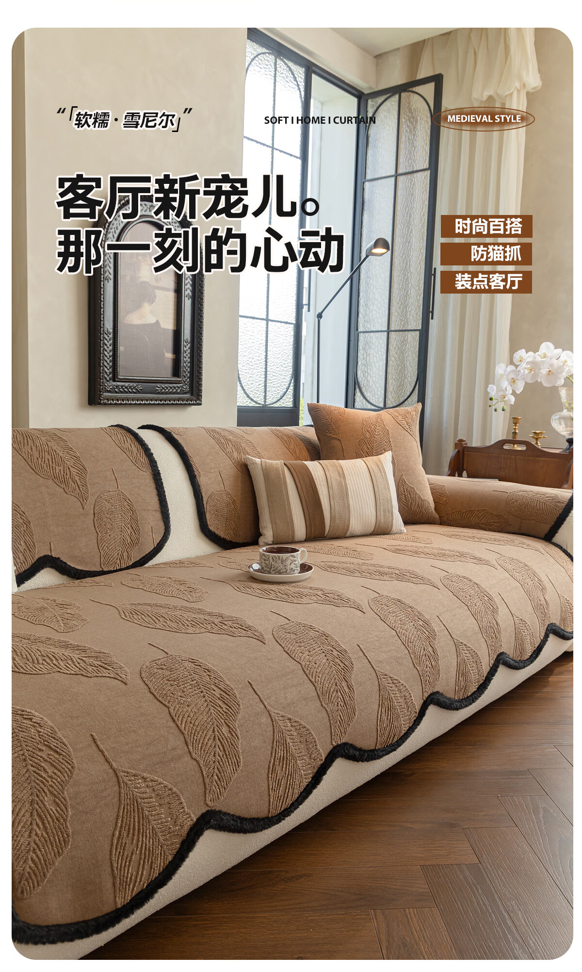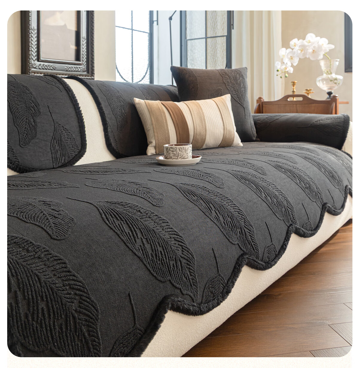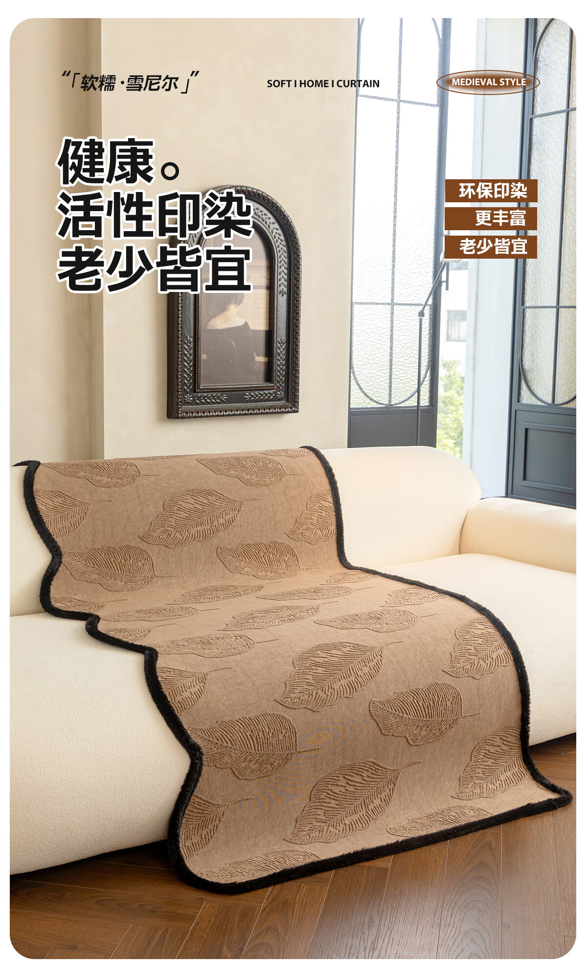缔卓怡中古风异形沙发垫四季通用防猫抓坐垫套罩高级感皮沙发防滑盖布巾 异形千叶-黑色 70cm*70cm