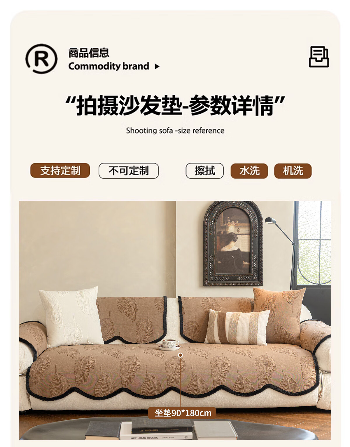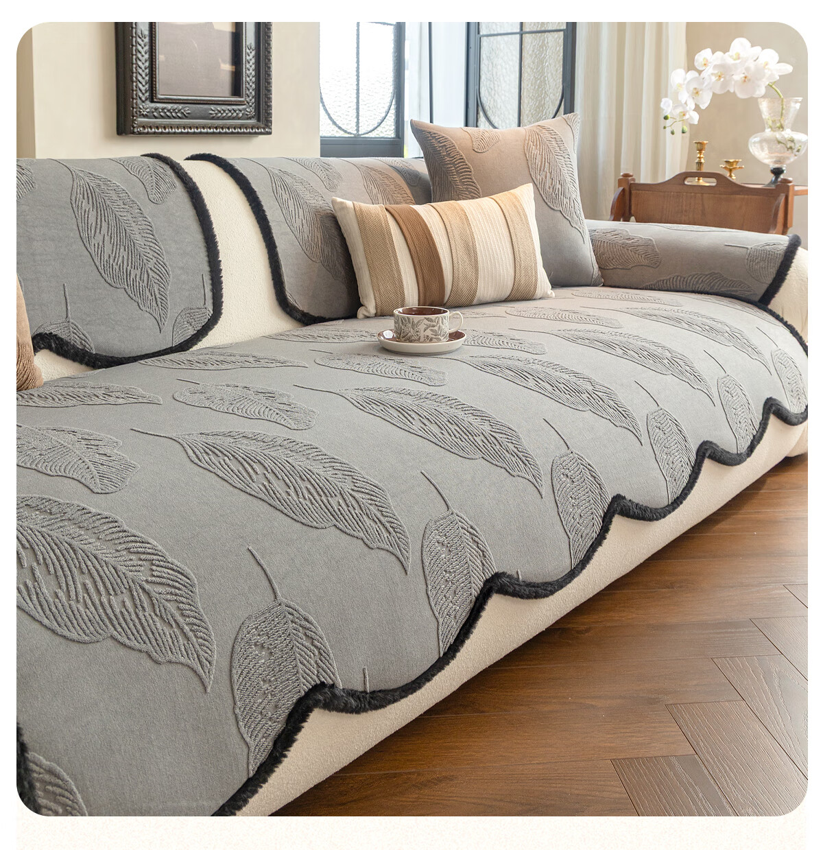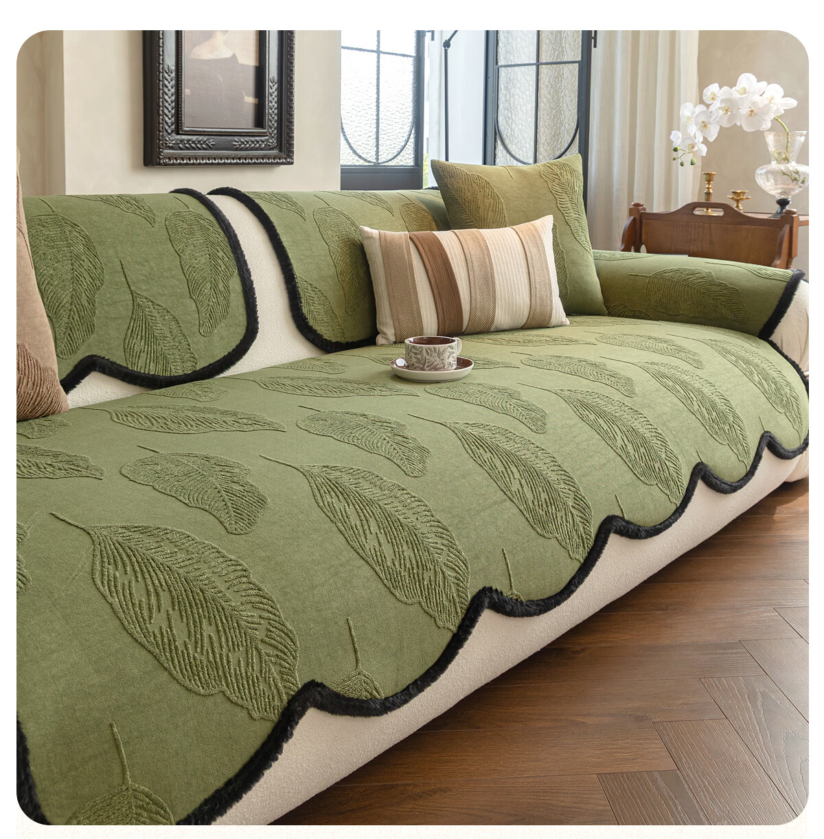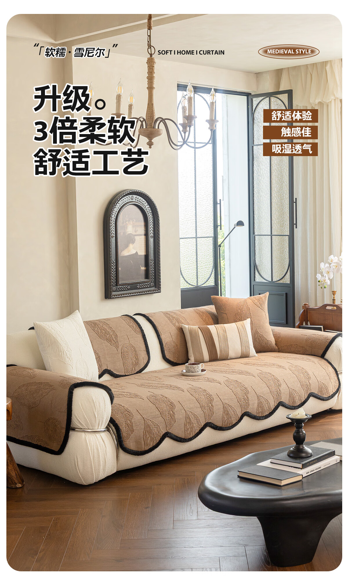 缔卓怡中古风异形沙发垫四季通用防猫抓坐垫套罩高级感皮沙发防滑盖布巾 异形千叶-黑色 70cm*70cm