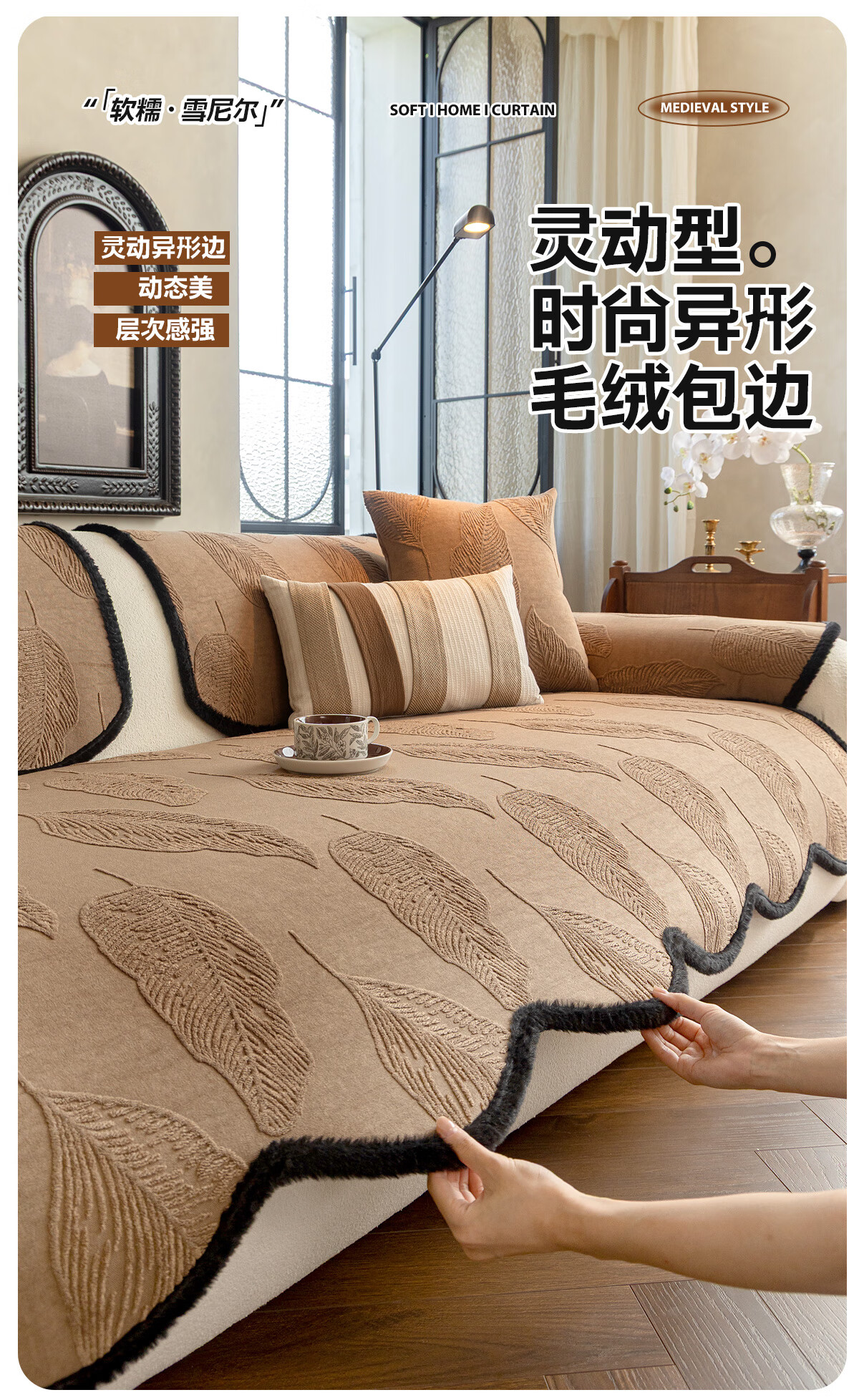 无印良品兔毛绒沙发垫冬季2025新款加厚毛绒防滑奶油风不掉毛皮沙发坐垫子 瑞比特-白色 【冬季毛绒 防静电】 90*240cm (三人位/小四人位)