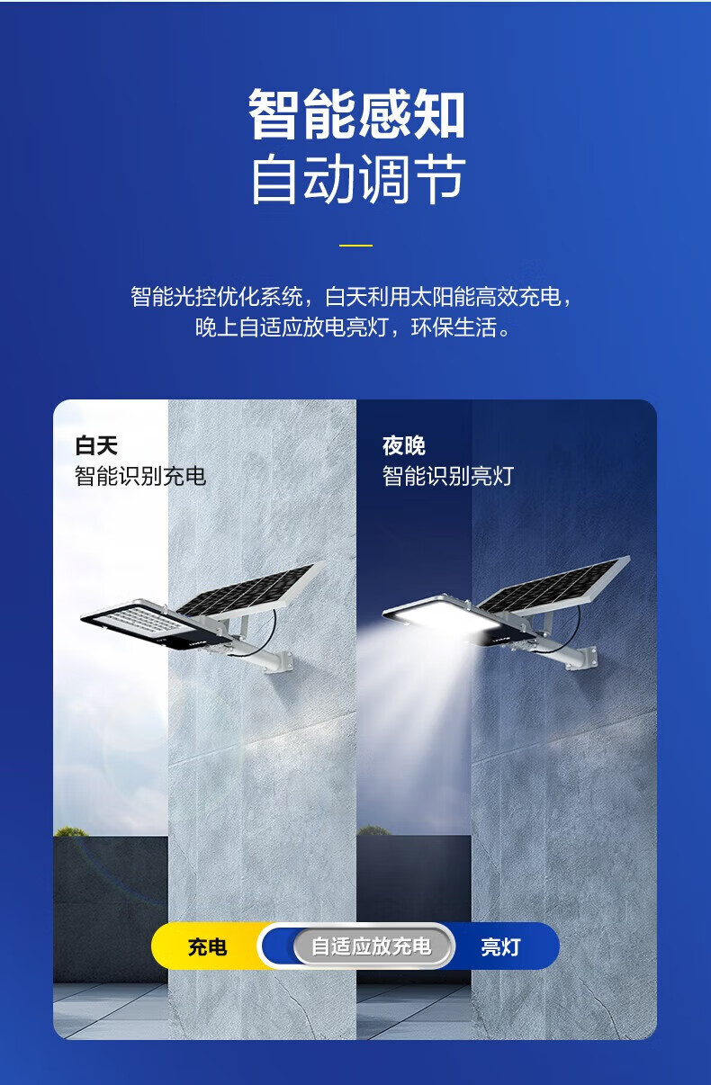振牛太阳能照明灯家用室内客厅阳台楼道灯室外超亮智能感应户外庭院灯 2000W型 6000毫安 智能光控+遥控定时+5米线