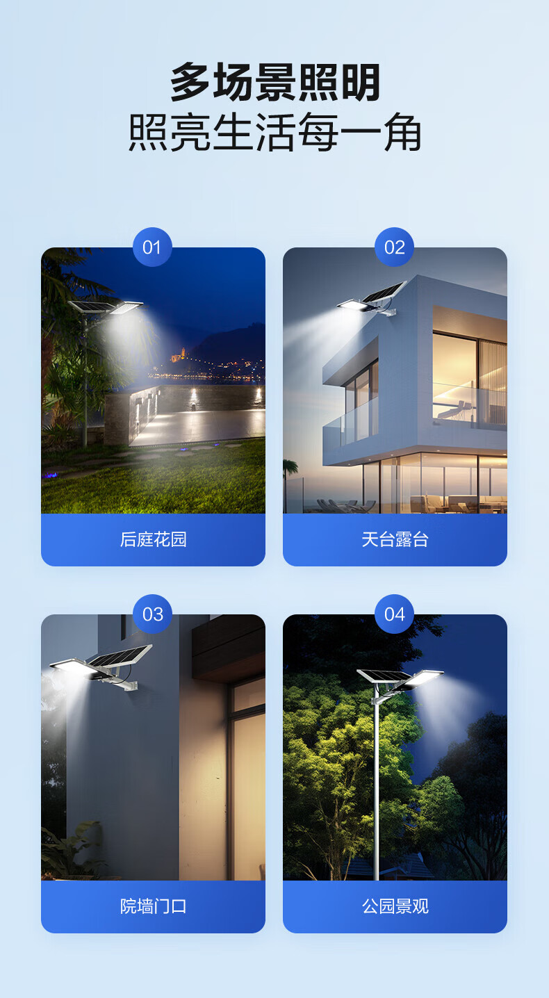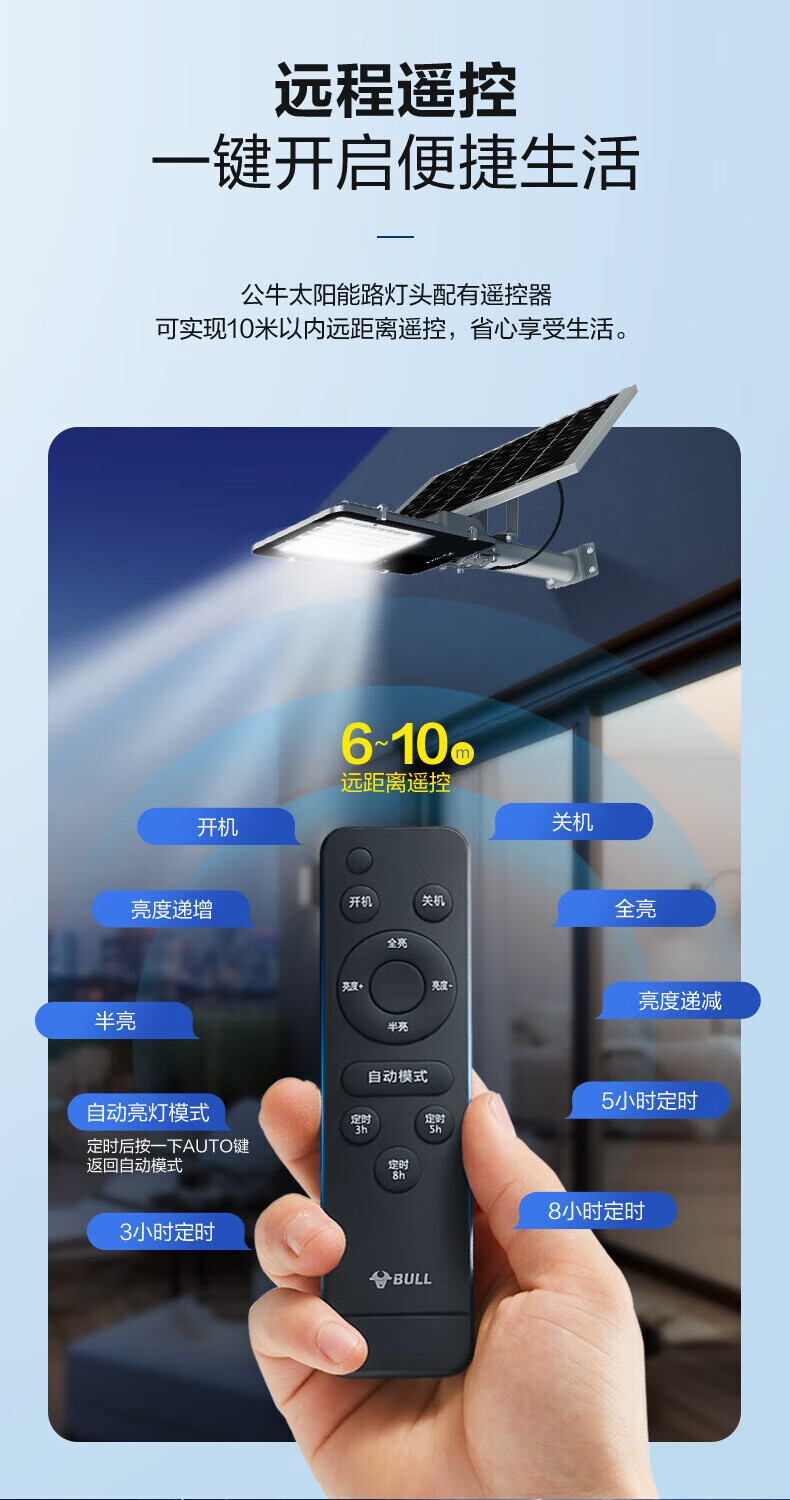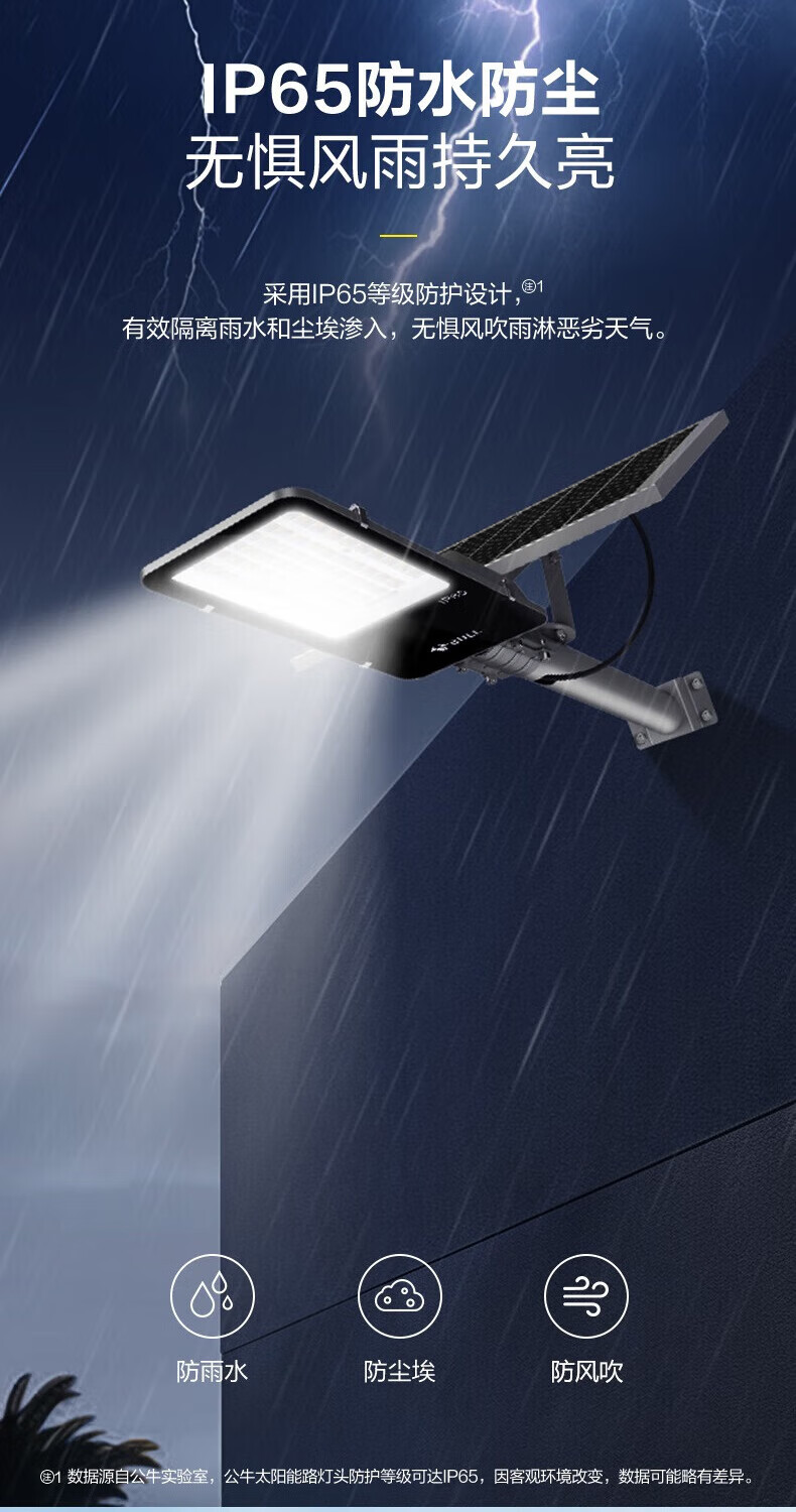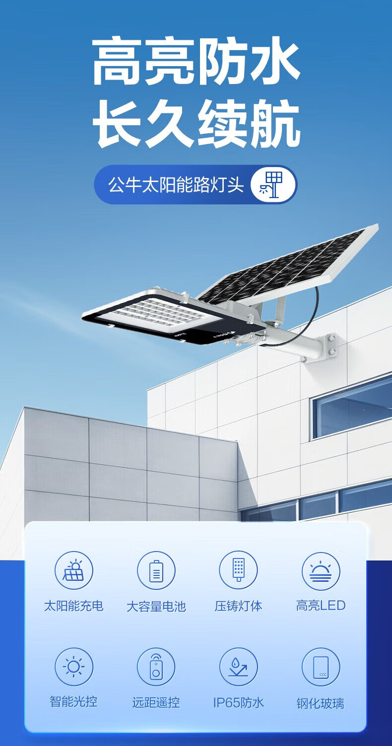 公牛太阳能户外照明灯防水小区小镇led路灯家用室外灯庭院灯 标亮120W+光感+遥控+照约30平