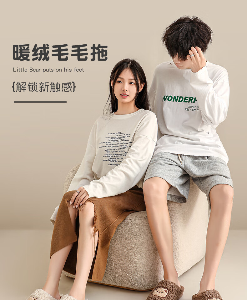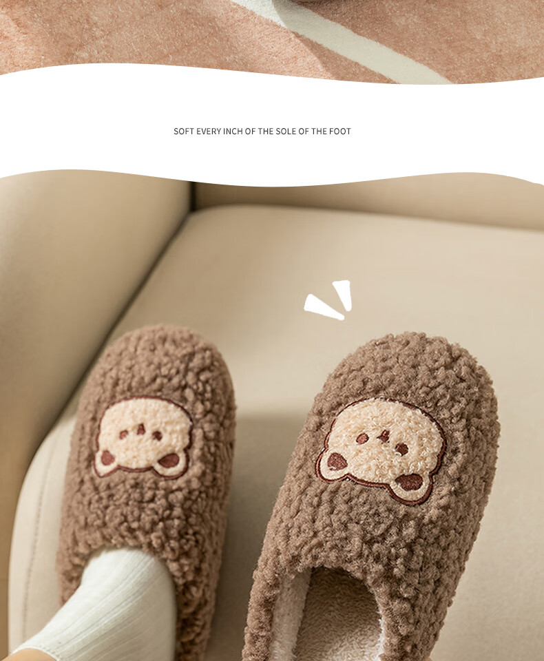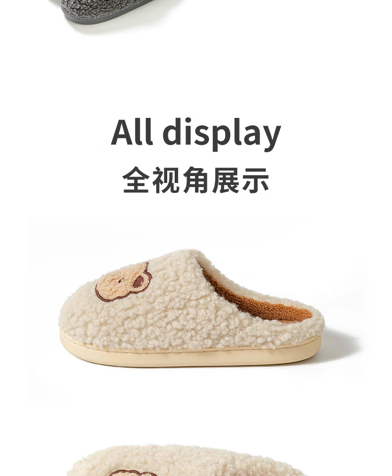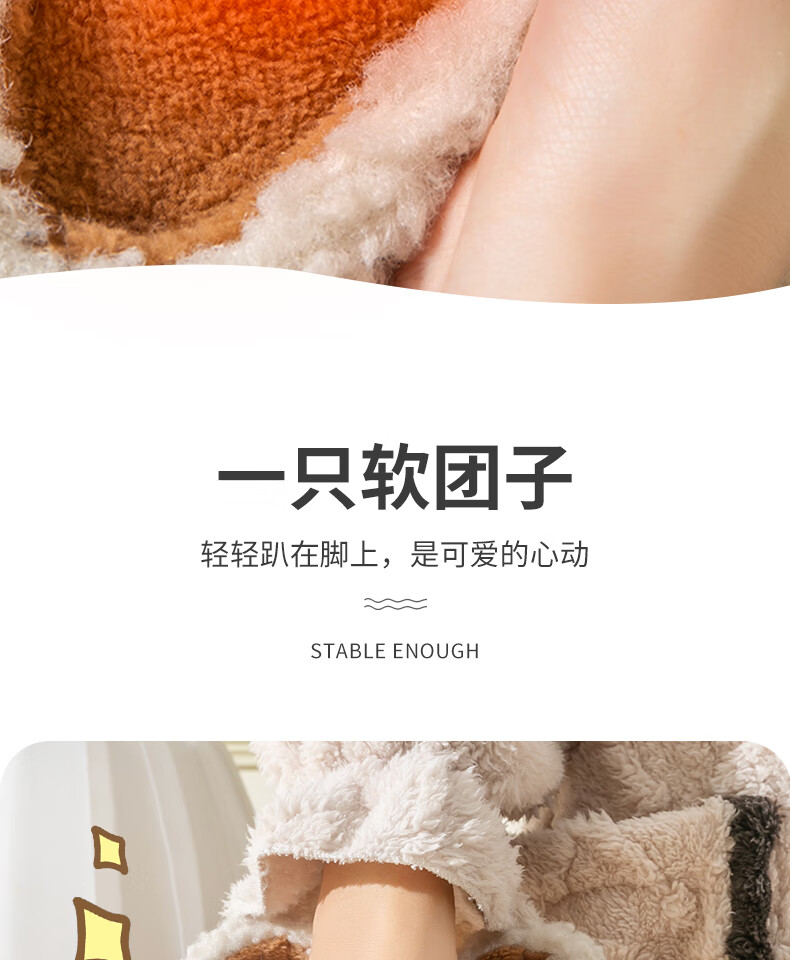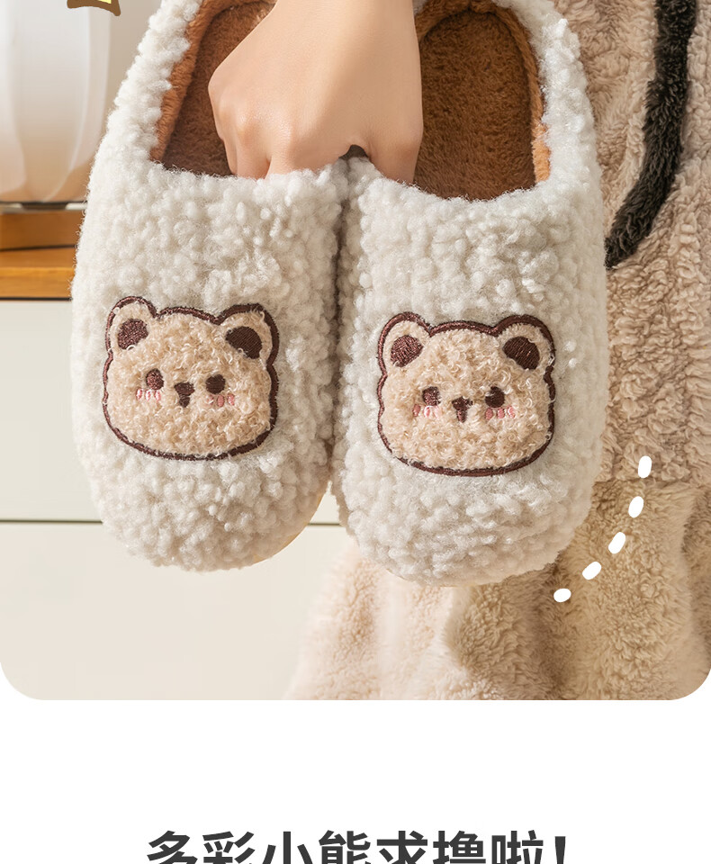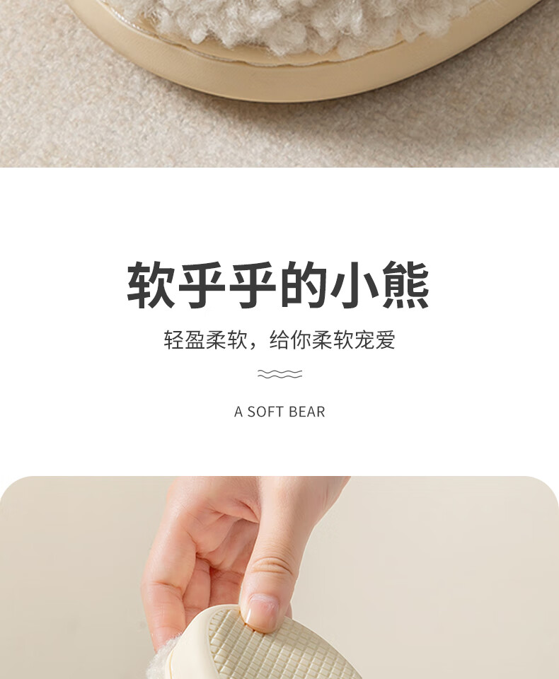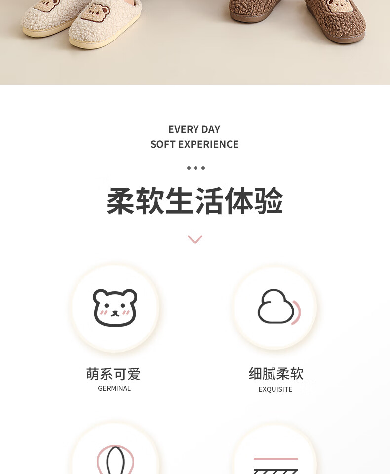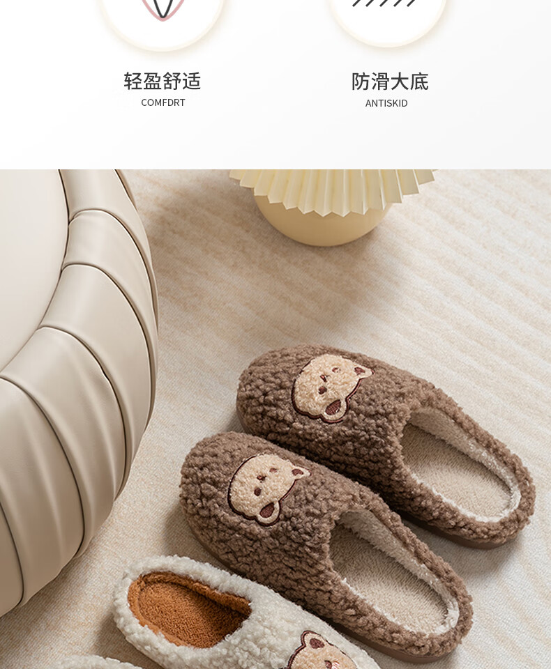 润柔棉拖鞋女士秋冬季保暖加绒毛毛可爱室内家居家用情侣男款抗菌防臭