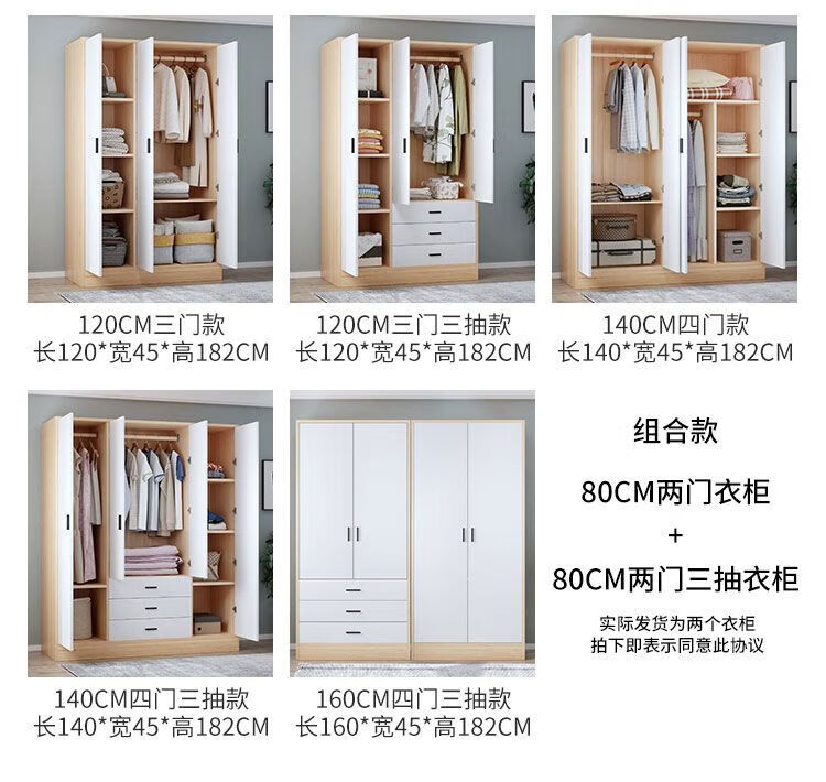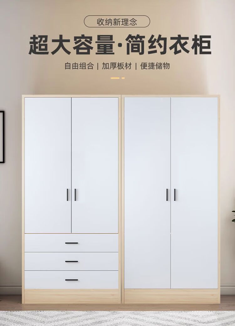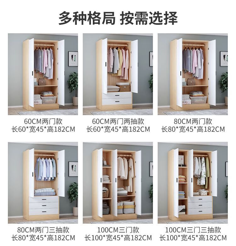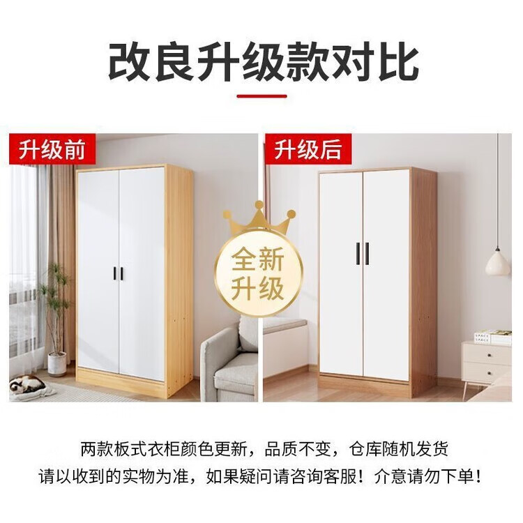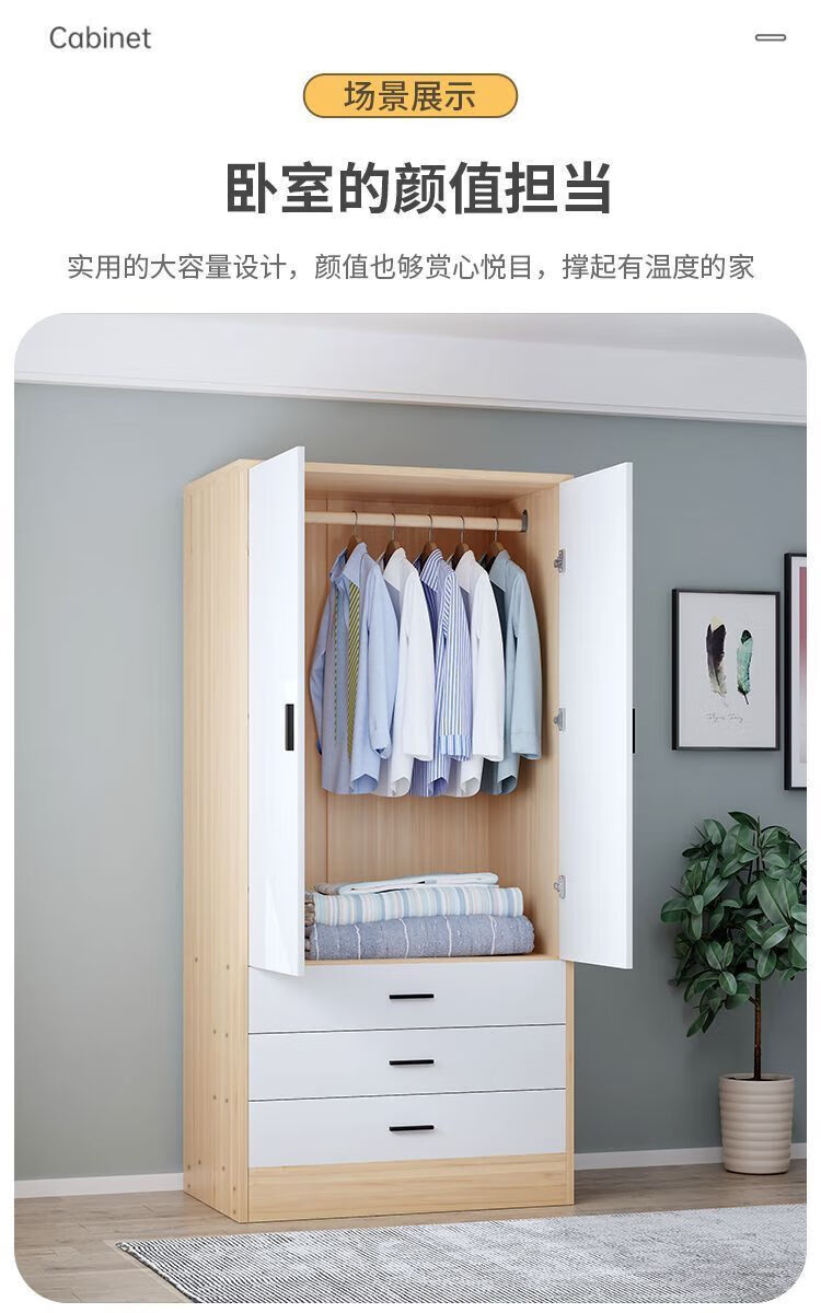 倘然之家衣柜家用卧室对开门单人现代简约成人衣橱出租屋用组装儿童储物柜 黄杉木【上楼】 长60*深45*高182两门